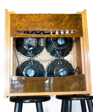 Ideal for classic string instruments. Monitor cut style cabinet, made of birch plywood finished in national walnut to exalt the grain of the wood. The grid with chrome finish makes the product unique and elegant for the most demanding and aesthetic-conscious musicians.