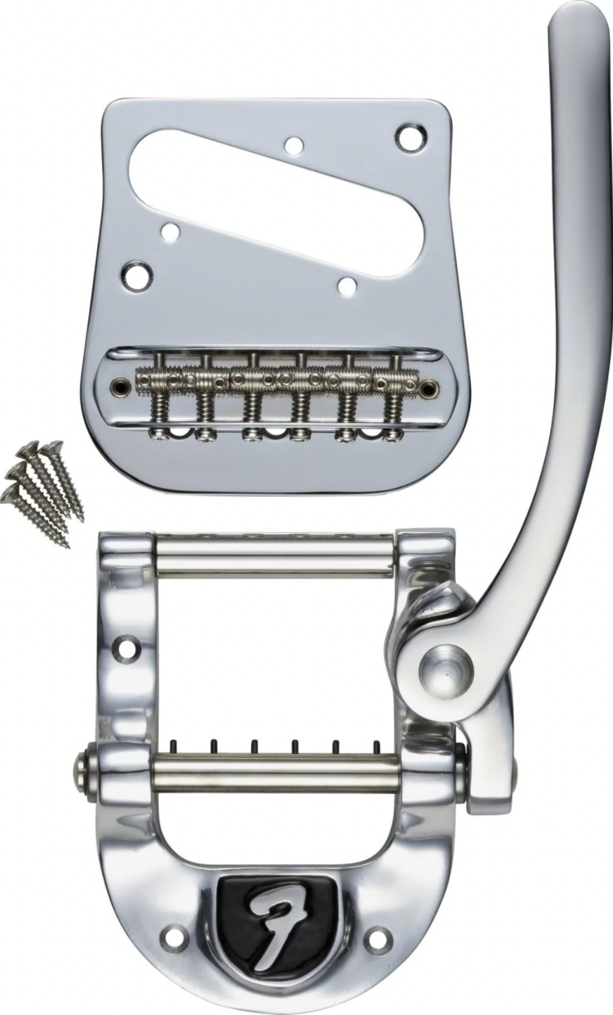 Bigsby® B5 Fender Telecaster Vibrato Kit offers expressively shimmering vibrato and fits most Telecaster guitars. Includes chrome bridge and pickup plate, Bigsby® tailpiece and mounting hardware.