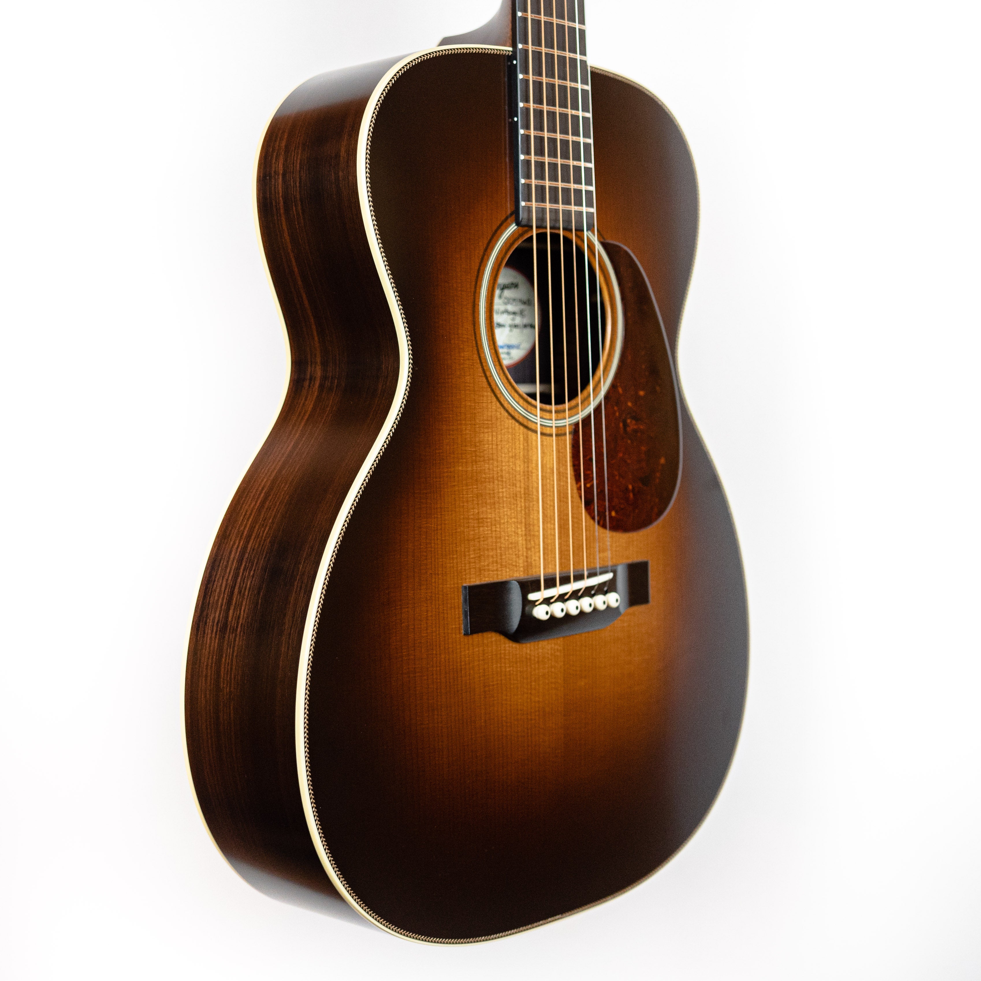 Bourgeois has done an amazing job with this Vintage inspired 00. Applying vintage qualities such as Animal Protein Glue, and their Aged Tone series Adirondack Spruce top. East Indian Rosewood back and sides gives this 00 an incredible resonance. This guitar projects beautifully and with authority. The result will bring you back to the days before the term “vintage” applied to guitars. Comes with a hardshell case.