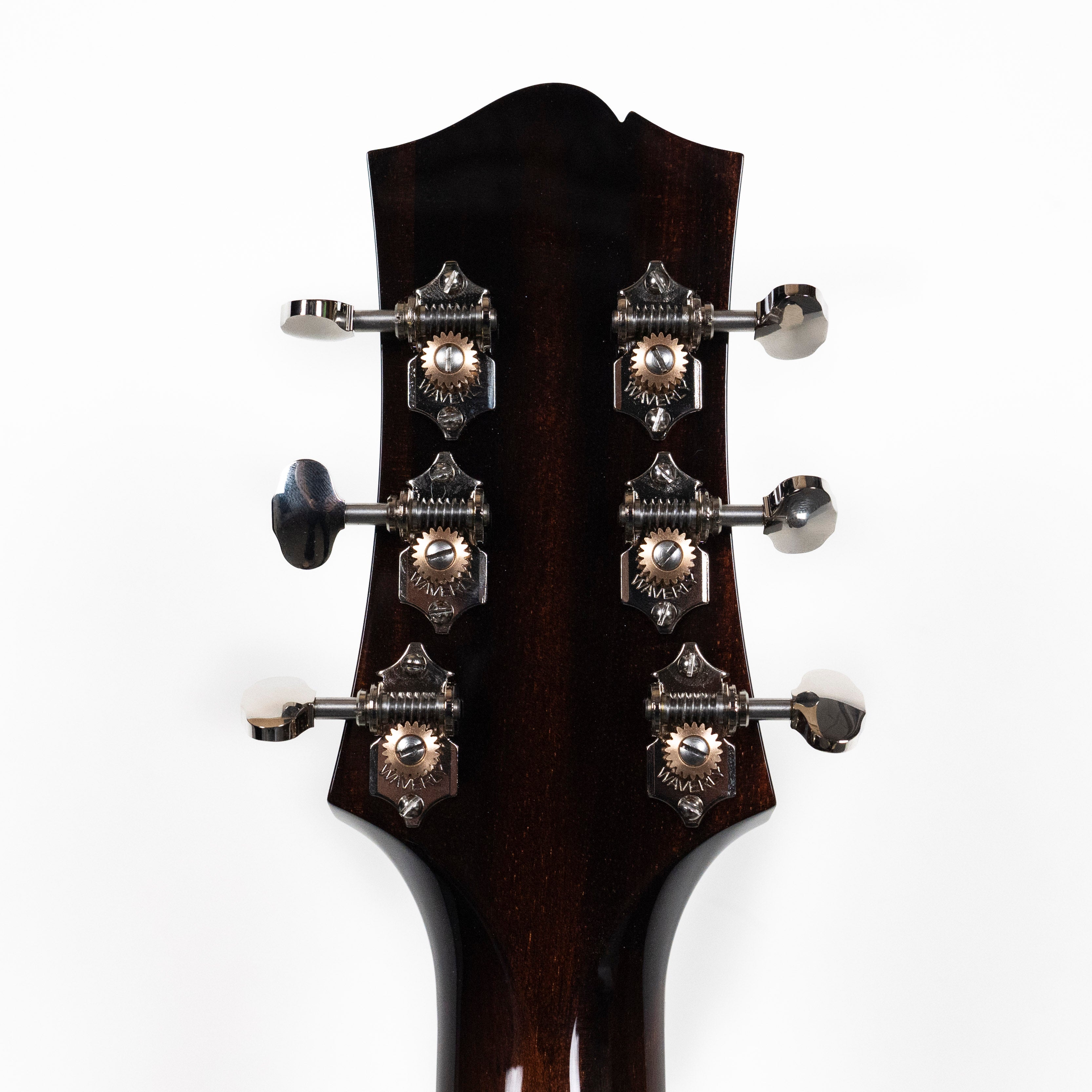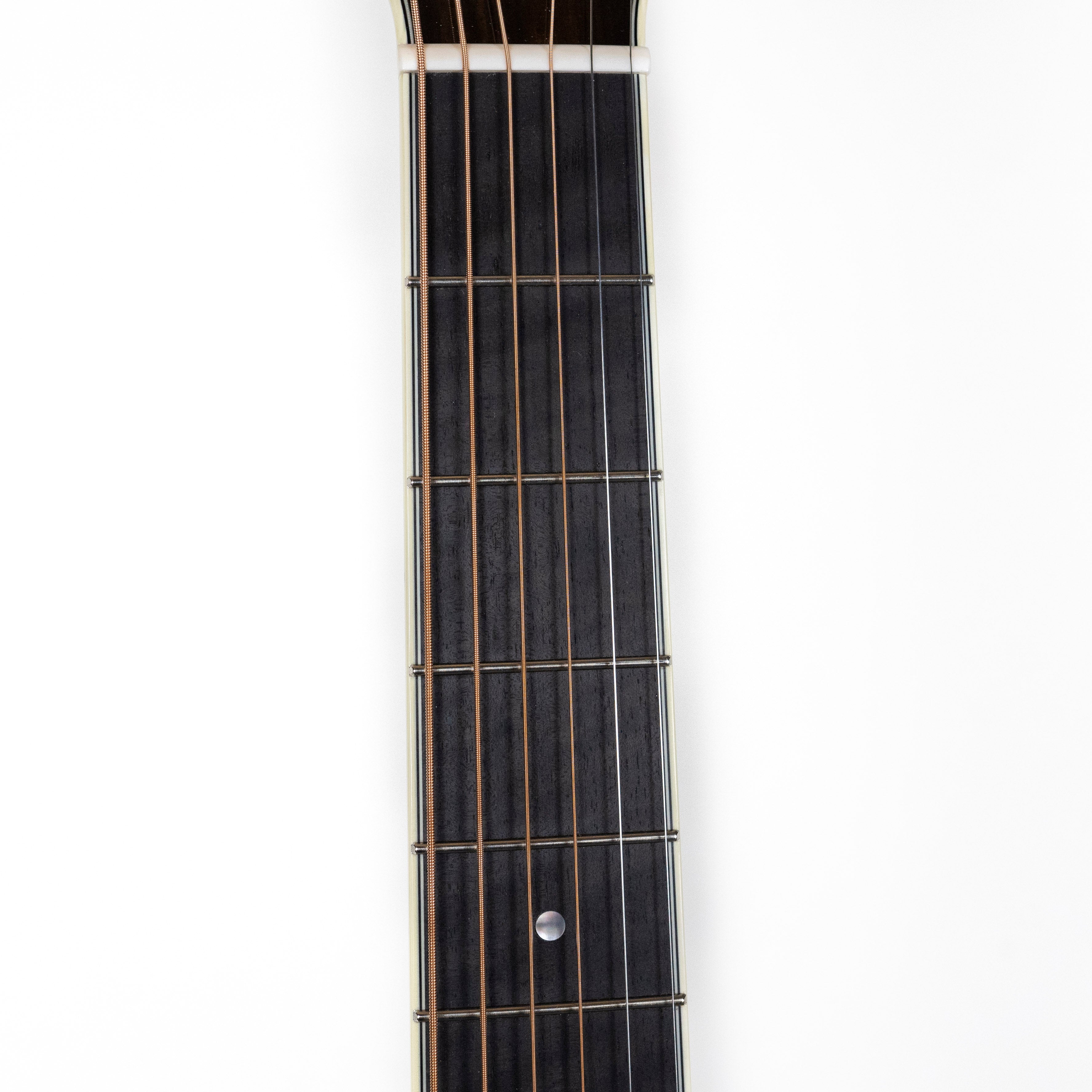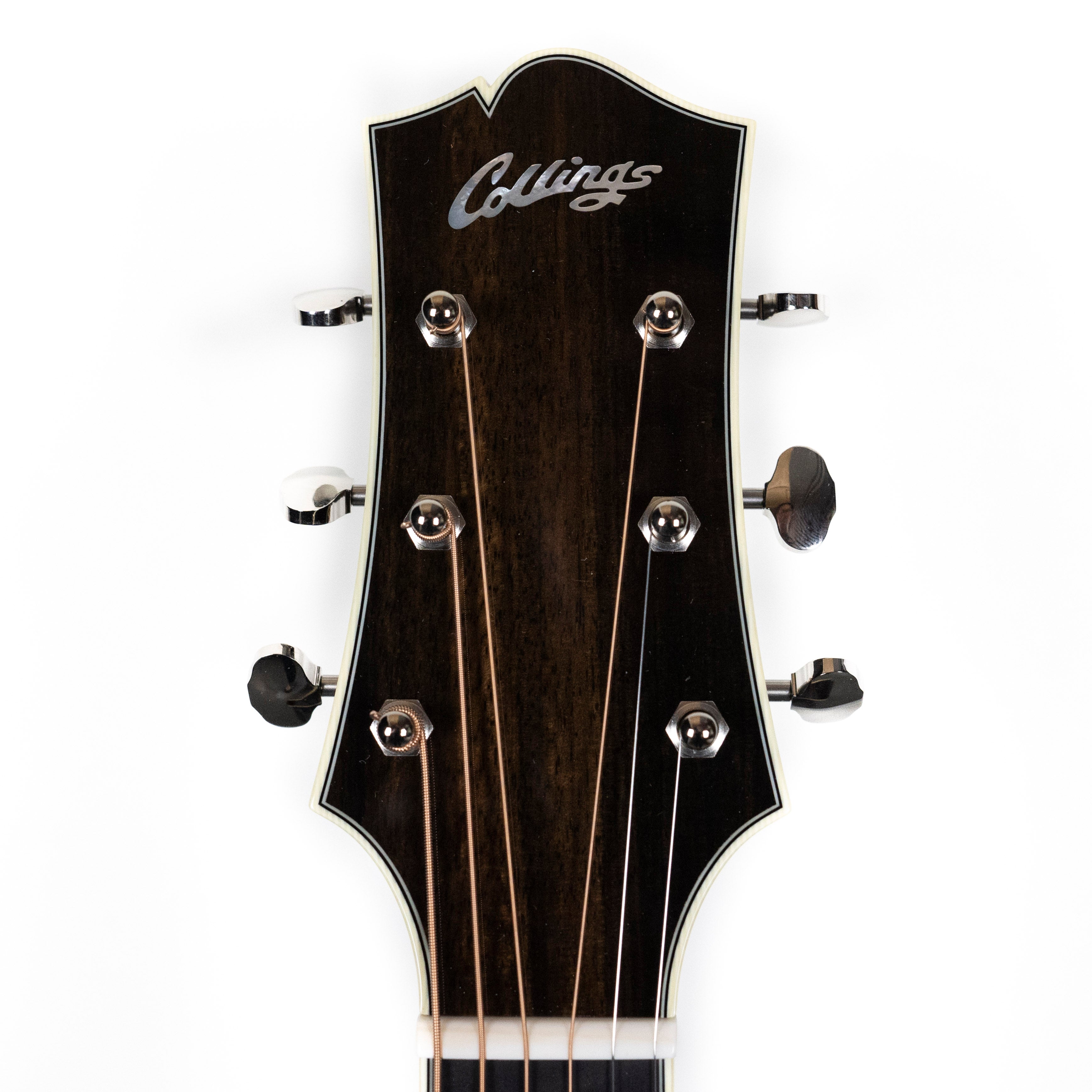 Based on guitars first introduced around the same time as the OM, the Collings C10 is a leaner alternative, with the narrow waist and small upper bout resulting in a precise, focused response. Of all our acoustic models, the C10 is perhaps the easiest for electric guitarists to adapt to, thanks in part to the more rounded neck profile. The small oval neck heel is ideally suited to the optional cutaway, which allows unrestricted access to the upper frets. With its unique shape and asymmetrical headstock’s lines echoed in the curvilinear pickguard, C10 models offer a welcome alternative for those who find that most small acoustic guitars look too much alike.
