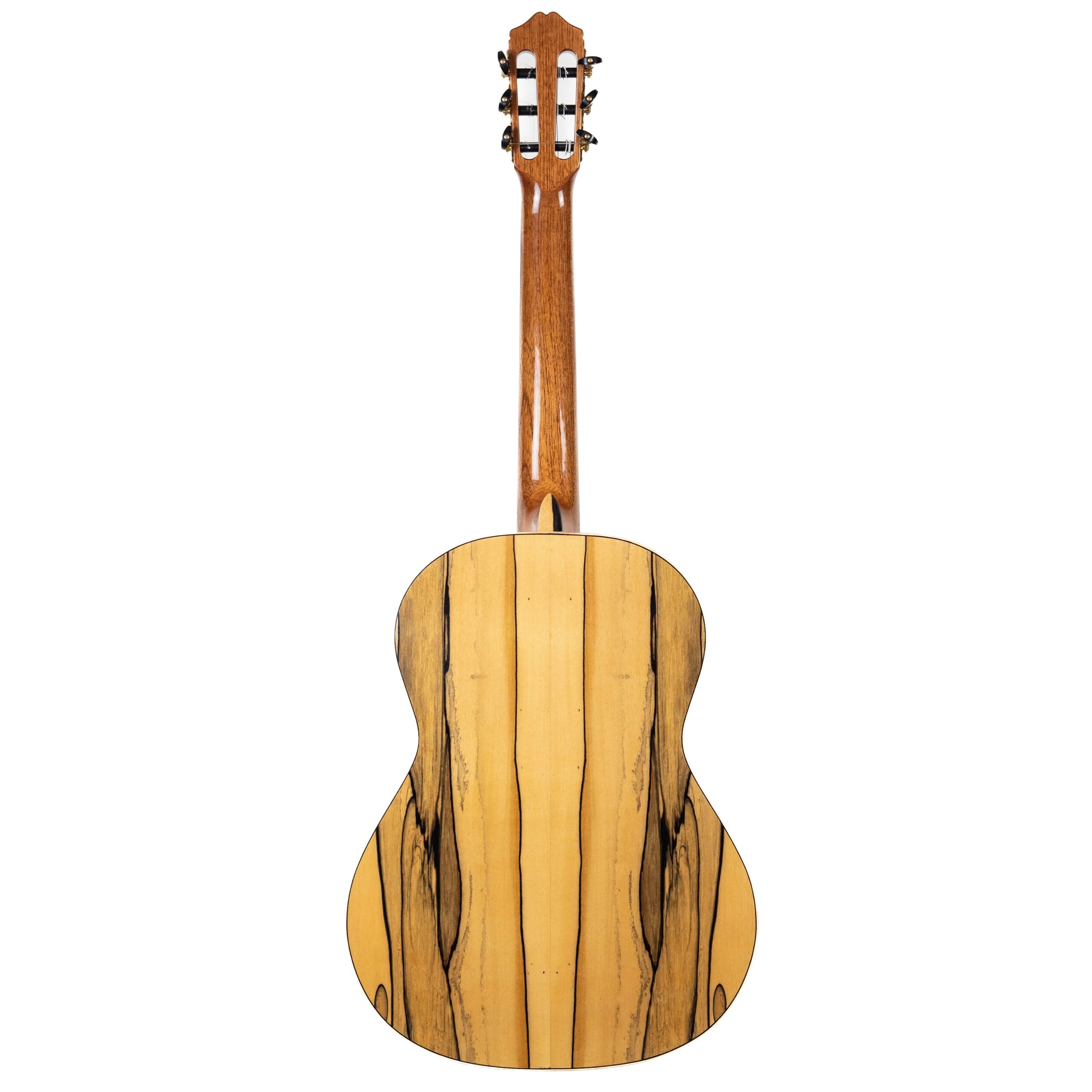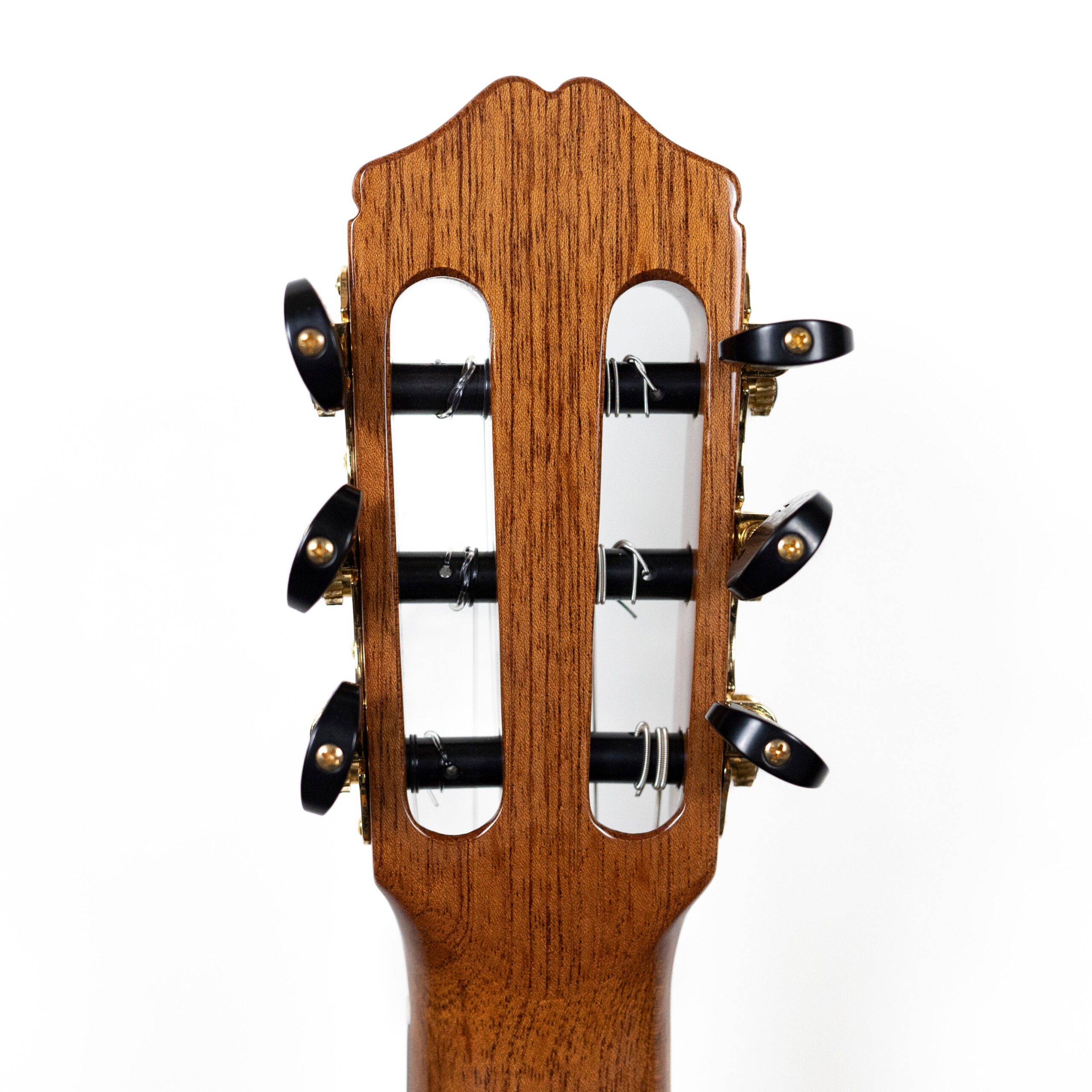 The 45 Limited is handmade in Spain with a solid European spruce top and black and white ebony back and sides, bringing a modern spin and a visually striking look to a classic Spanish design. A unique tonewood, black and white ebony compliments the clear tone of a European spruce top with surprisingly robust bass response and sustain. Premium features include a black and white ebony headplate and heelcap, ebony fingerboard, dual action truss rod, bone nut and saddle, premium gold plated tuning machines, and Savarez strings. Comes in a humidified Humicase Protege case.