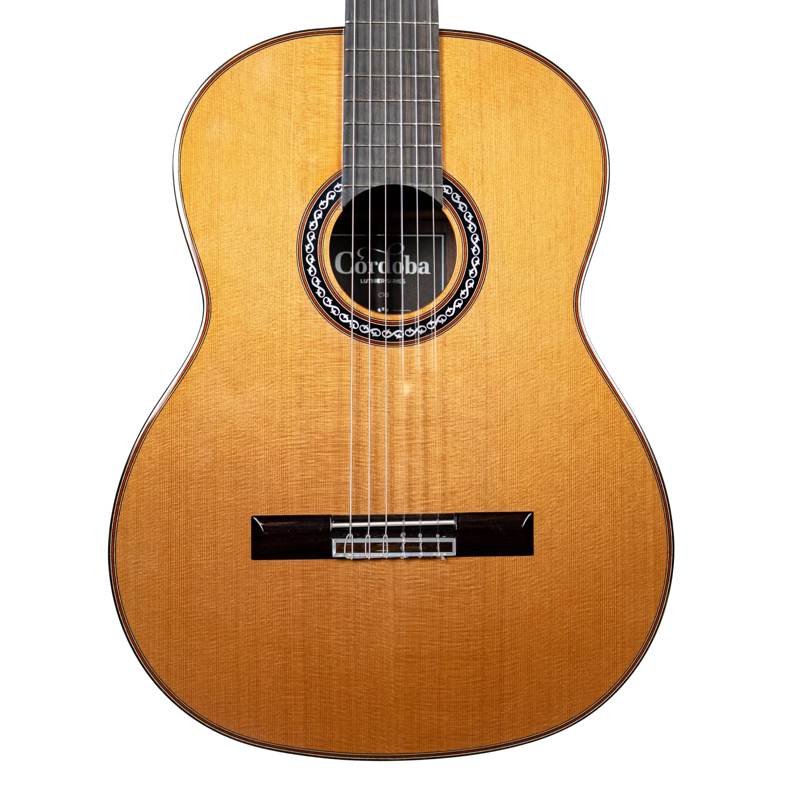 “The C10 is built with a traditional Spanish fan bracing and Spanish heel construction to allow for a responsive soundboard and full vibration throughout the entire body. The solid Indian rosewood back and sides provide a fat low-end, with a bright, crisp treble response and complex overtones. The C10 has a C-shape neck and flat fingerboard characteristic of traditional classical guitars, but also includes modern features such as a two-way truss rod for long-term neck stability.