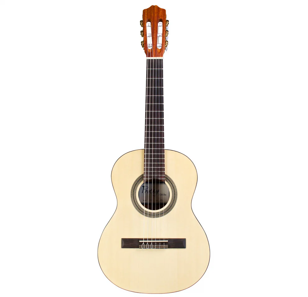“The C1M 1/4 is the perfect 1/4 size nylon string guitar for any aspiring guitarist. Part of the protege by Cordoba line, the C1M 1/4 was developed to provide young players with a comfortable, great sounding first guitar at an affordable price. Drawing on generations of Spanish guitar-making tradition, we has carefully chose quality materials for incredible sound, and prioritized comfort, playability, and attractive aesthetics to create truly inspiring instruments with which students can effectively learn and grow. Every Protégé C1M 1/4 is built with the combination of a spruce top and mahogany back and sides, a rosewood bridge and fingerboard, traditional-style mosaic rosette, Gold tuning machines, and a matte polyurethane finish. Like all Cordoba instruments, C1M models feature premium Savarez strings and an adjustable truss rod to ensure a straight neck for the life of the instrument.”