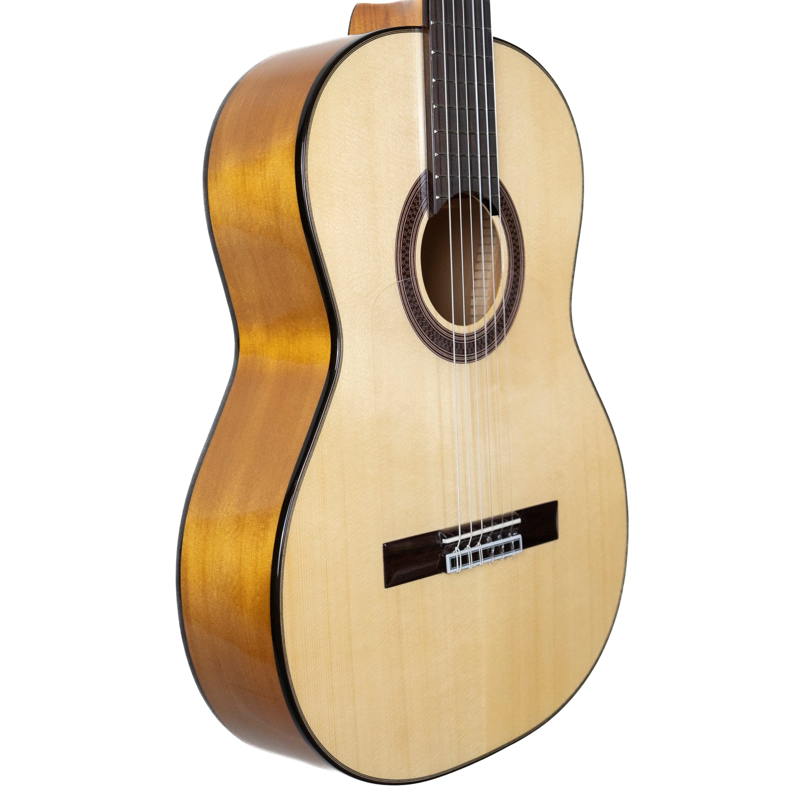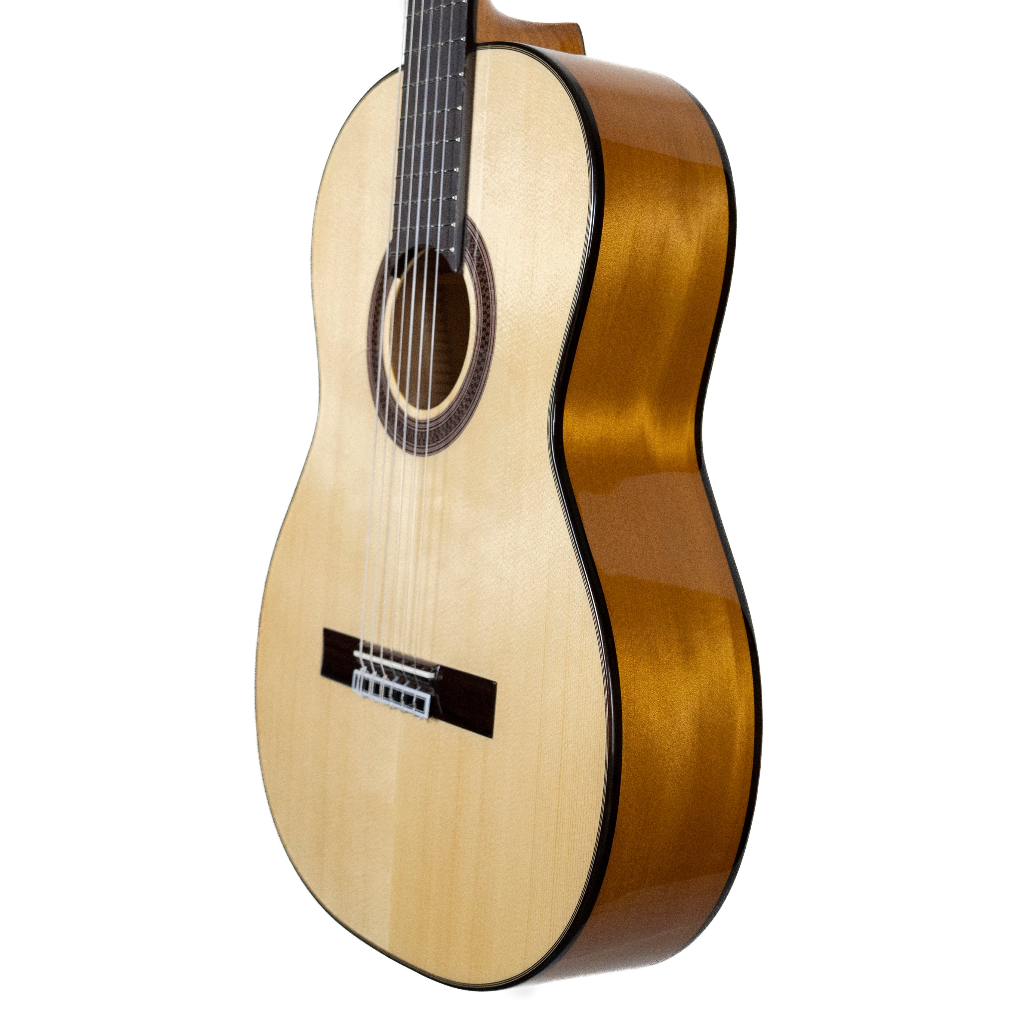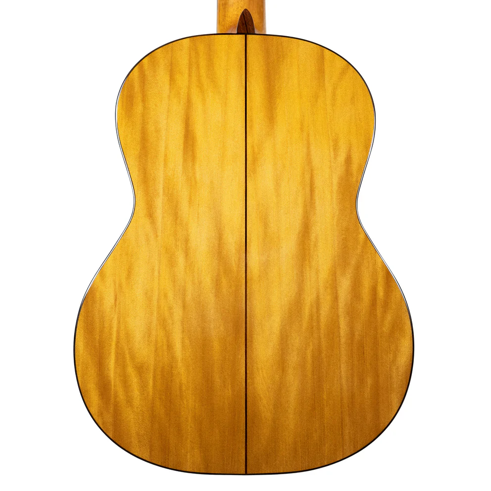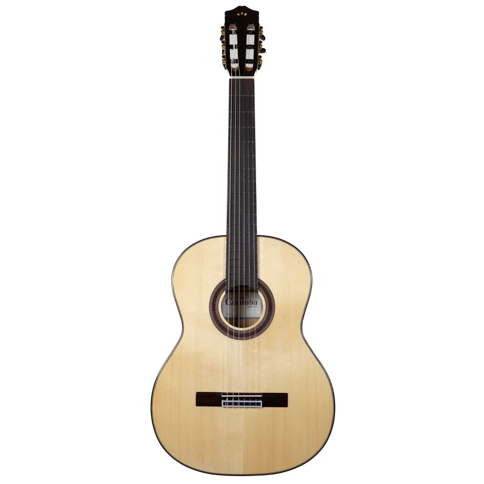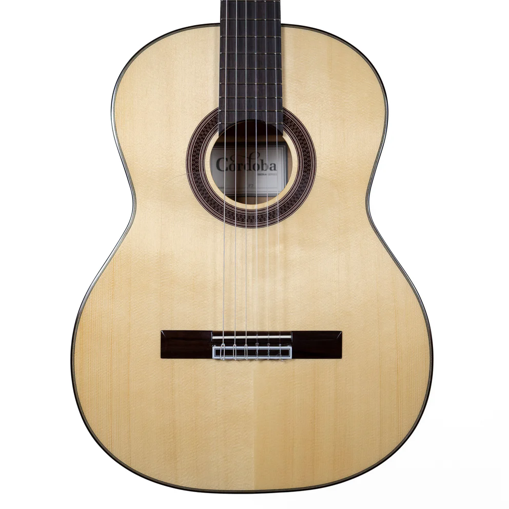 The F7 is Córdoba‘s entry-level flamenco model featuring the traditional combination of a solid European spruce top paired with cypress back and sides. It’s a perfect fit for both beginner and intermediate flamenco players. Incredibly lightweight, the F7 is built in the Spanish tradition with a slightly thinner body depth than a classical guitar. Additionally, its flat neck angle gives this guitar low action, and the bright, snappy tone characteristic of flamenco guitars. A clear flamenco-style tap plate comes installed on the top for an added layer of protection and like all Córdoba guitars, the F7 includes a two-way truss rod inside the neck for action adjustment and long term stability.
