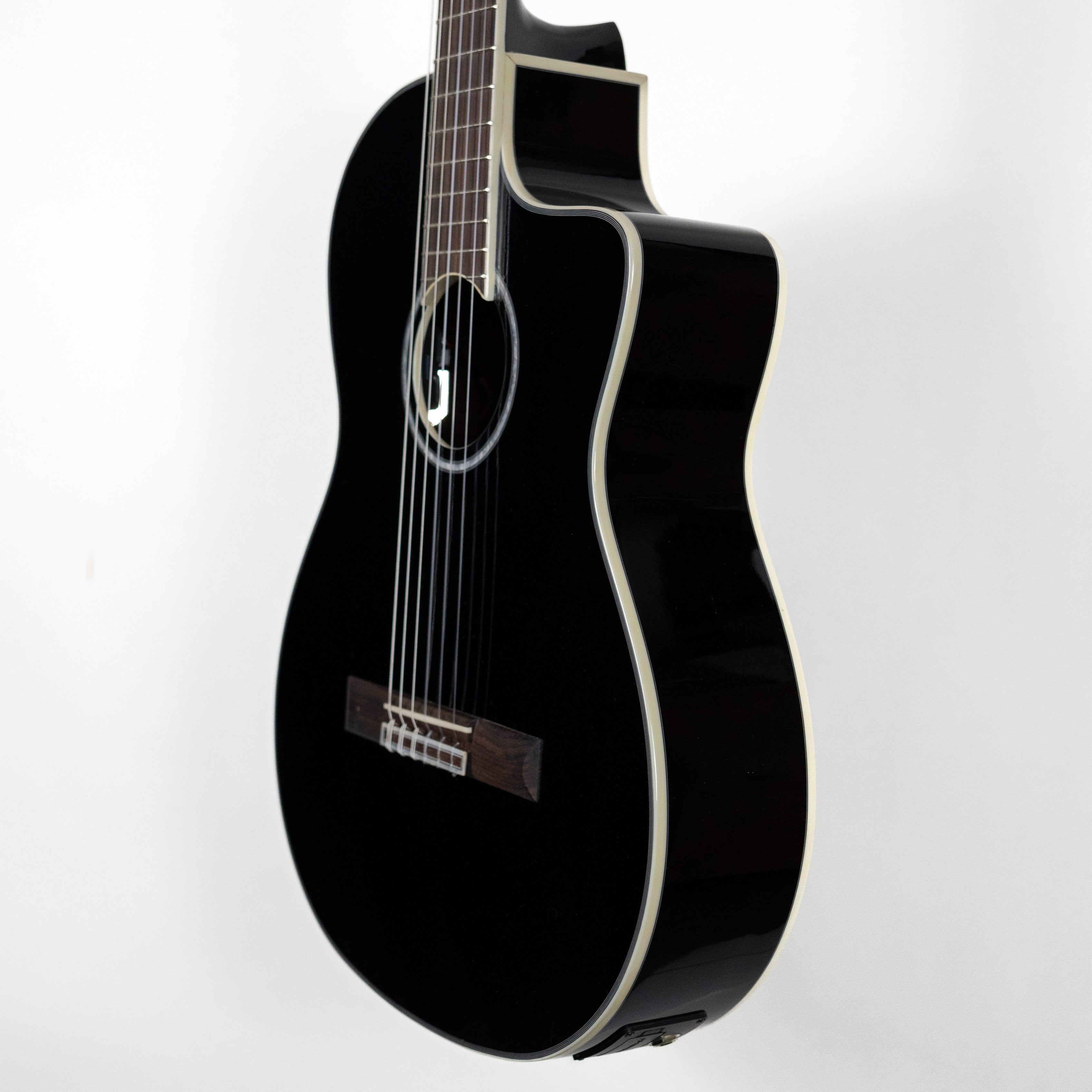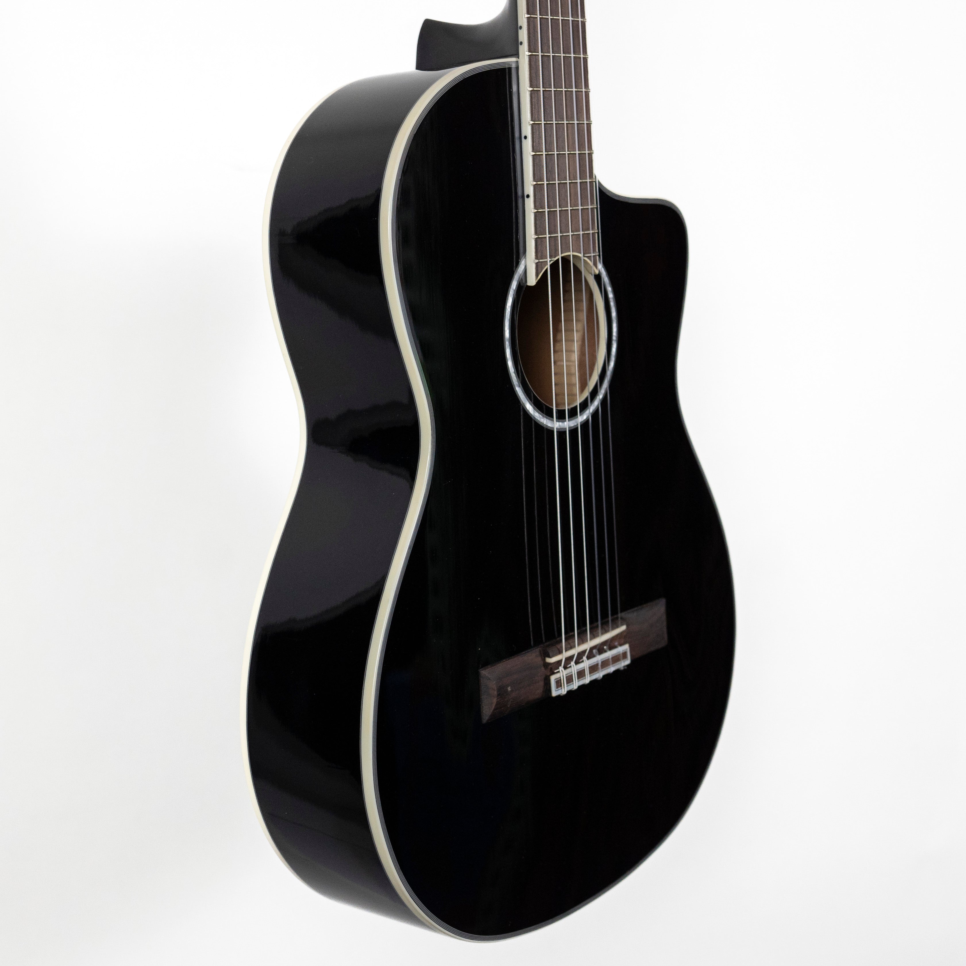 Córdoba’s entry into the fusion line! The perfect choice to transition from a steel string to a nylon guitar, the Córdoba Fusion 5 features a solid spruce top, mahogany back and sides, a full body with cutaway for extended playing range, side dot fret position markers, and a pearl decal rosette and arches. The fusion neck with a 16” radius fretboard and smaller, 1 7/8” (48mm) nut width provides a playing experience very close to that of a steel string guitar. This familiarity offers an easy transition for steel string players and players with smaller hands to the world of nylon string guitar. Added side dot markers also depart from traditional nylon string guitar construction, providing players reference for their position on the fretboard. Equipped with the Fishman Sonitone Pickup System, the Fusion 5 is ready to plug in and play. Available in Gloss Natural and Jet-Black finish with mahogany back and sides and Gloss Sonata Burst with elegant flamed mahogany back and sides.