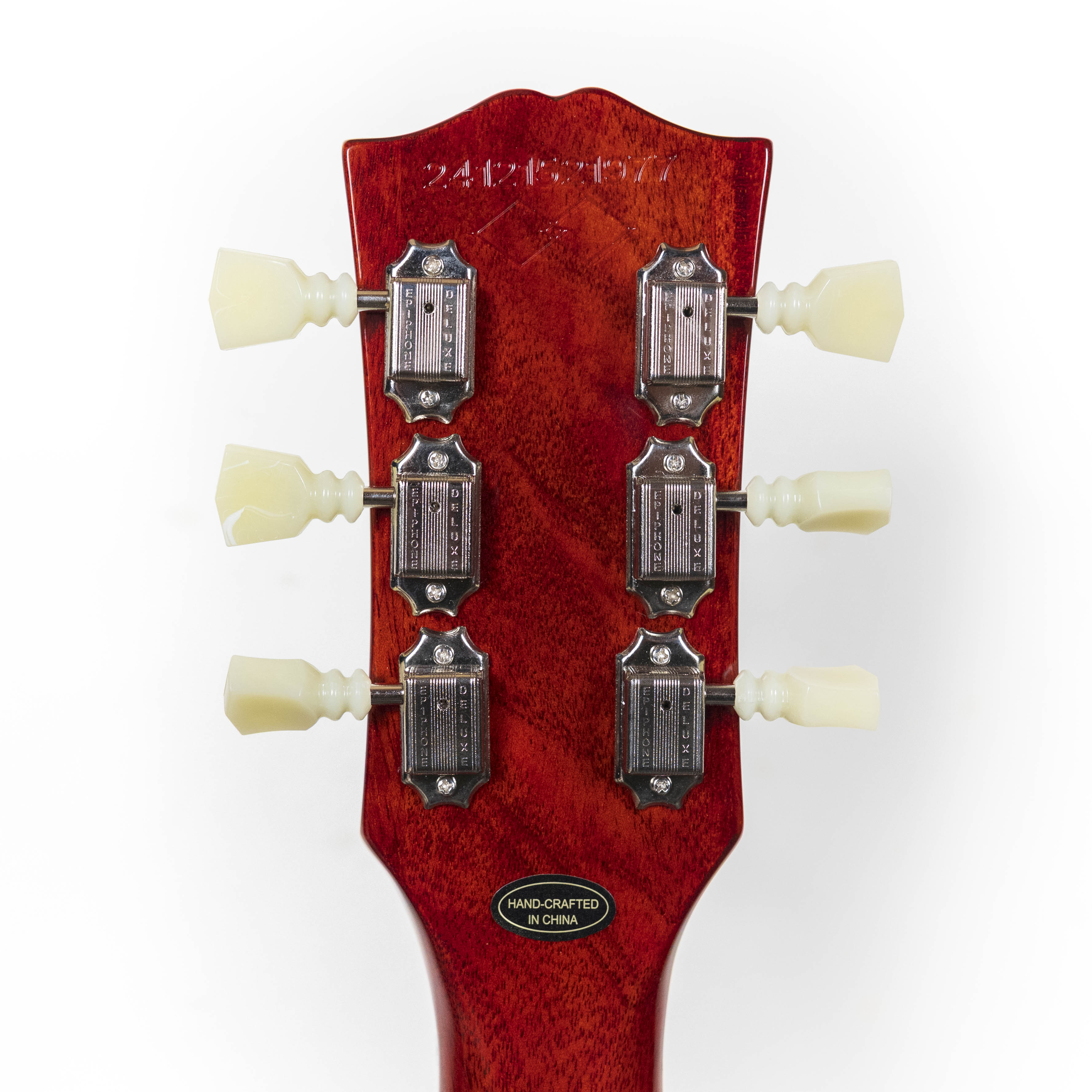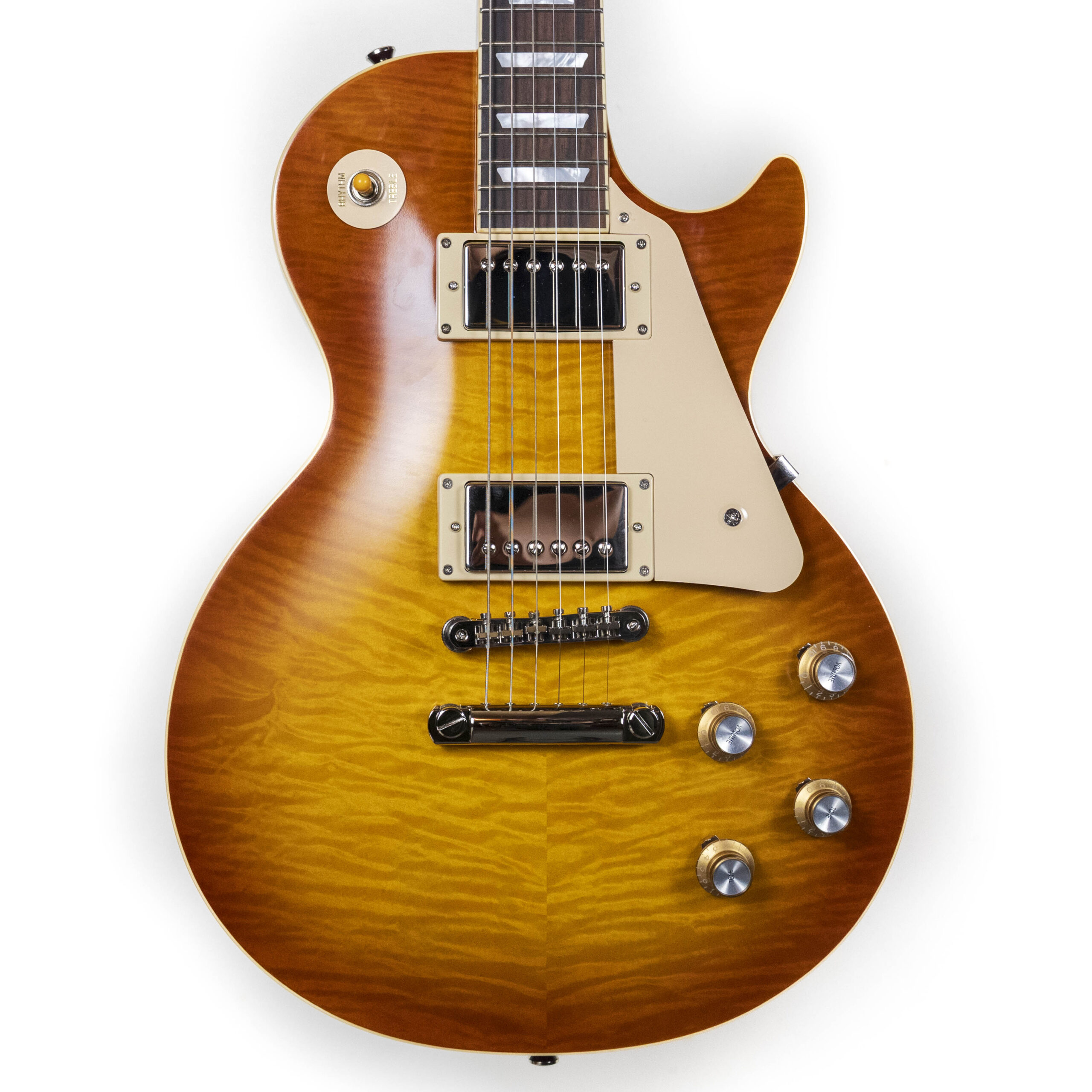“The 1960 Gibson Les Paul™ Standard is one of the world’s most coveted vintage guitars. It has been embraced by such luminaries as Eric Clapton, Paul McCartney, and Joe Walsh. The 1960 Les Paul Standard is very similar to the famous 1959 model year that preceded it, but with a few changes, most notably, a thinner and faster-playing SlimTaper™ neck profile that many players prefer over the somewhat beefier 1959 Les Paul Standard neck profile. Now, Epiphone is proud to introduce the Epiphone 1960 Les Paul Standard Reissue, a beautiful recreation of those vintage 1960 Les Paul Standard models. Made in partnership with Gibson Custom, the Epiphone Les Paul Standard 1960 Reissue delivers vintage Les Paul looks and performance at an accessible price. All of the classic appointments the 1960 Les Paul Standard model is known and loved for are present here, including a one-piece mahogany neck with a long neck tenon for increased stability and sustain, a comfortable, fast-playing SlimTaper™ profile, and a bound rosewood fretboard. It also features mother-of-pearl trapezoid fretboard inlays, an aged mother-of-pearl Epiphone headstock logo, and the words “Les Paul Model” silkscreened in gold on the Gibson-style “open book” headstock. Even the side dot position markers are the same size as on vintage 1960 Les Paul Standard models and are placed in historically accurate locations. The genuine mahogany body features a carved maple cap that is topped with a beautiful AAA flamed maple veneer. The electronics are equally impressive, with two USA Gibson Custombucker humbucking pickups with Alnico 3 magnets that are hand-wired to CTS® potentiometers, Bumblebee paper-in-oil capacitors, and a Switchcraft® pickup selector toggle switch and output jack. The Vintage Gloss finish gives the guitar a vintage appearance without looking overly aged and is nicely complimented by the nickel hardware, including the Epiphone Deluxe “Double Ring” Keystone button tuners. A Brown hardshell case with Inspired by Gibson Custom graphics and a pink plush-lined interior is also included. This is the perfect Les Paul for players who love the vintage appeal of the classic 1959 Les Paul Standard but who want a more comfortable neck profile.”