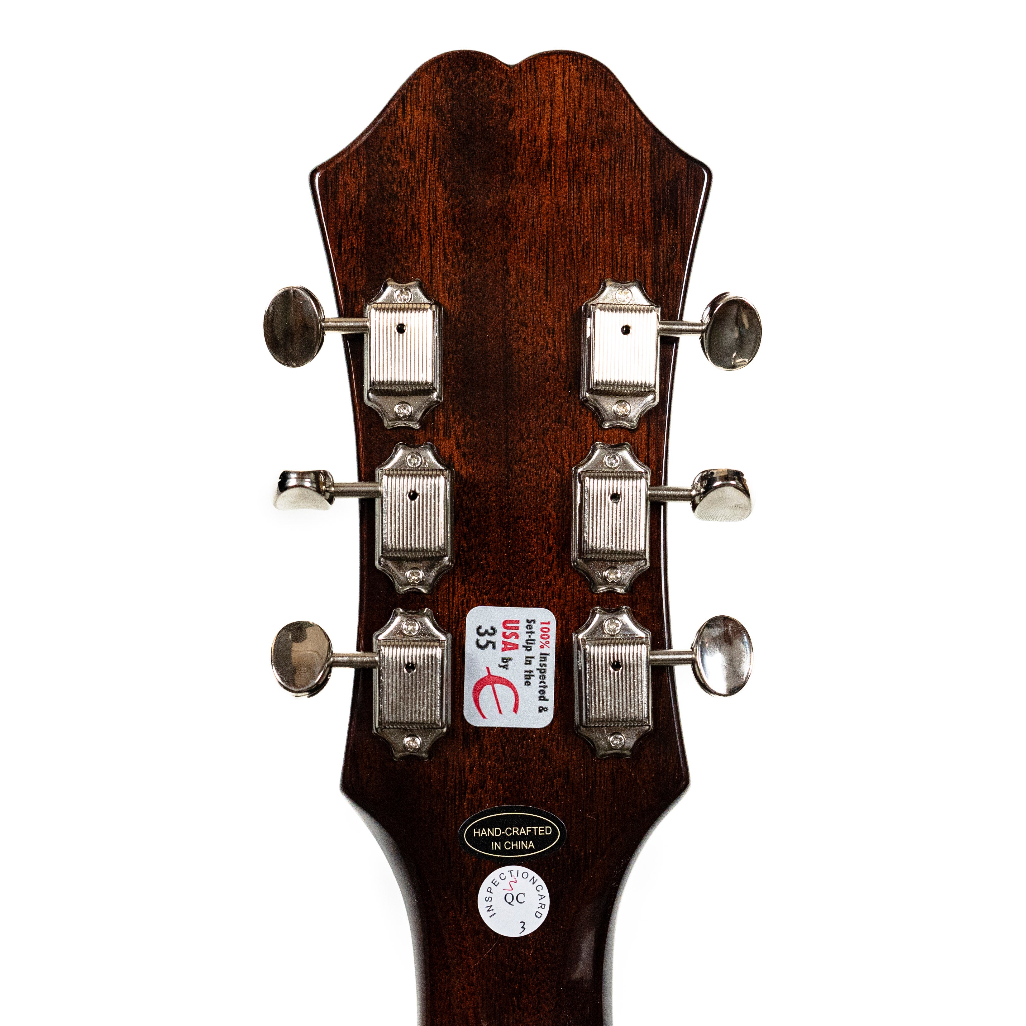 Since 1961, the legendary Casino has been Epiphone’s best-selling archtop and a rock ‘n’ roll standard. First introduced in 1961, the Casino was just one of several new thinline archtops designed and produced at the company’s adopted new factory in Kalamazoo, Michigan that it shared with one-time competitor and new partner, Gibson. The Casino was adopted by Keith Richards of The Rolling Stones who used a Casino to record the demo for “Satisfaction” at Chess Records in Chicago. Howlin’ Wolf took a Casino on his first tour of the UK, appearing on Thank Your Lucky Stars. Shortly afterward, John Lennon and George Harrison bought Casinos for the Beatles’ 1966 world tour. Featuring Dogear P-90T Classic™ pickups and a 5-ply maple body with basswood top bracing. This model does come with a premium gig bag.