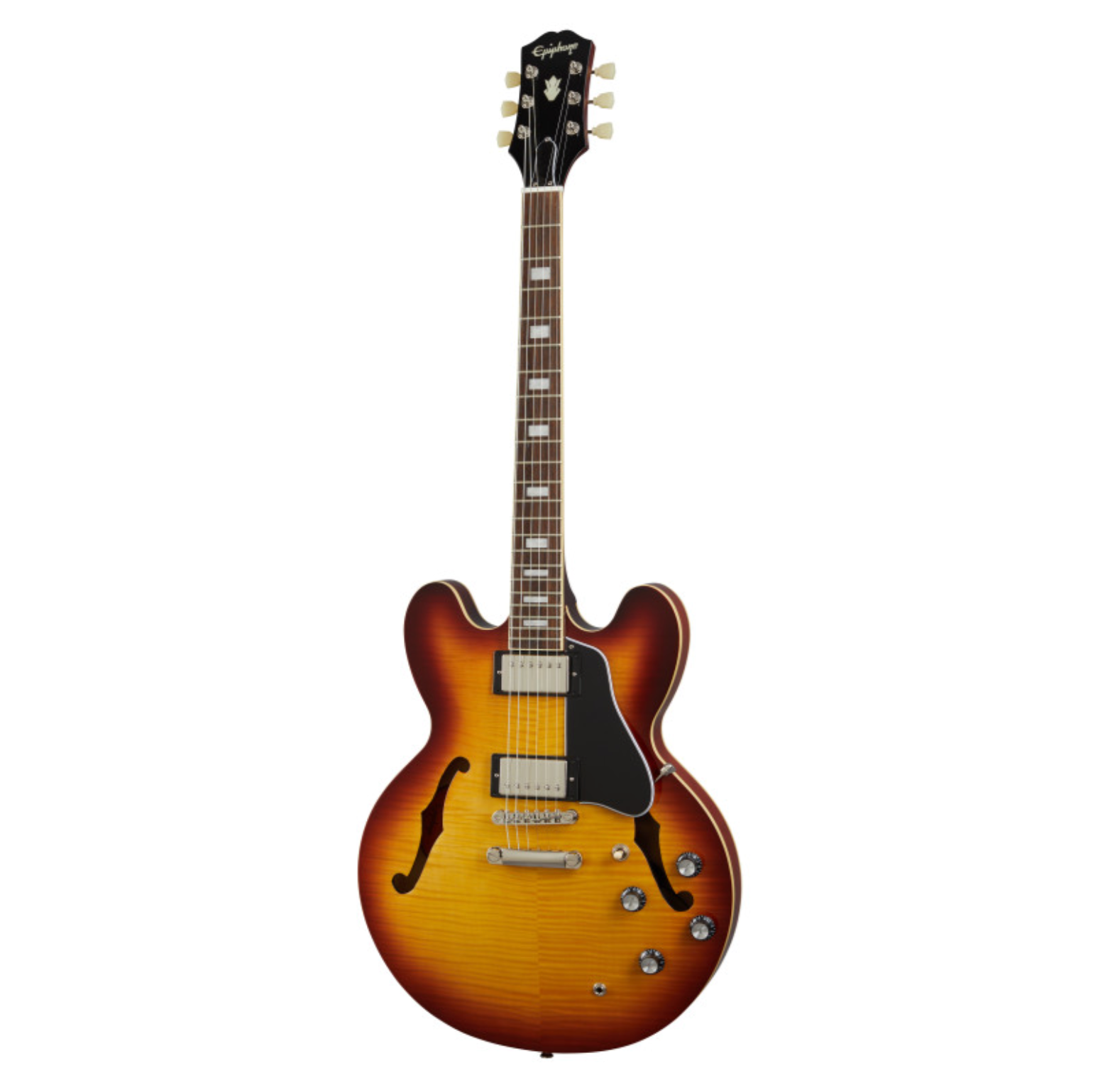 The Epiphone “Inspired by Gibson” ES-335 Figured honors the immortal ES-335, the thin semi-hollow archtop that brought archtop class to the rock era. Featuring a solid maple center block for added sustain and feedback resistance, Alnico Classic PRO™ humbuckers, Grover® Rotomatic® tuners, and a flame maple veneer top and back in stunning Blueberry Burst and Raspberry Tea Burst gloss finishes that are sure to turn heads. Optional hardshell or EpiLite™ case available separately.