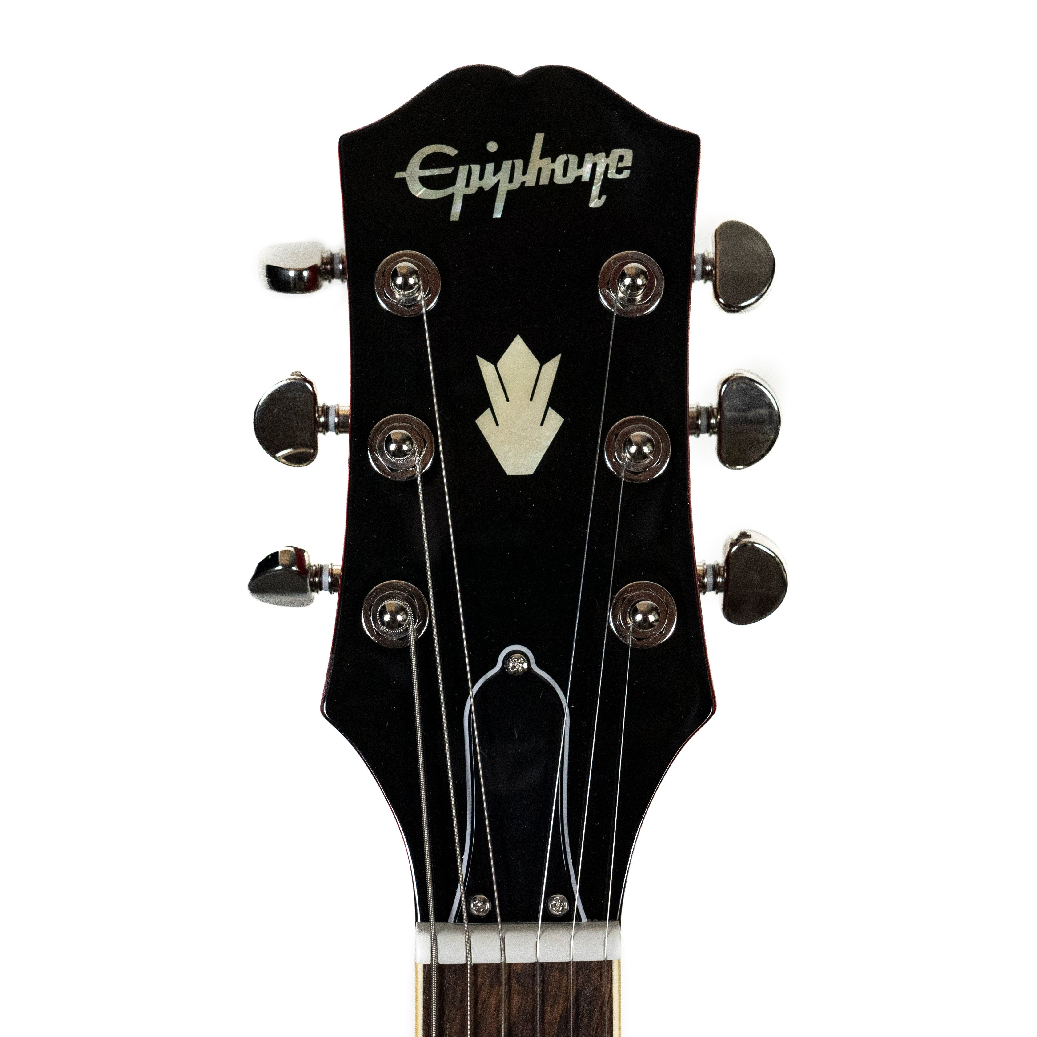 “Epiphone’s “Inspired by Gibson” ES-339 is designed for those seeking the tone and look of an ES-335, but in a slightly smaller, lighter instrument. The hand-rolled C-shaped mahogany neck reminds players where it all started. A pair of Epiphone Alnico Classic PRO™ humbuckers showcases the versatile Gibson ES™ tone that players have craved for over 60 years. Tuning stability and precise intonation are provided by the Graph Tech® NuBone® nut, Grover® Rotomatic® tuners, and Epiphone’s exclusive LockTone™ bridge and tailpiece, which also add more sustain to your tone. Impressive gloss finishes include Cherry, Pelham Blue, Vintage Sunburst, and Natural. Optional hardshell case or EpiLite case sold separately.”