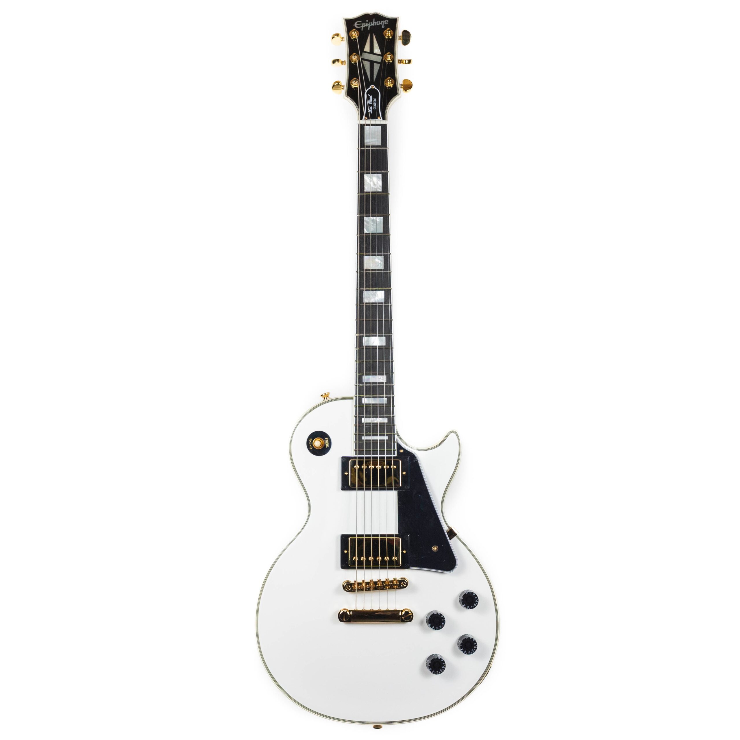 A deluxe model from Epiphone, this LP Custom has upgrade specs like genuine Gibson USA pickups and a hardcase. It looks killer in that Alpine White finish!