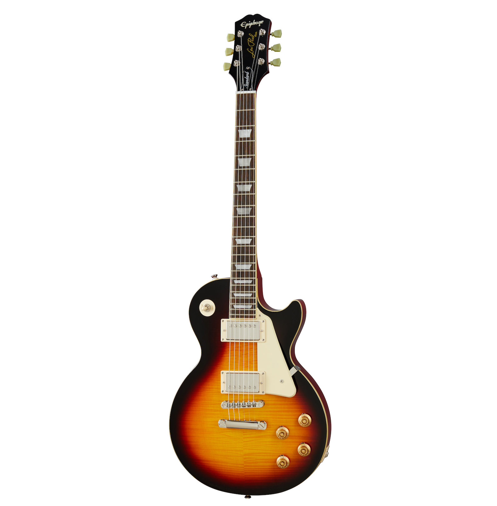 “Epiphone’s Inspired by Gibson™ Collection proudly presents the Les Paul™ Standard 50s! This guitar lovingly recreates the feel and tone of the 1950s-era Les Pauls. Epiphone’s long friendship with Mr. Les Paul began in 1940 when Les built one of the world’s first solidbody electric guitars while working nights at the original Epiphone factory in Manhattan. Les’ first solidbody guitar, nicknamed “the Log,” would go on to inspire the Les Paul Standard, which many consider the greatest electric guitar ever made. The guitar is crafted with a mahogany body, maple cap (AAA veneer on figured tops), bound 50s shaped mahogany neck with long neck tenon, Indian laurel fingerboard with classic trapezoid inlays, Epiphone’s Vintage Deluxe tuners, a pair of critically acclaimed Epiphone Probucker™ humbuckers™, and gold Top Hat knobs with dial pointers. Available in Metallic Gold, Vintage Sunburst, and Heritage Cherry Sunburst full-gloss finishes. This Epiphone Inspired by Gibson Original model also has the Kalamazoo headstock, a rolled neck for a comfortable feel, Graph Tech® NuBone® nut, era-appropriate wiring, and CTS® pots. An optional hardshell or EpiLite™ case is available.”