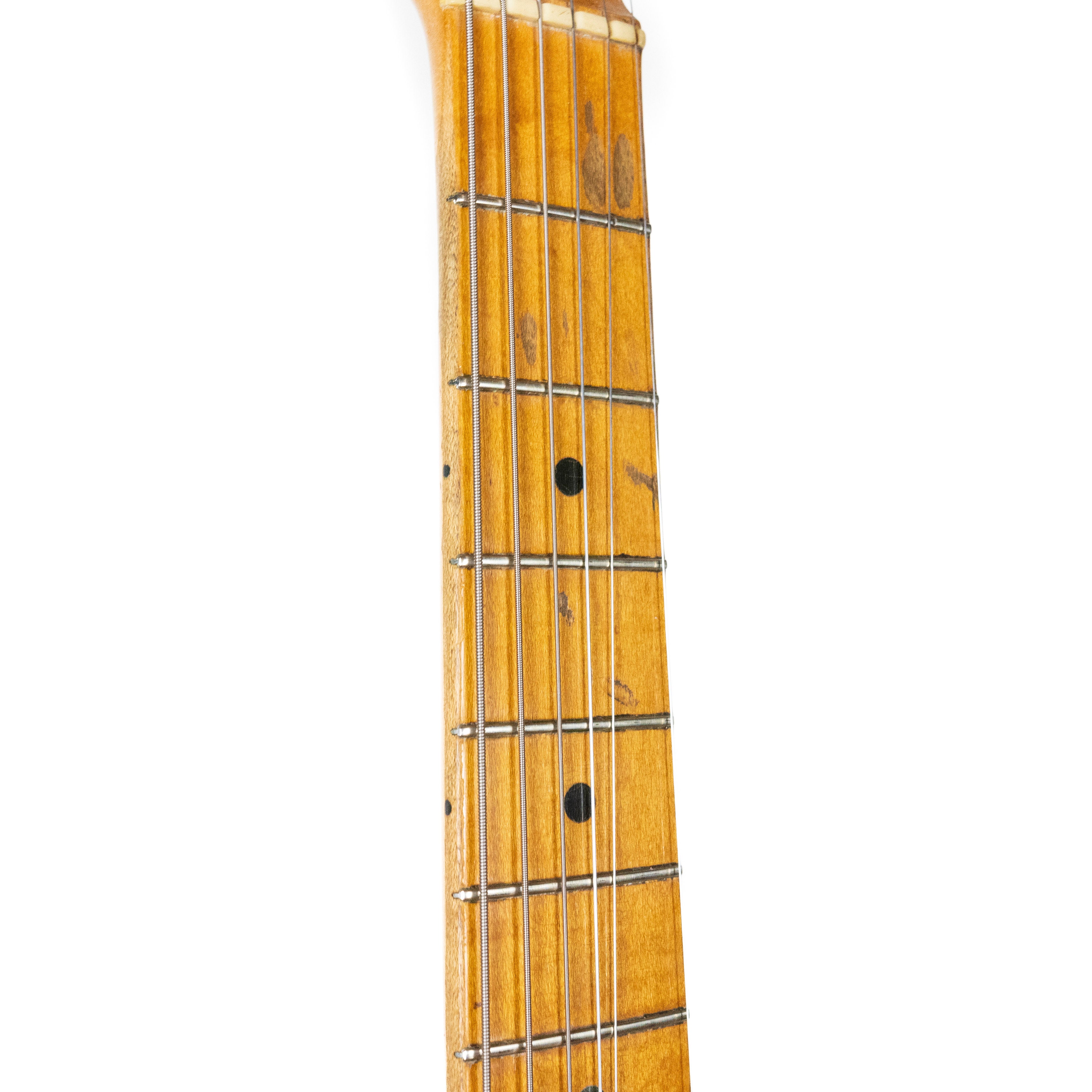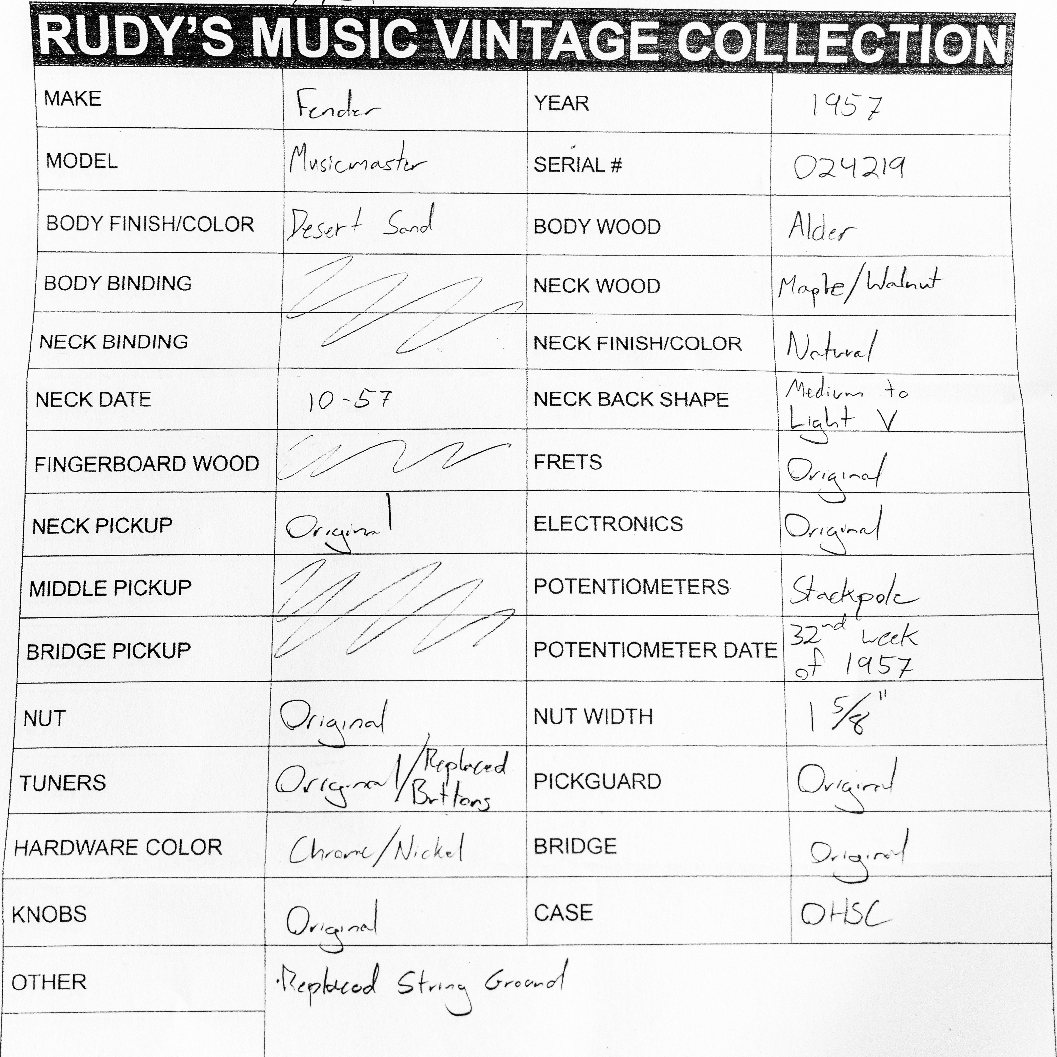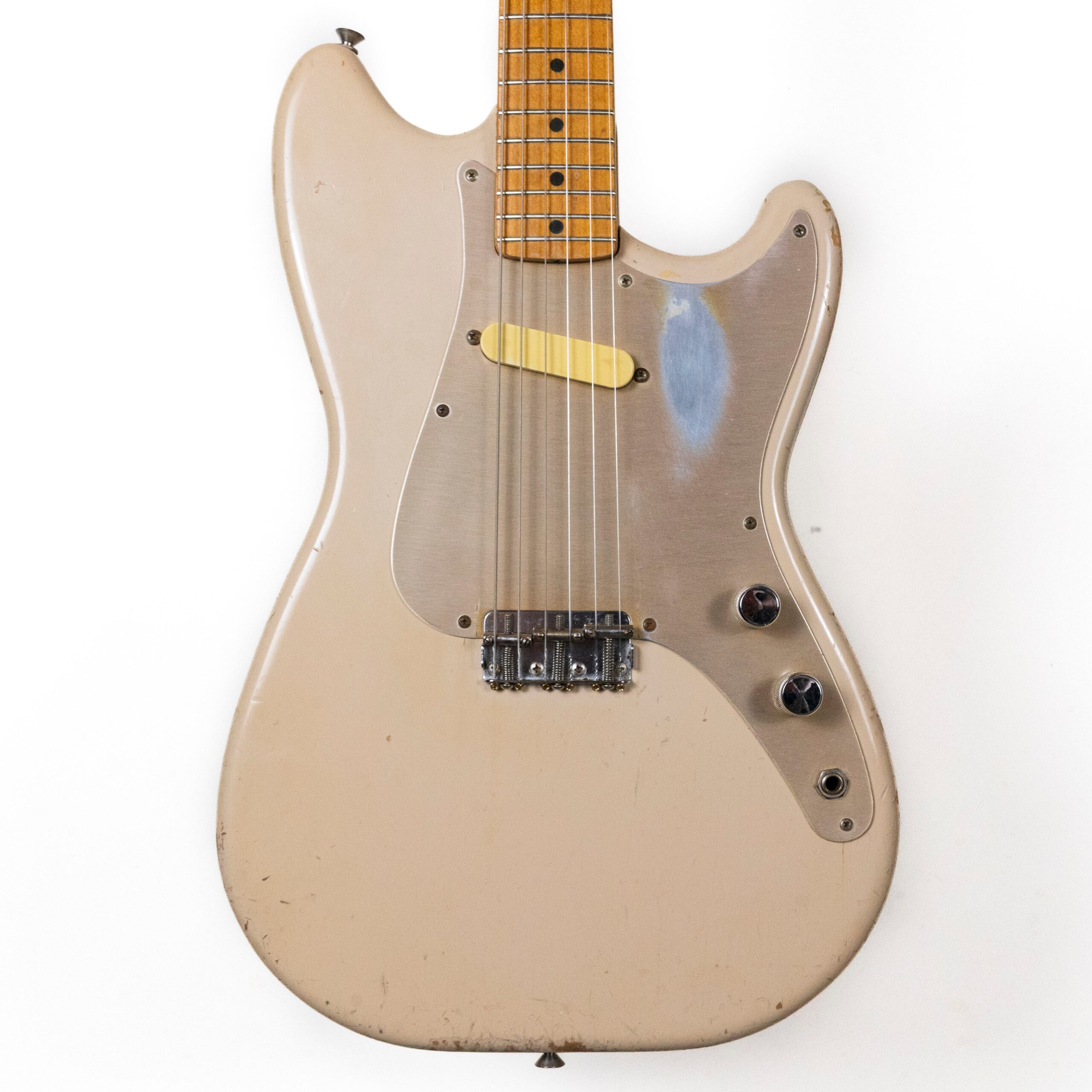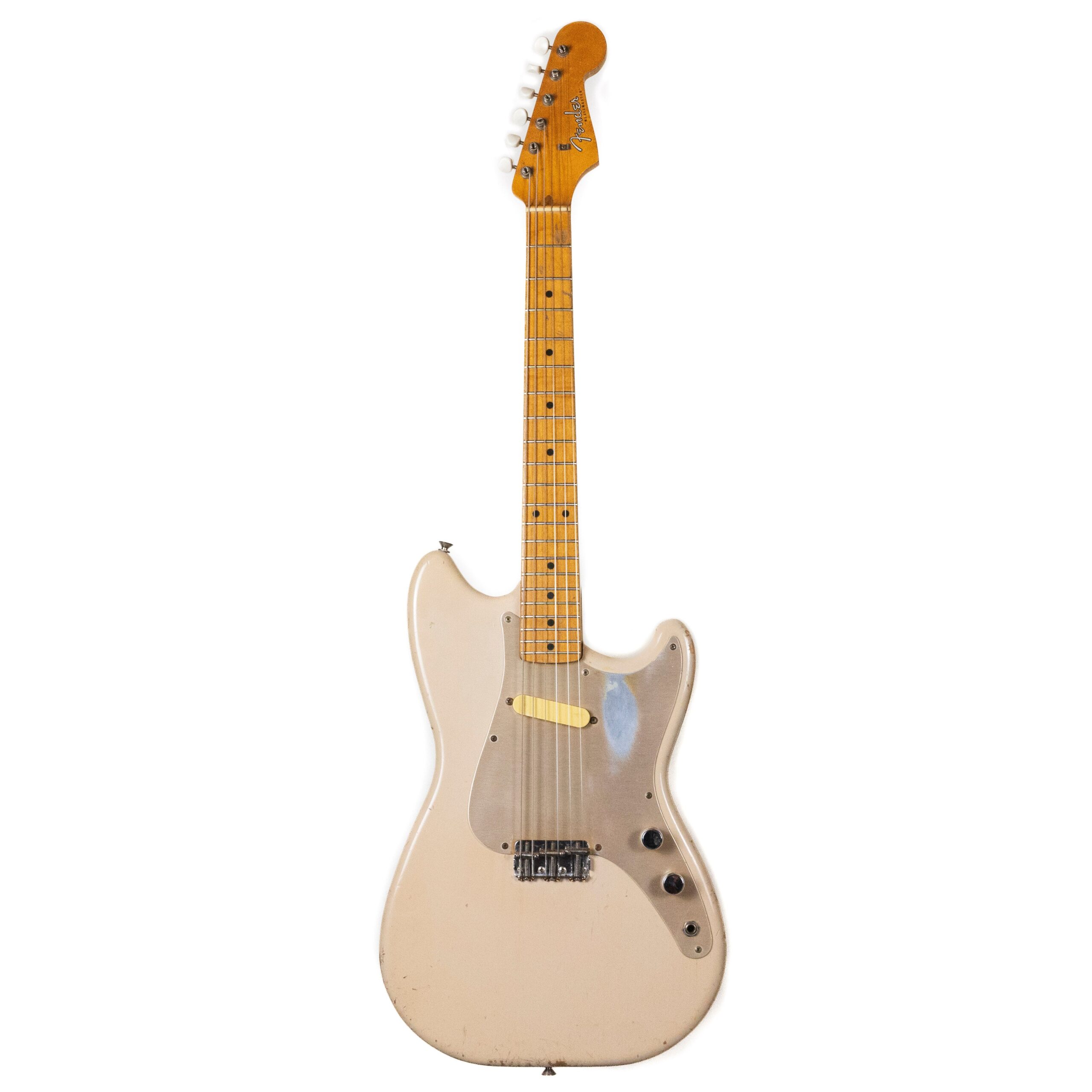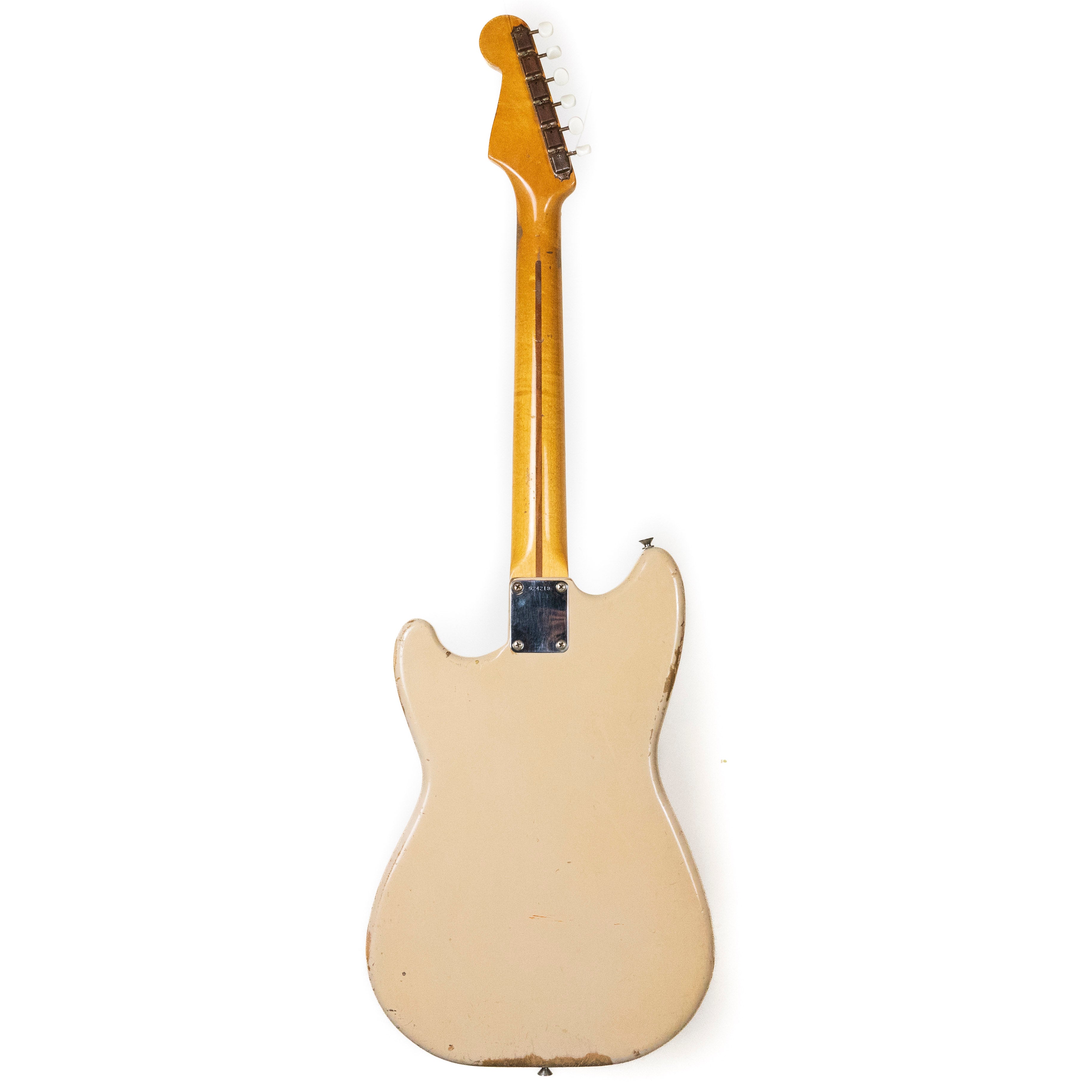 A nice student model, the Musicmaster was one of Fender’s first models aimed at students and beginners. This particular example features to much sought after ’57 shaped V neck, the same one you’d find on a ’57 Strat, just as a much shorter scale. The single pickup in the neck sounds great and loud, with a fresh set up its all good to go. The pots are dated the 32nd week of 1957 and features a 1 5/8″ nut width. It shows normal wear for a guitar of its age with the most obvious wear shown clearly in the provided photos. Serial #024219, comes with the original case.