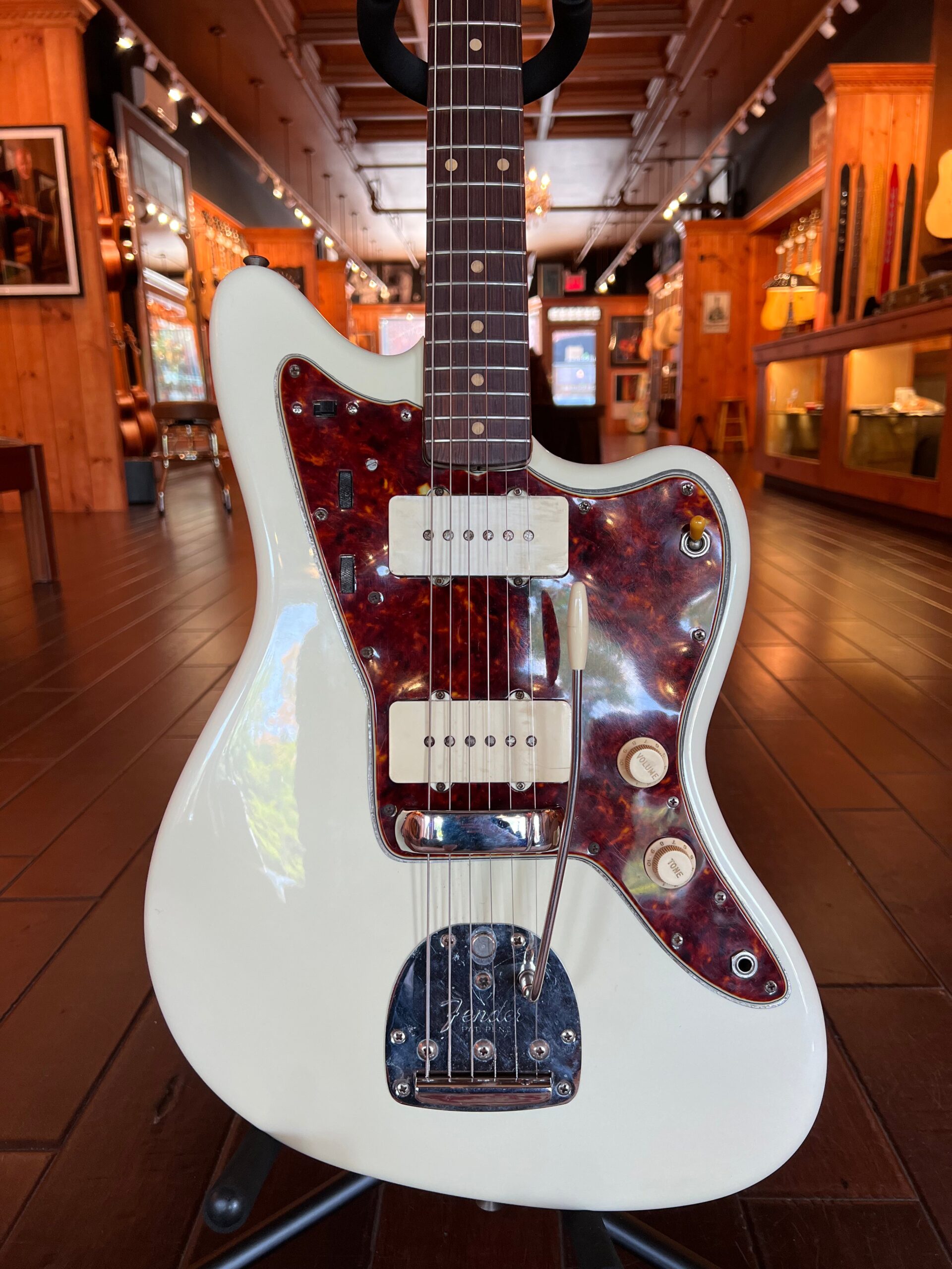 This is an incredible 1959 Fender Jazzmaster, that has been restored and refinished to near original quality in a gorgeous Olympic White. Minus the circuit select switch and the finish, this guitar is in near original condition and plays and sounds fantastic. The original late 50’s Jazzmaster pickups are clear, vocal, and have a great spank to them that only Jazzmasters can get.