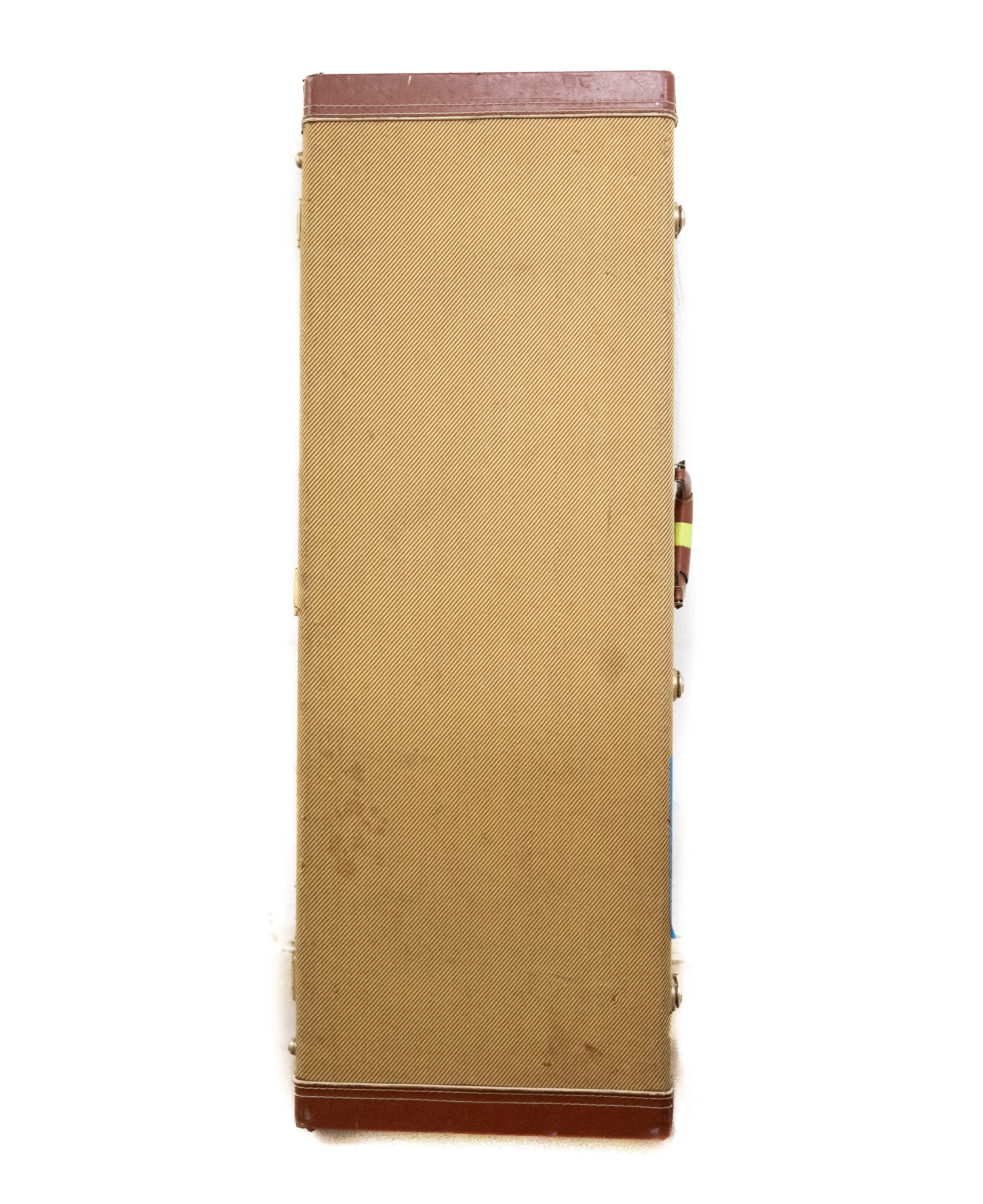 Although the original neck pencil date is long gone, Rudy himself penciled in “4/59” based on the original 4/59 pencil date on the body, along with his signature to show the addition. Serial #29508 comes with a non-original tweed case.