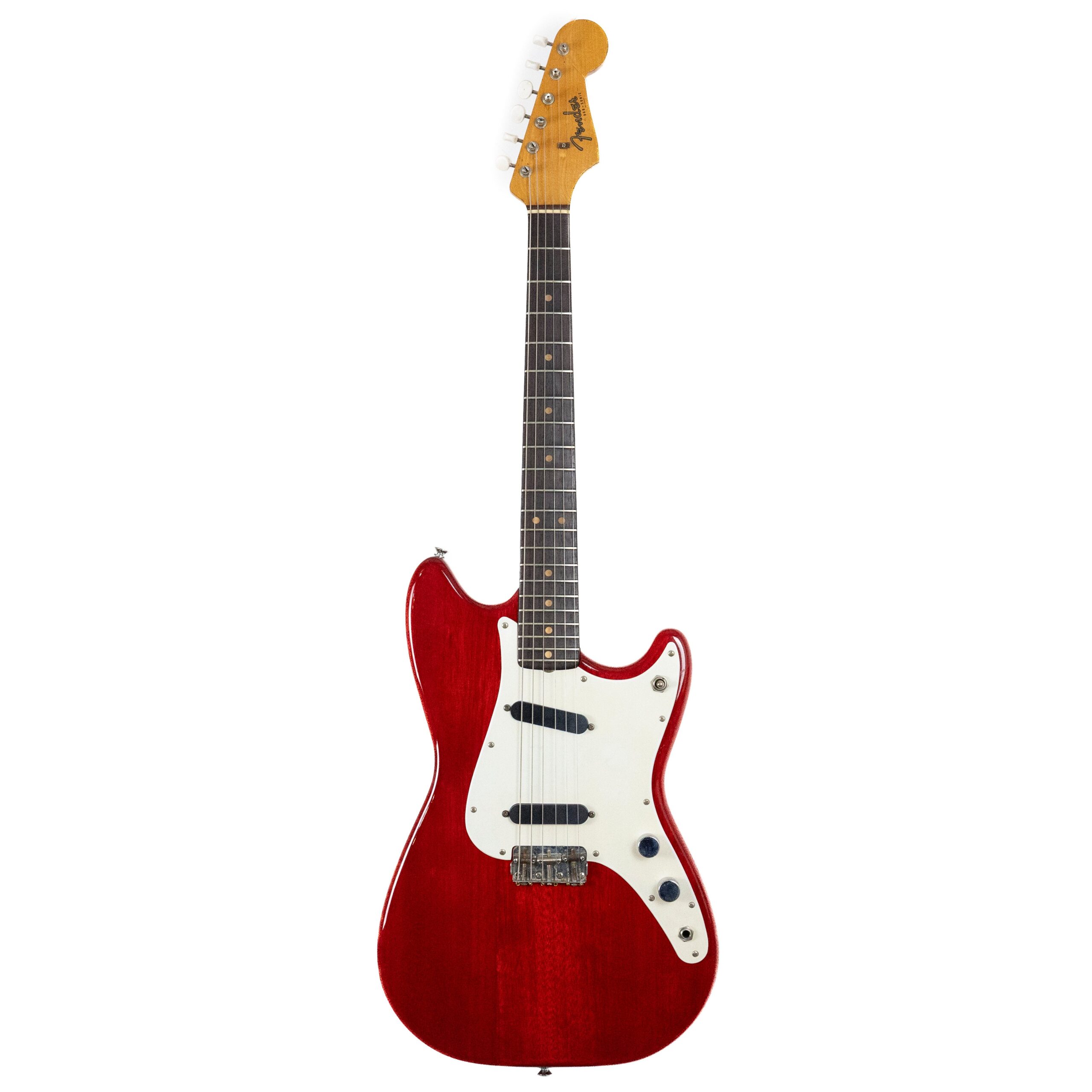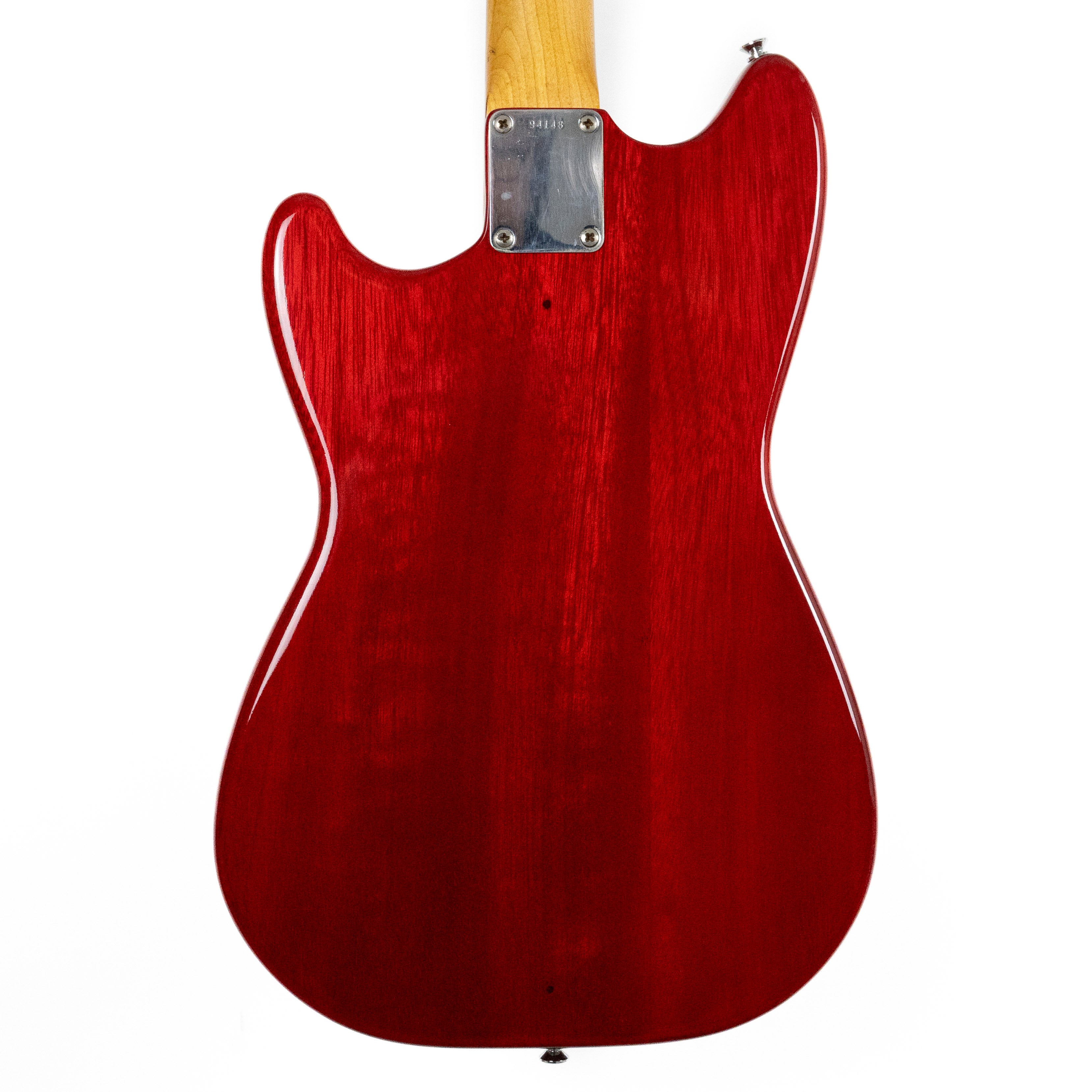 Aside from its historical material, this Duo Sonic has a fair number of things replaced: the pots, pickup covers, tuners are all replacements, as well as the middle saddle. The guitar, however, plays better because of it. The neck has the original finish, and is nice and tiny, with a 1 1/2 inch nut and a 22″ scale. These guitars are a great way of getting a great, unique, vintage guitar. Serial #94148 comes with a new Fender hardshell case.