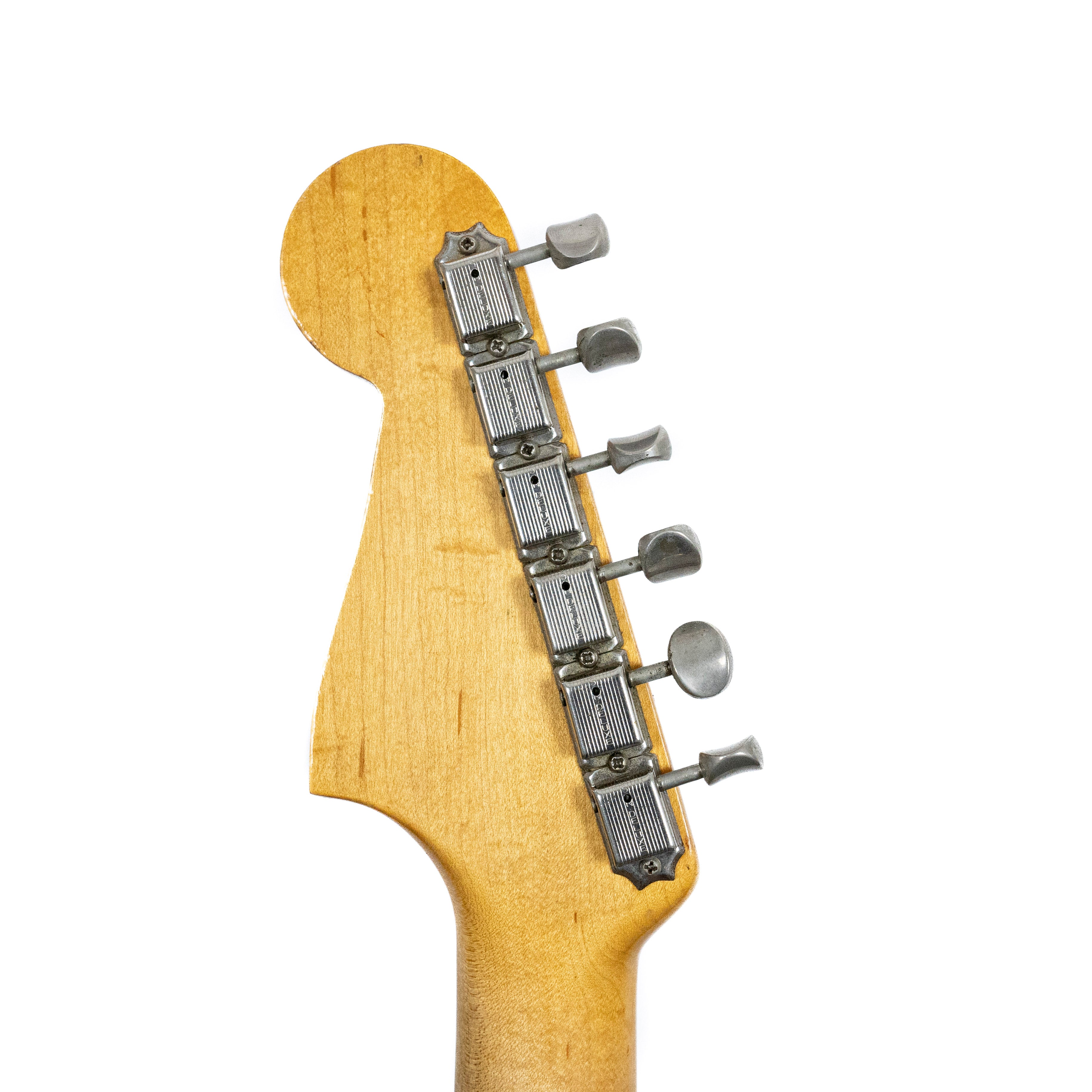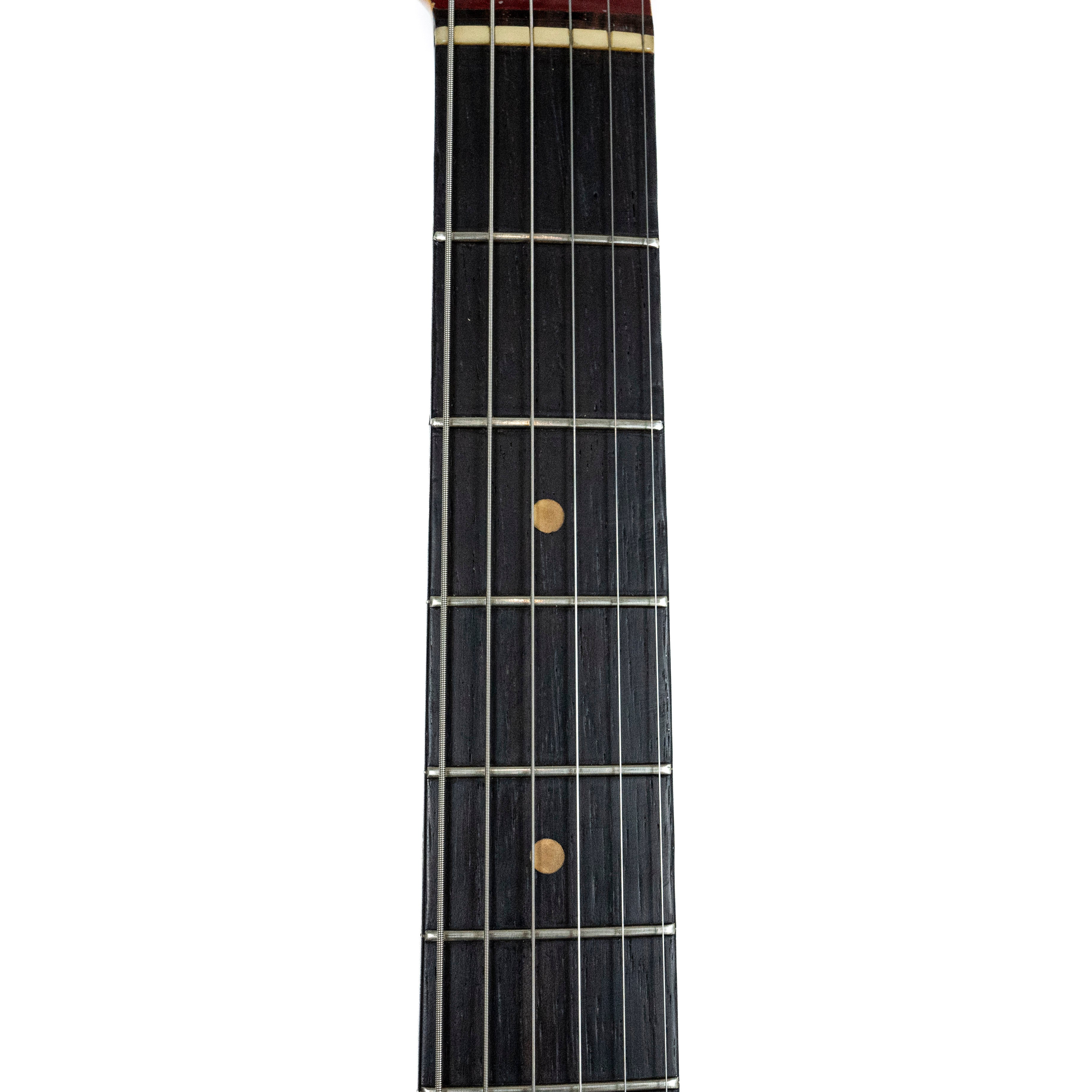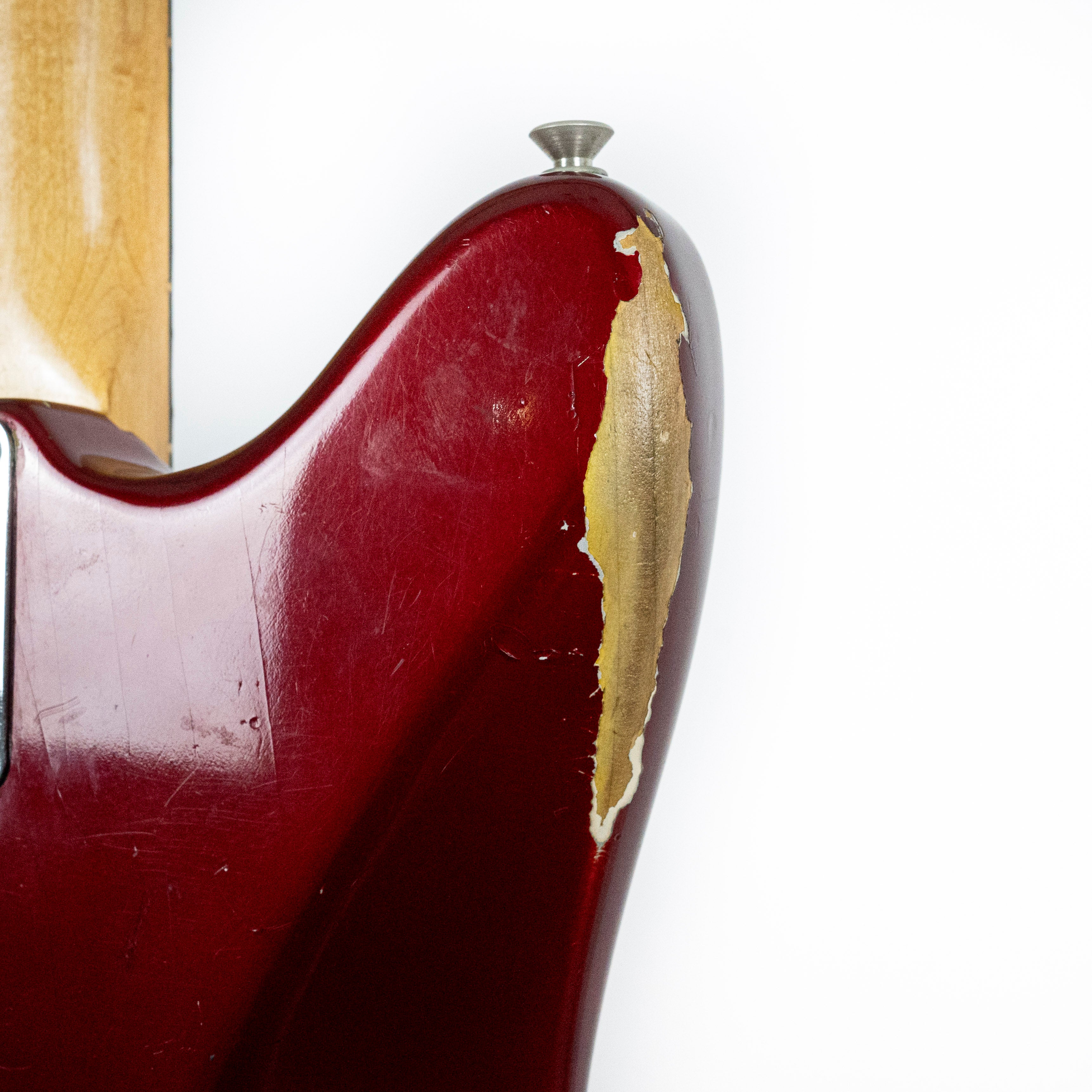 This 1964 Candy Apple Red beauty is about as good as they get, with the Custom Color matching headstock to boot. This particular Candy is sprayed over gold, as opposed to silver like later years, so it has a brighter sheen that is almost transluscent in the right lights. There’s a good amount of wear in expected places, but it adds to the character of this incredible guitar.