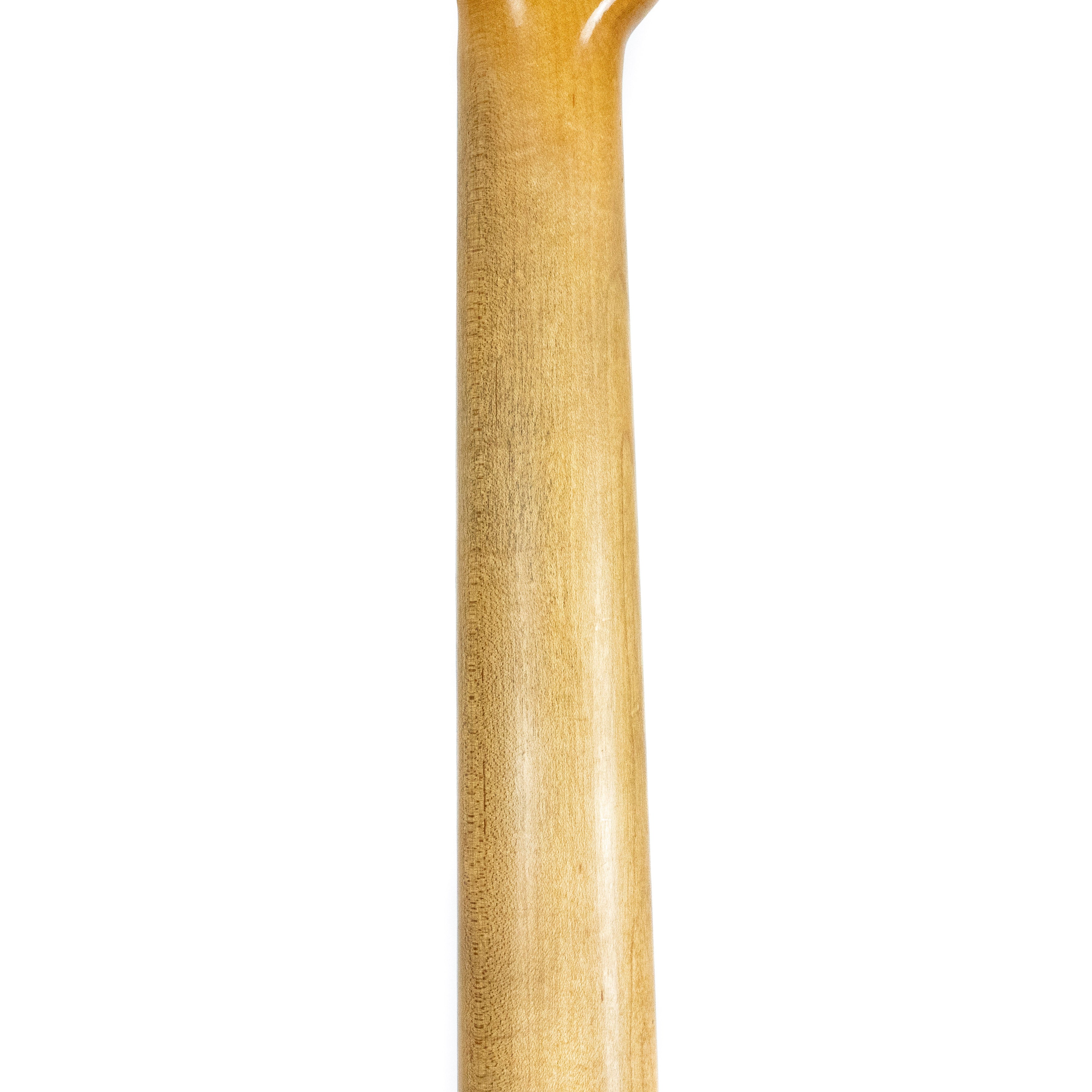 The neck is the expected ’64 feel, sort of a D shape with a nice taper, and has very little wear on the back. The gorgeous fretboard is in excellent condition, along with the frets.
