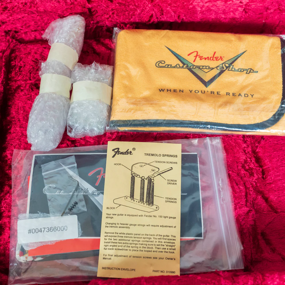 From Fender’s Website: “Todd Krause has built exquisitely crafted custom instruments for many of the world’s greatest artists, including Jeff Beck, Eric Clapton, Bob Dylan, David Gilmour, Robbie Robertson, Kenny Wayne Shepherd, Robin Trower, Roger Waters and many others…” With a cred like that, of course this Clapton inspired Strat would be out of this world! With remarkable attention to detail, this Strat feels like the real deal, with that iconic soft V ’56 profile. With the Clapton wiring, noisless pickups and wear, plug this thing in and get as close to the real deal as possible without adding a few zeros to the price!Serial #R105161, comes with the original case and paperwork.