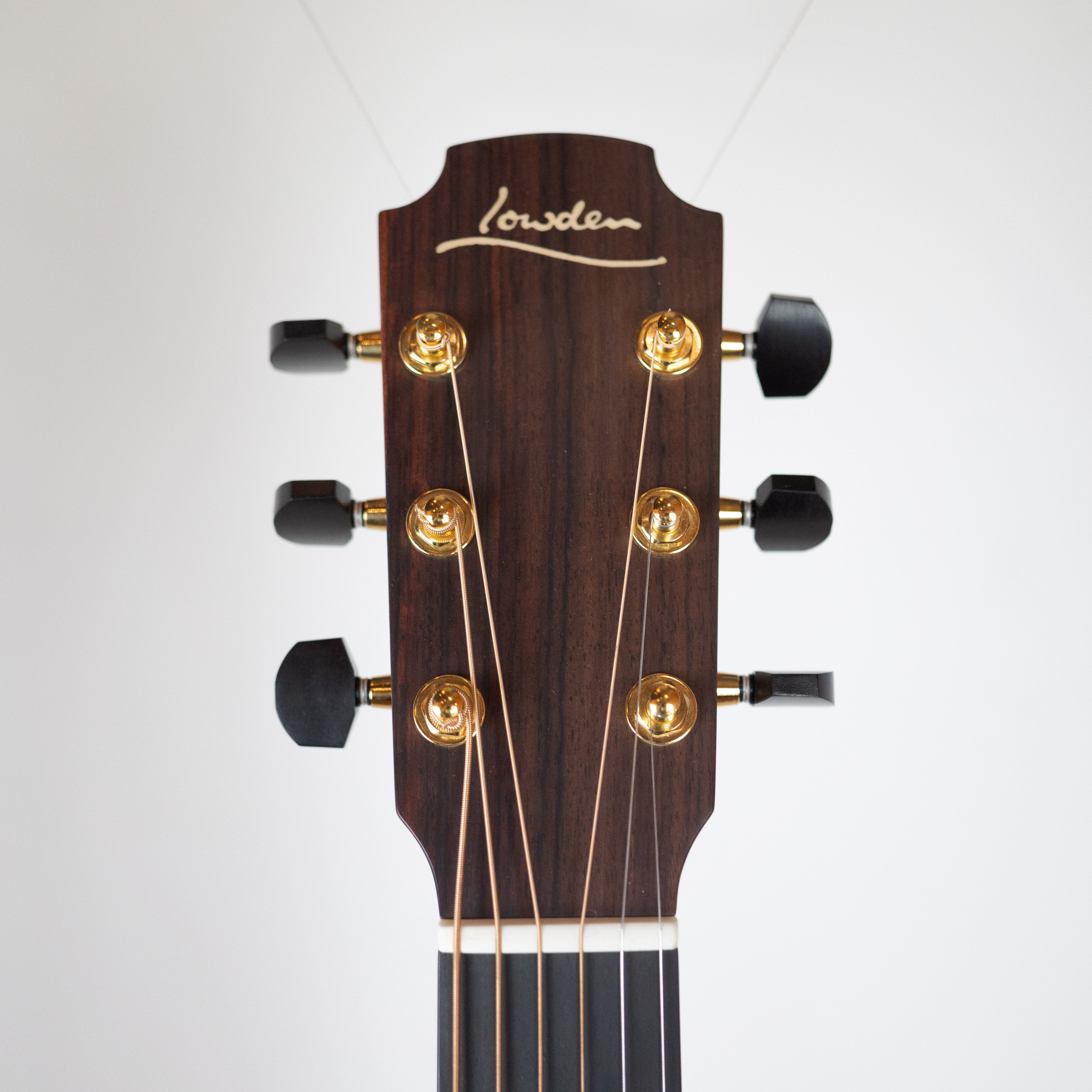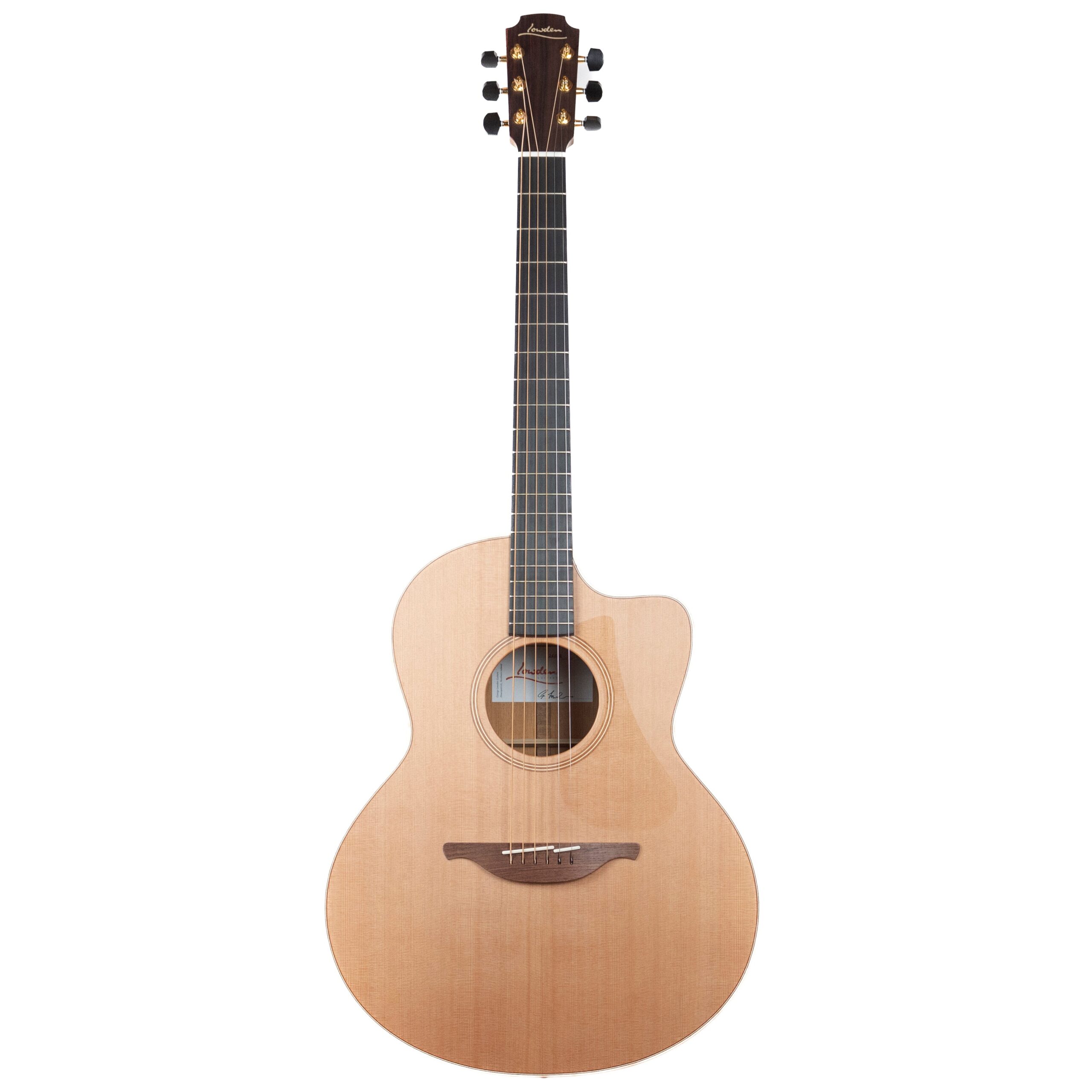 A medium sized beauty from Lowden, this guitar sports a Cedar top and Mahogany back and sides.  Not too large but plenty of low end authority and a crisp, warm midrange to high end tone.  Comes with a beautiful Lowden hardshell case.