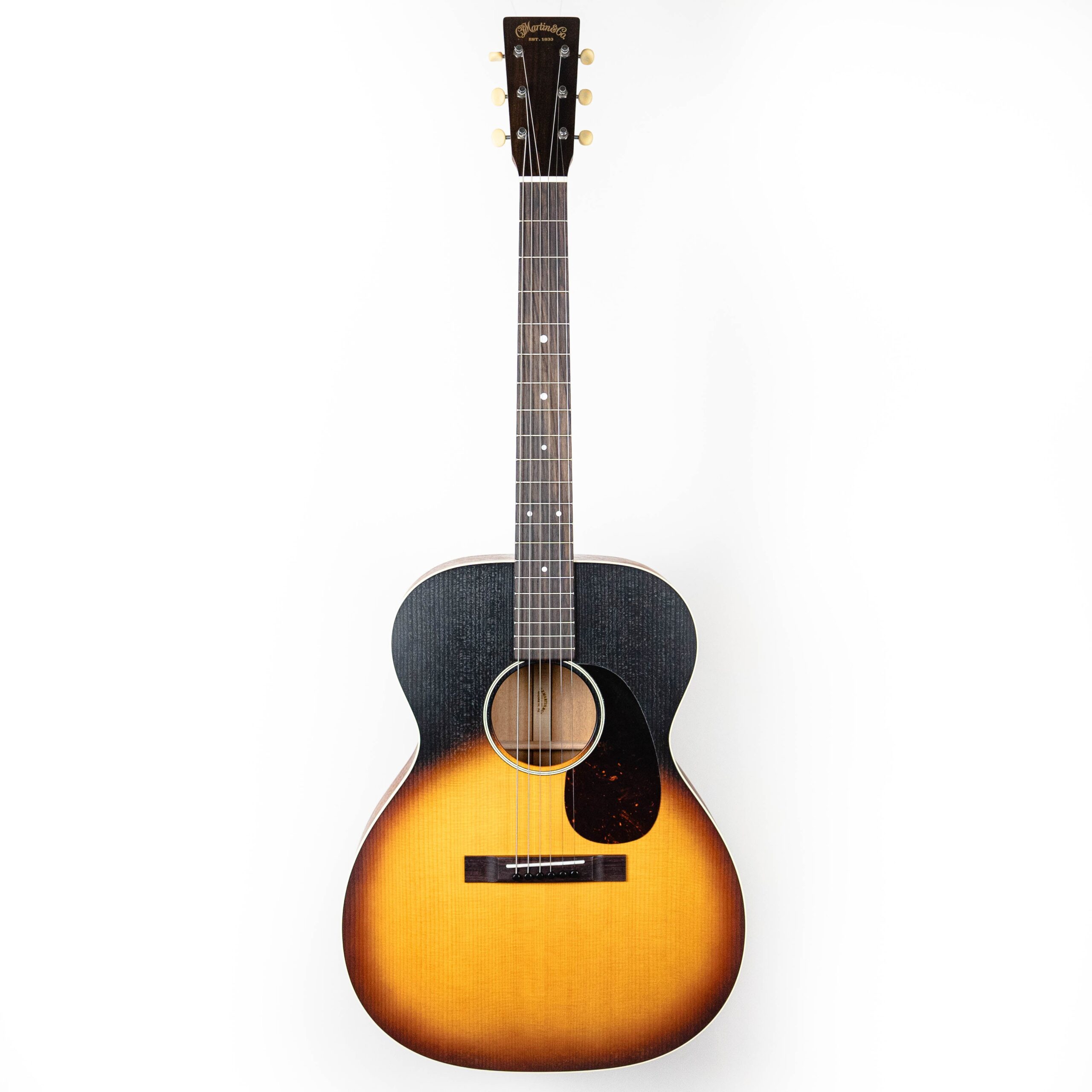 From Martin Guitar’s Website: “The 000-17 Whiskey Sunset Auditorium model boasts a rich, warm sunburst finish that will delight any player with its aesthetic beauty. Skillfully crafted from a solid Sitka spruce top and mahogany back and sides with antique white binding, a modified low oval neck with a Performing Artist taper, and a rosewood fingerboard and bridge, this guitar produces beautiful dynamic tones that will please the most discerning musician.”
