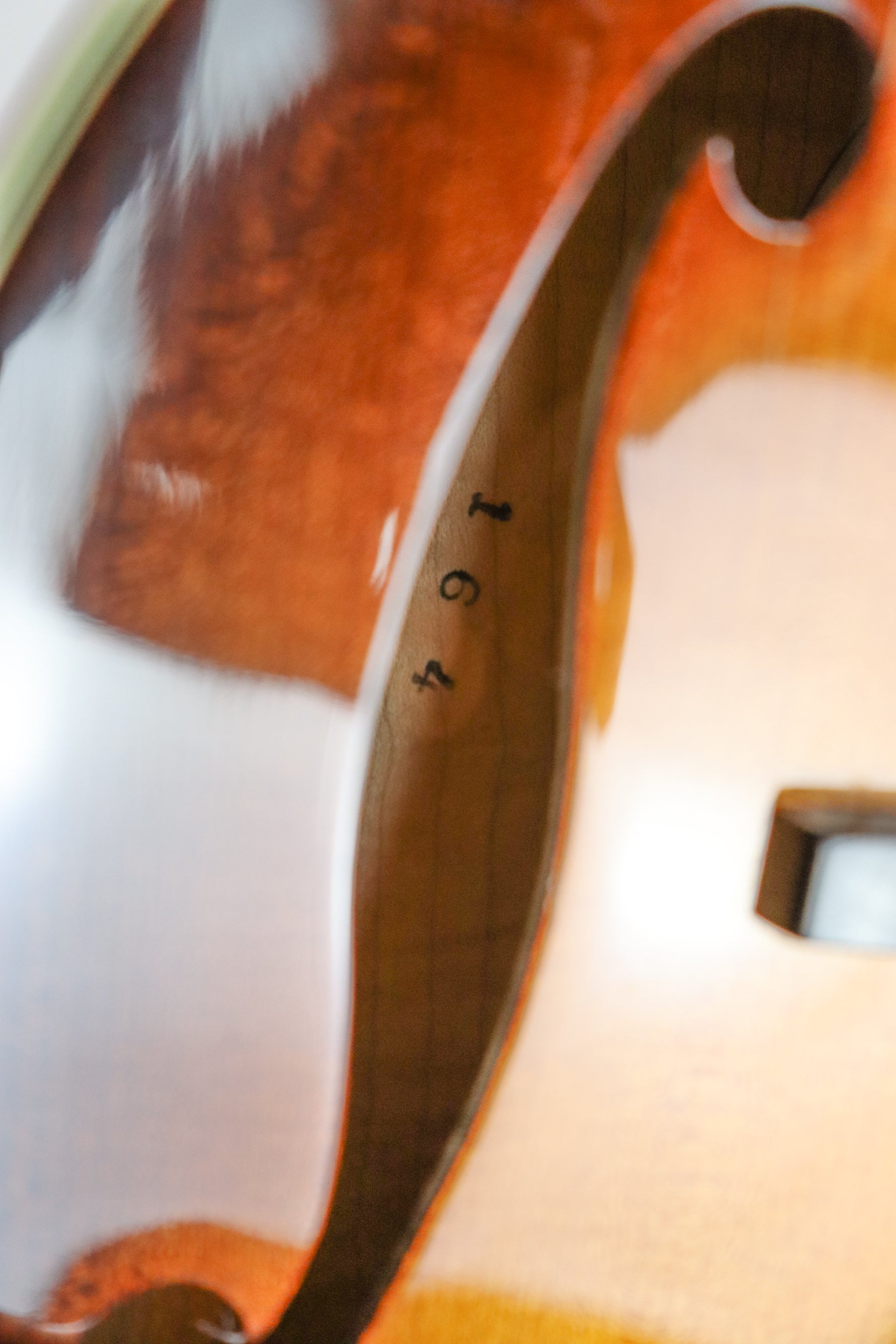 John Monteleone is widely considered to be one of the world’s preeminent builders of archtop guitars. Having started his career as a repairman for the famous (and now defunct) Mandolin Brothers on Staten Island, Monteleone quickly garnered a reputation for quality and design. Some of his work (including another Grand Artist mandolin) is featured in the Metropolitan Museum of Art, on loan from Rudy Pensa himself.