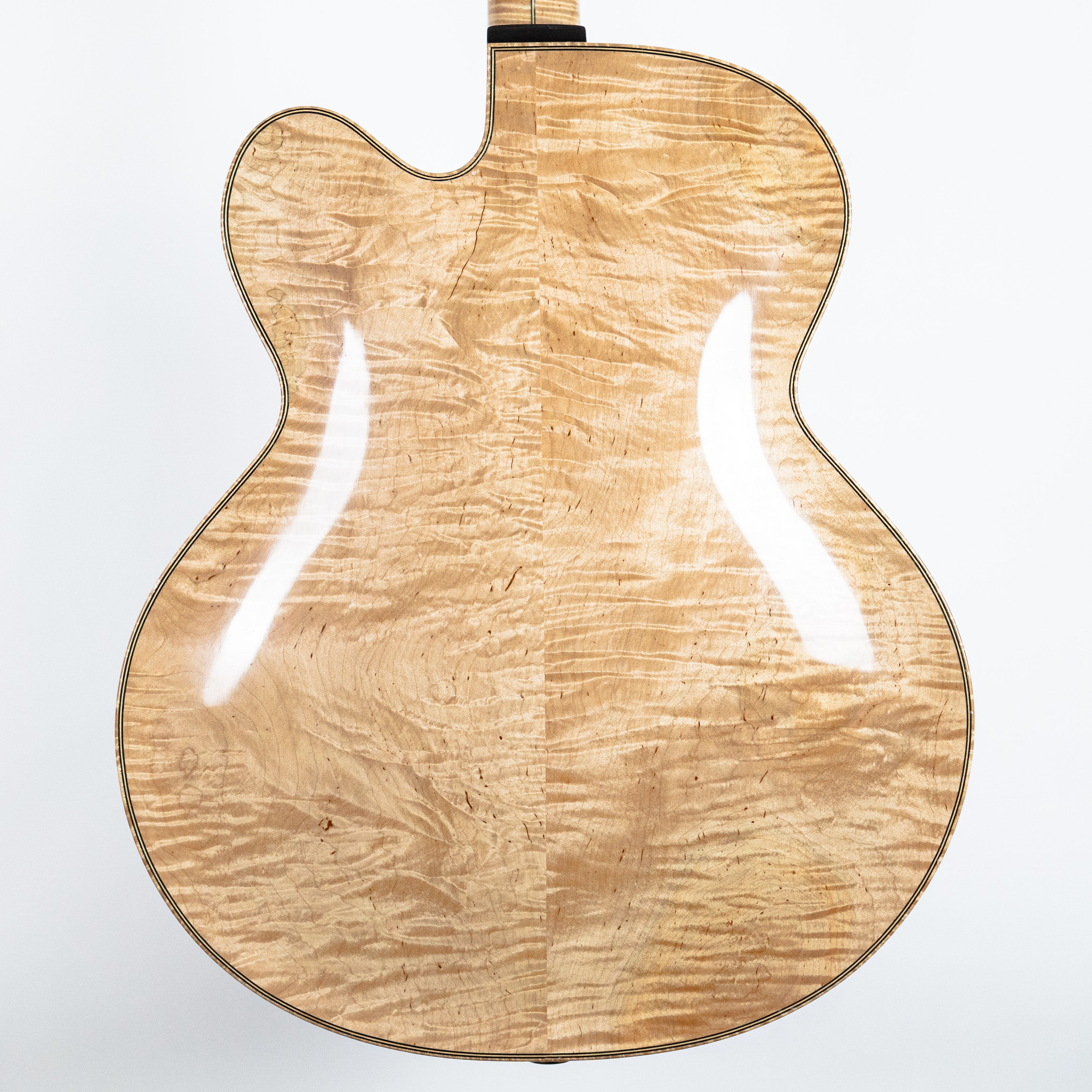 This 18″ Radio Flyer was completed in January of 1995. It a spruce top and flame maple back and sides. The guitar features a beautiful Macassar ebony fingerboard, bridge, heel cap, pickguard/finger rest, and tailpiece – all handmade by Monteleone. Schaller tuners with ebony buttons. Serial #168. Comes with deluxe hardshell case.