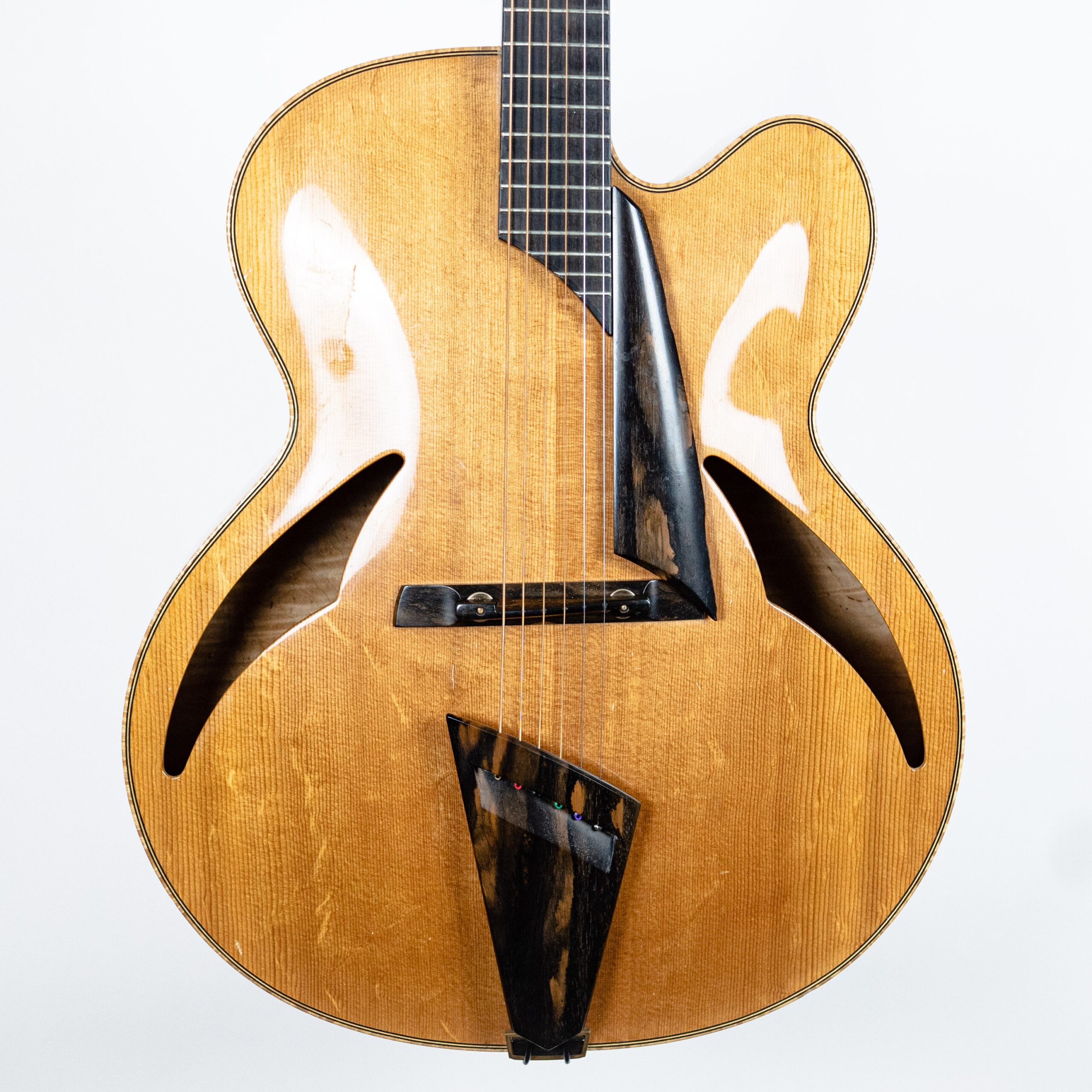 John Monteleone is widely considered to be one of the world’s preeminent builders of archtop guitars. Having started his career as a repairman for the famous (and now defunct) Mandolin Brothers on Staten Island, Monteleone quickly garnered a reputation for quality and design. Some of his work was featured in the Metropolitan Museum of Art, on loan from Rudy Pensa himself.