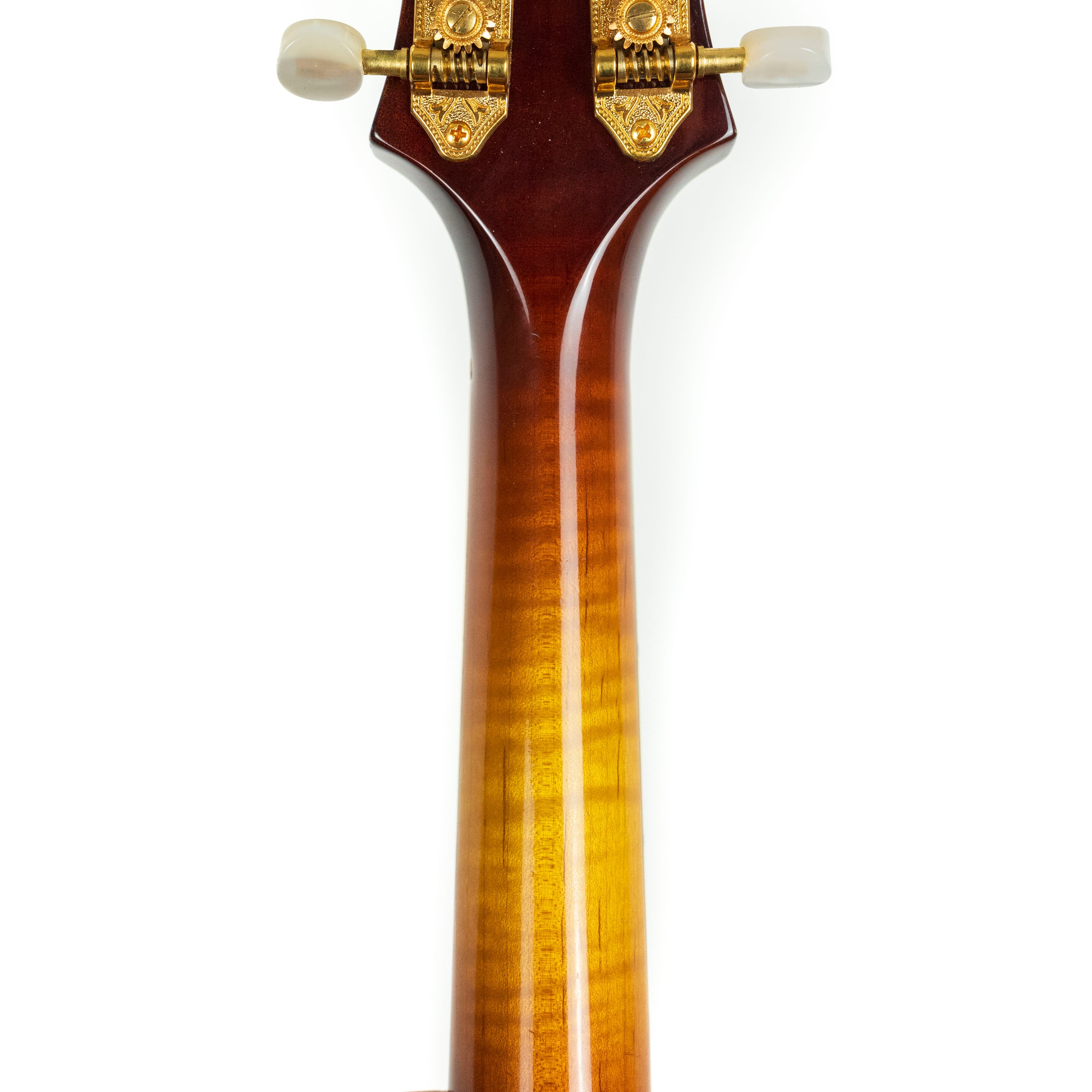 John Monteleone is widely considered to be one of the world’s preeminent builders of archtop guitars. Having started his career as a repairman for the famous (and now defunct) Mandolin Brothers on Staten Island, Monteleone quickly garnered a reputation for quality and design. Some of his work (including another Grand Artist mandolin) is featured in the Metropolitan Museum of Art, on loan from Rudy Pensa himself.
