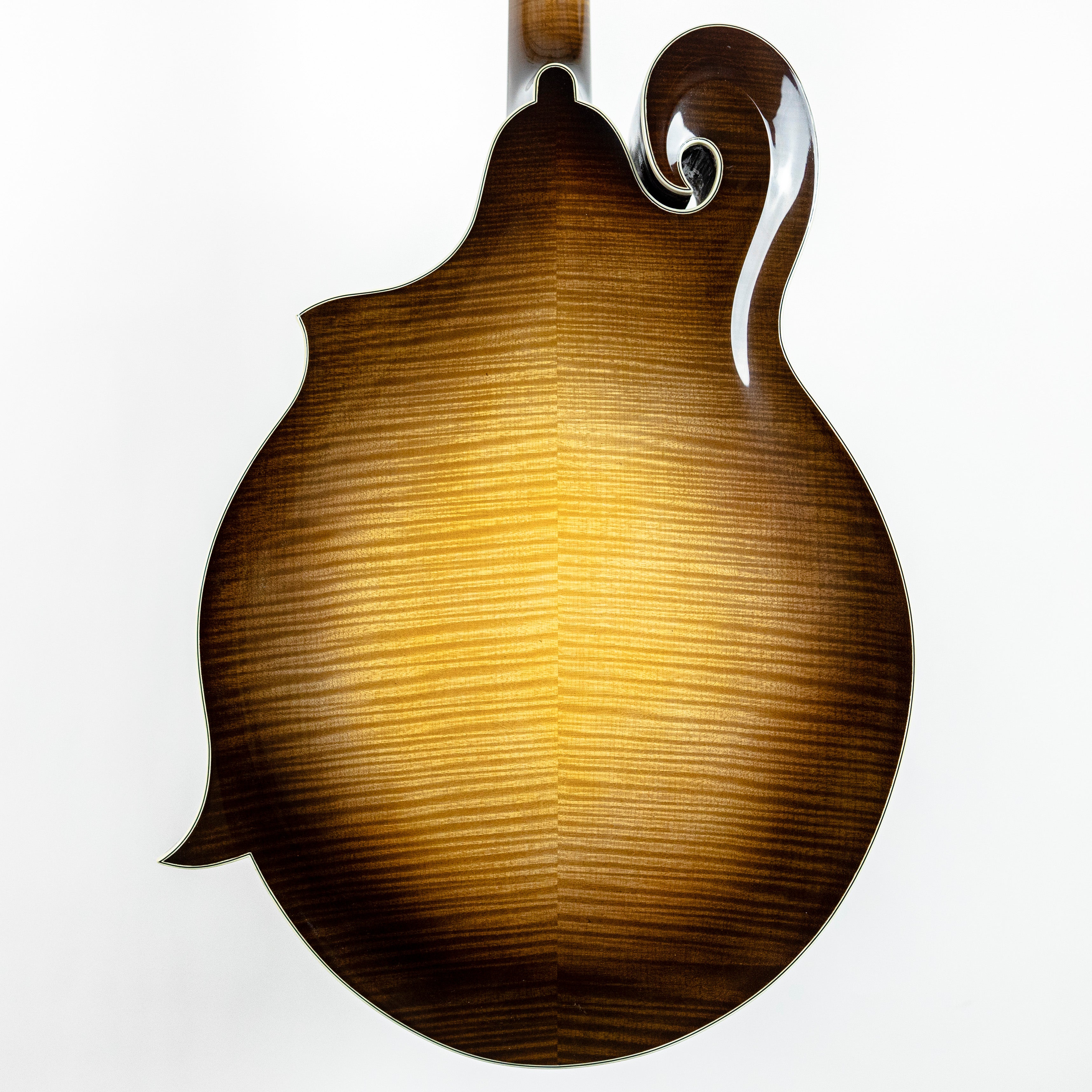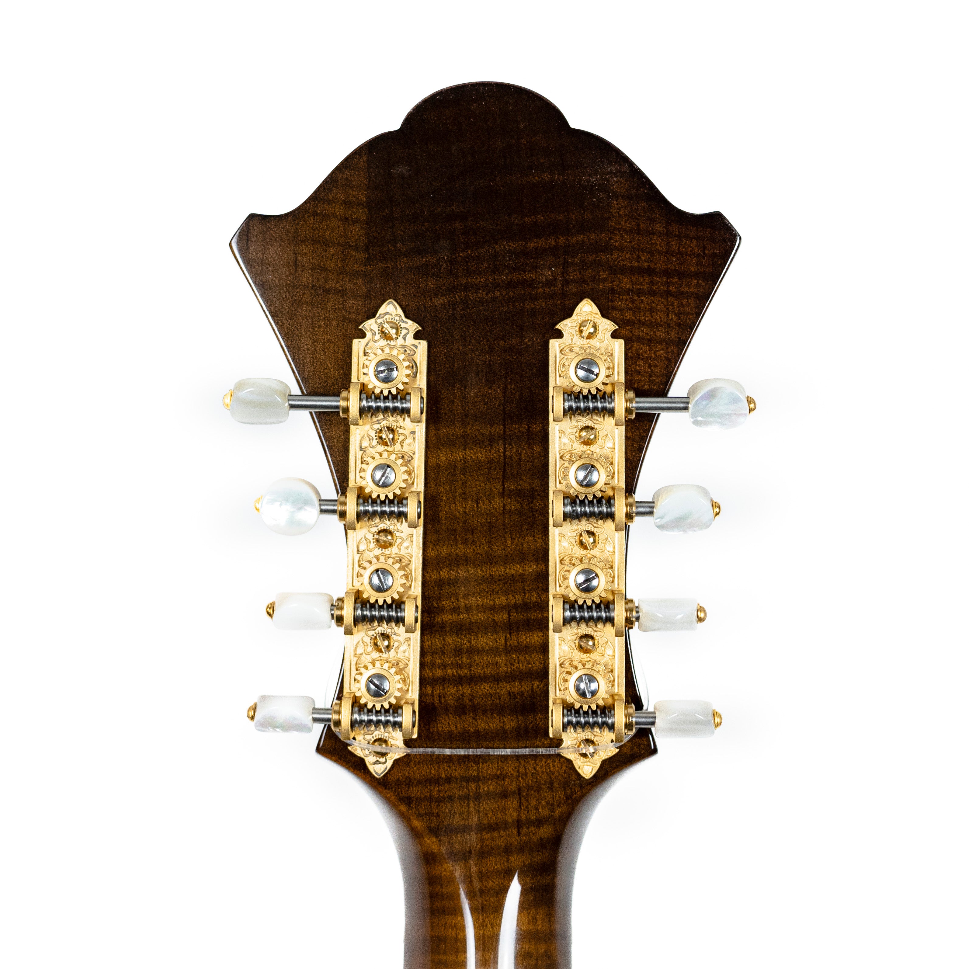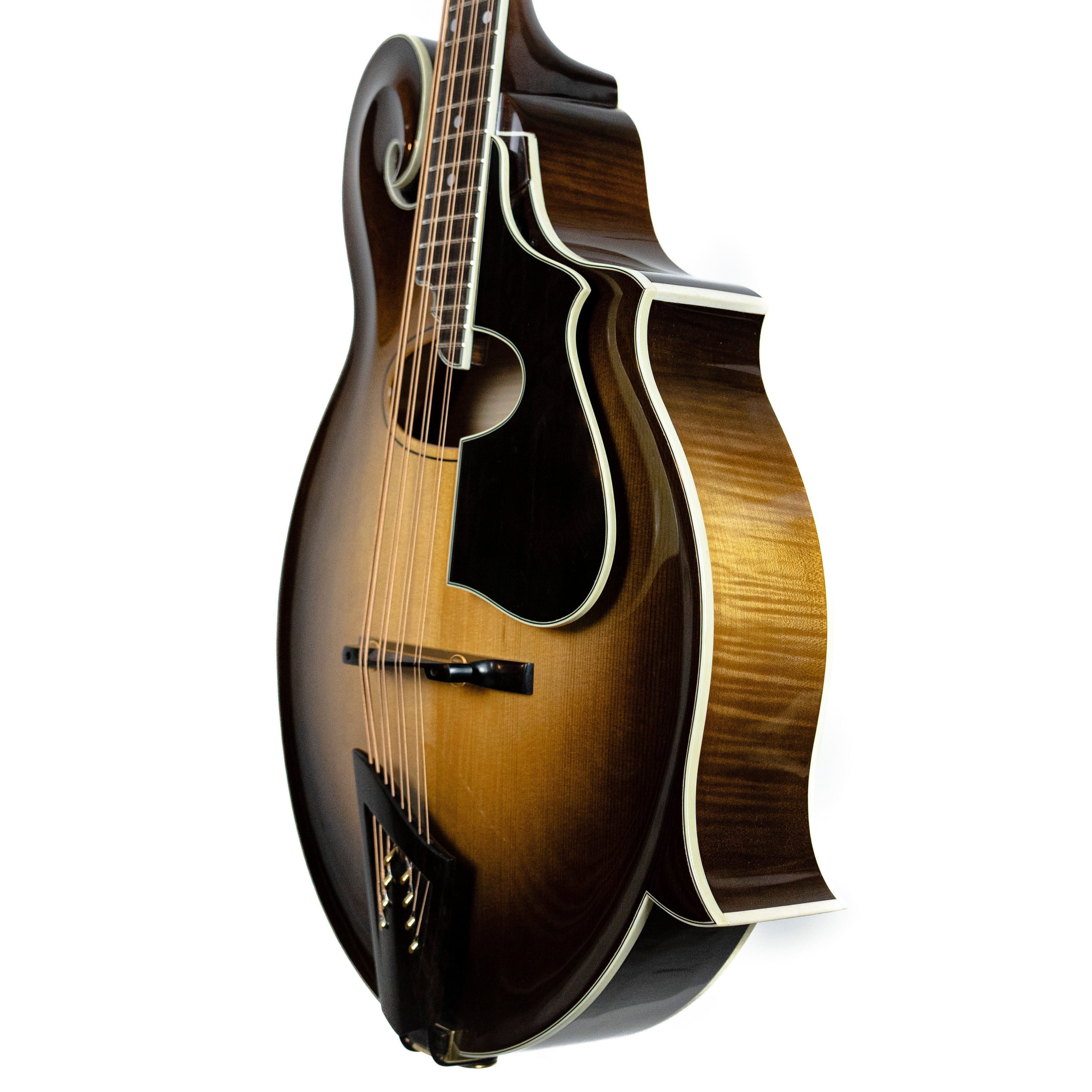 This example, like most of the mandolin family, features a spruce top, incredible flamed maple back and sides, as well as a solid flame maple neck, an ebony fretboard, bridge, and tailpiece, and a gorgeous, hand sprayed sunburst finish.