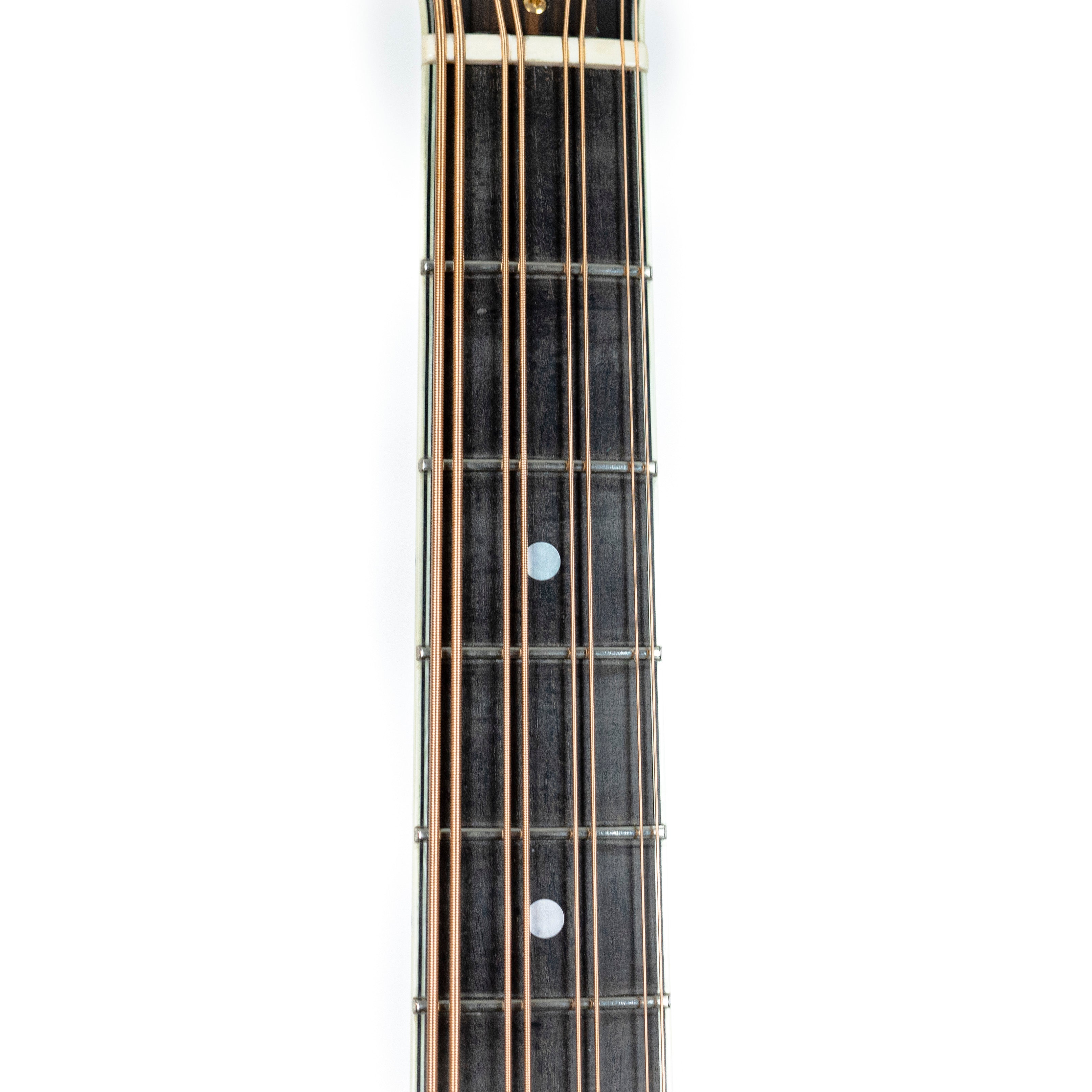 The scale length measures 25″ inches, with a neck shape closest to a rounded V, almost a scaled up version of the normal Loar style neck shape. The nut is just under the common and comfortable 1 9/16ths, familiar for many guitar players.