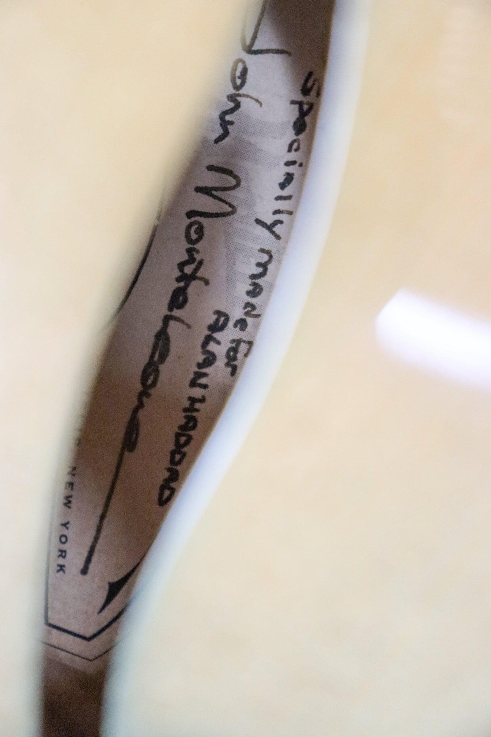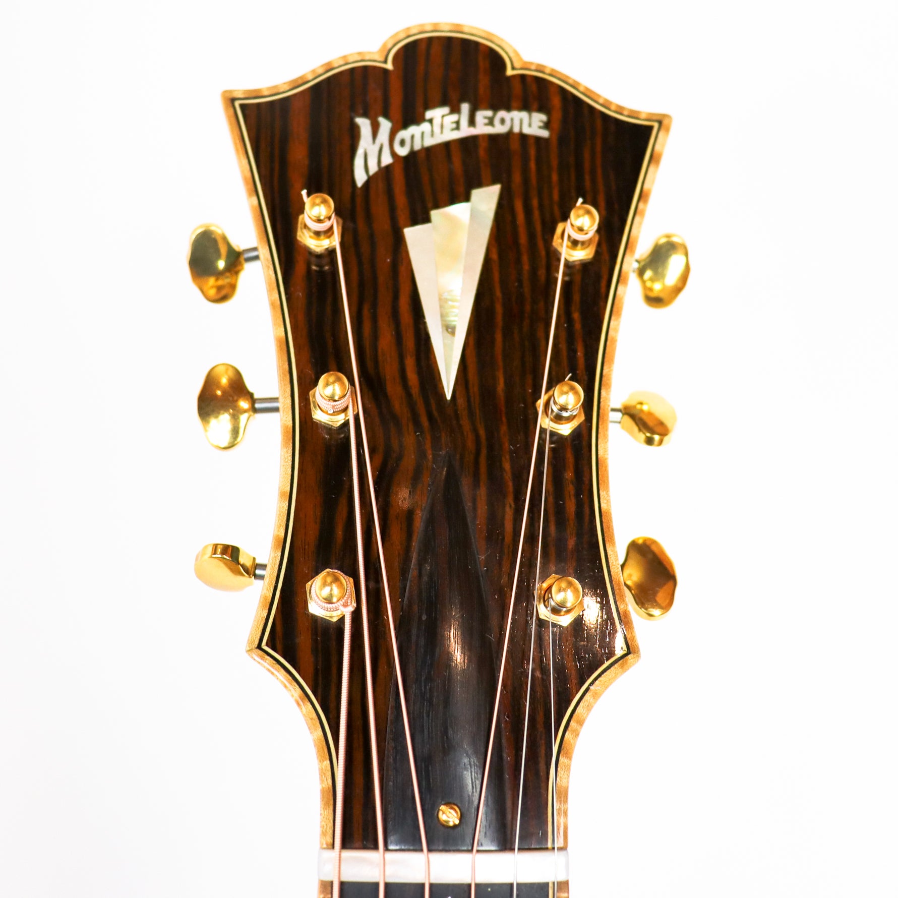 John Monteleone is widely considered to be one of the world’s preeminent builders of archtop guitars. Having started his career as a repairman for the famous (and now defunct) Mandolin Brothers on Staten Island, Monteleone quickly garnered a reputation for quality and design. Some of his work was featured in the Metropolitan Museum of Art, on loan from Rudy Pensa himself.