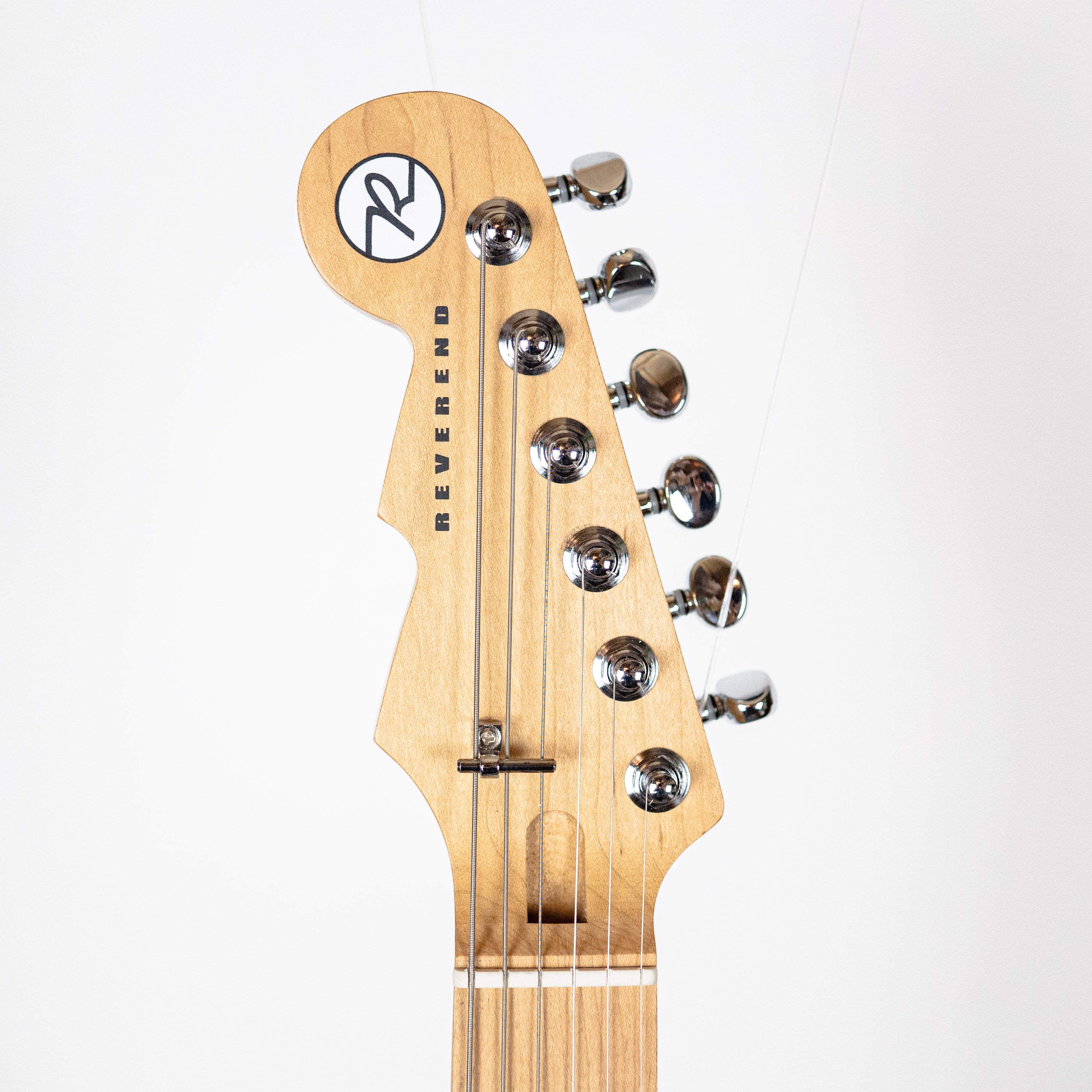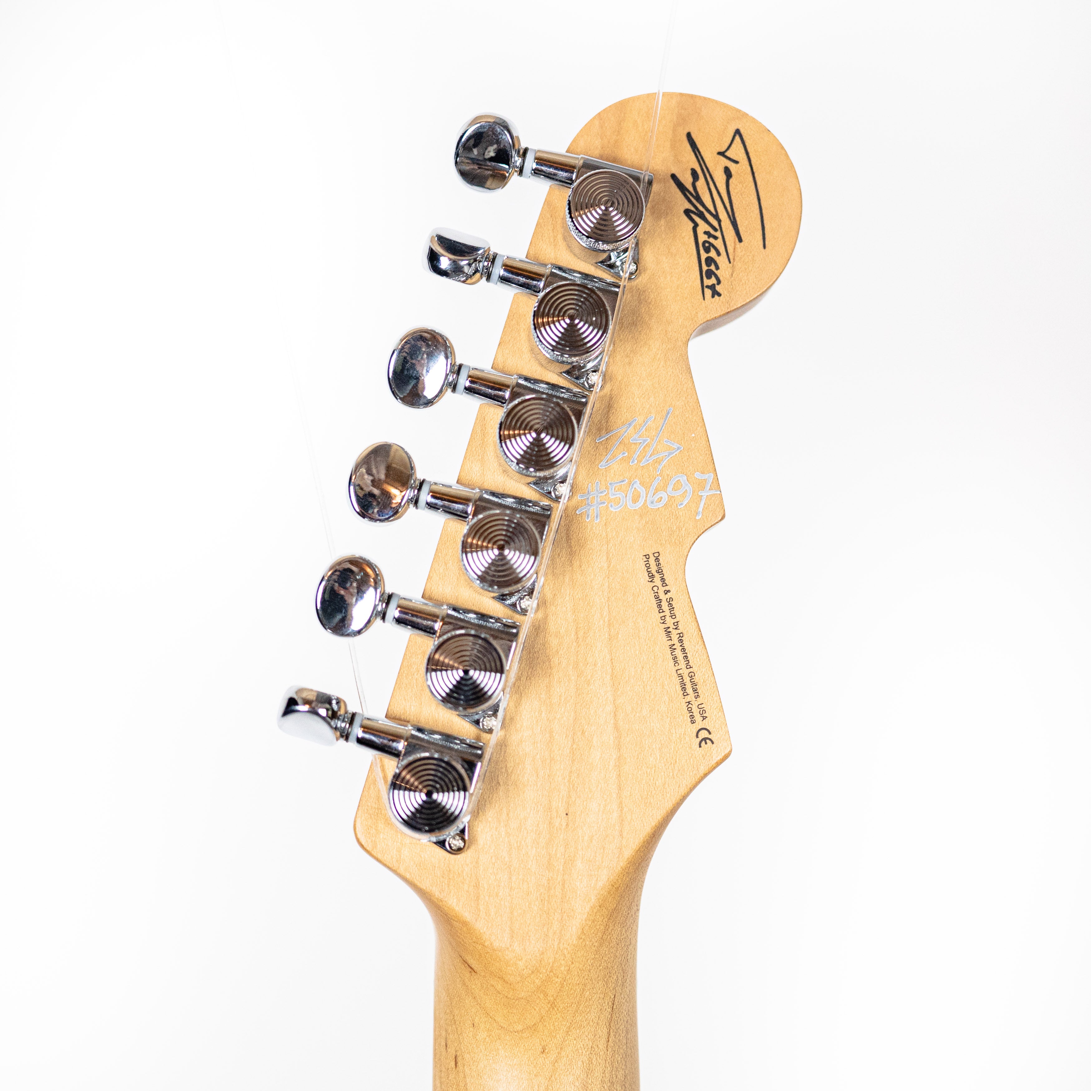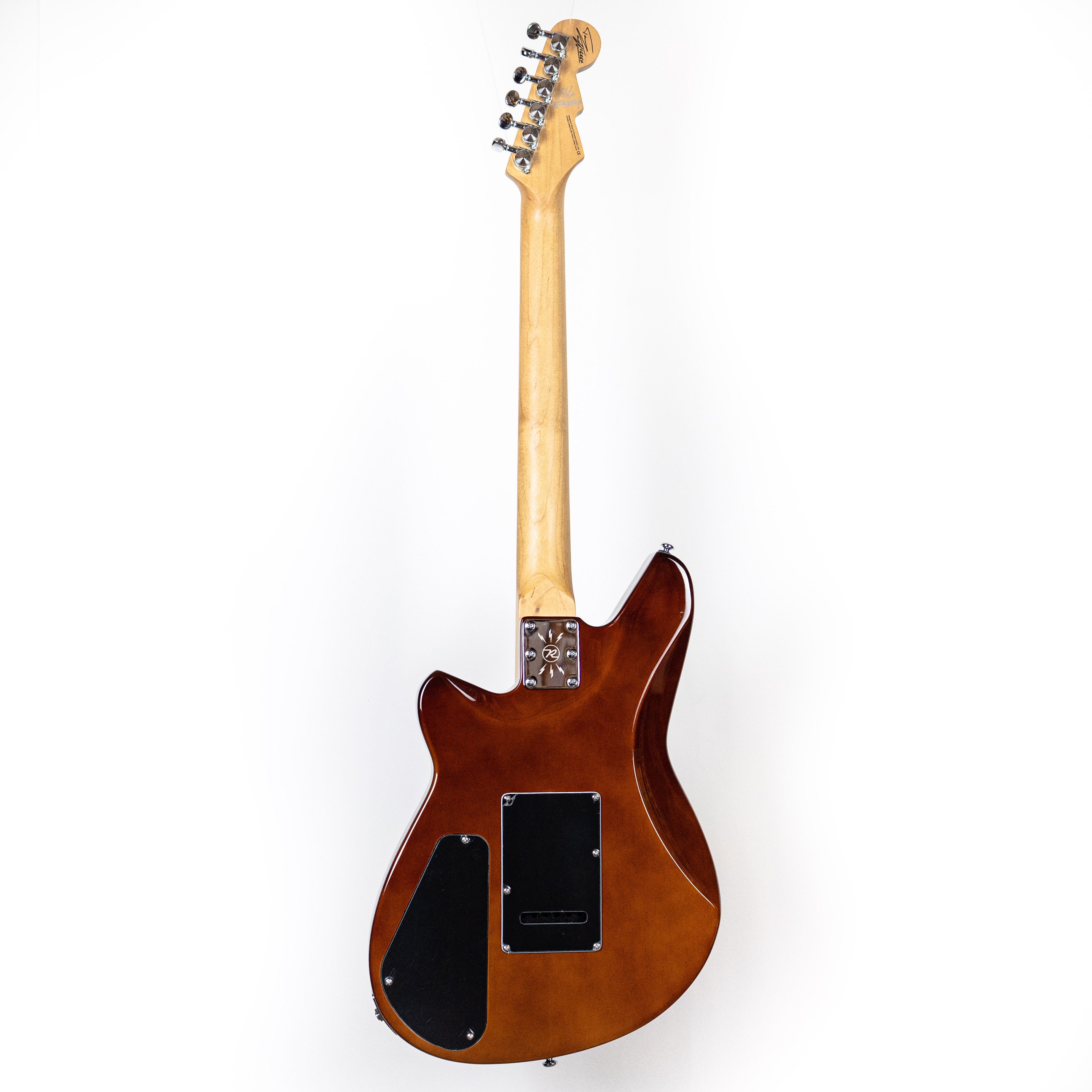 After playing more than 2000 shows in 12 years, worldwide, mostly living out of a band van and random hotel rooms, and living on junk food, caffeine, and beer, Tommy Koffin needed a guitar that he could take anywhere. We loaded Railhammer Chisels into a Kingbolt body, put a Wilkinson trem on it, and painted it with cool sparkle colors to catch the stage lights. He signed it with “Tommy Koffin *666*,” and he’s ready for another 2000 shows.