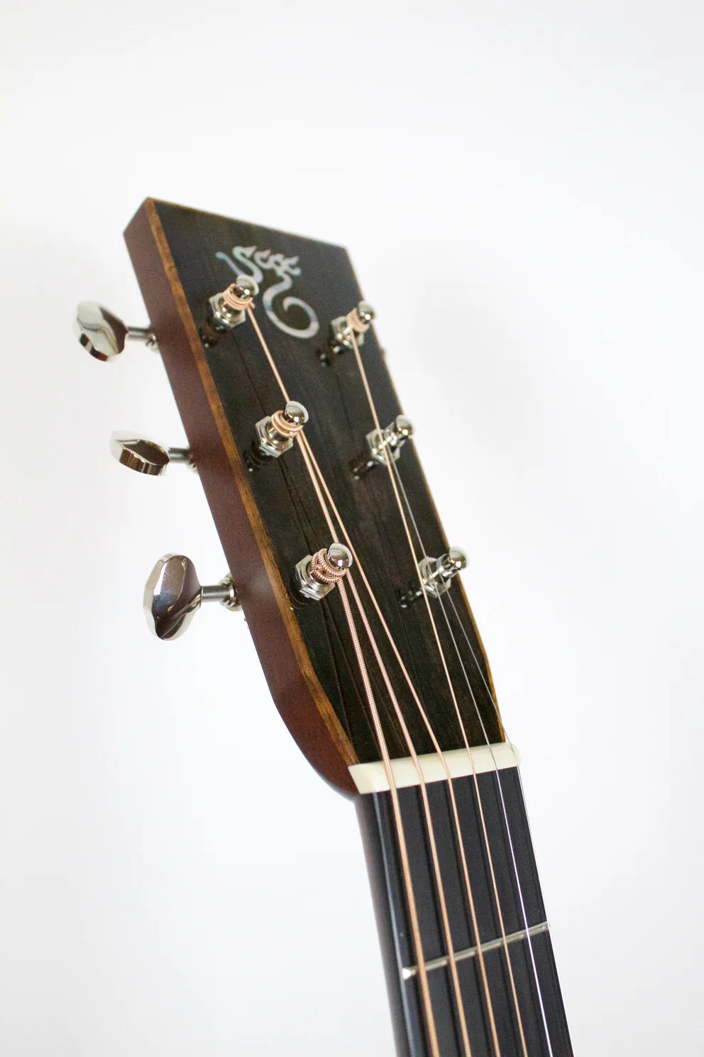 The OM Grand from Santa Cruz Guitar Company is grand, indeed. The larger body size offers an increase in power, projection and bass, reminiscent of the Martin 0000 size. We customized a bunch of features on this model, choosing specific tonewoods for a stunning visual effect as well as a more dynamic tone; the warmth of the cedar is further amplified and carried by the powerful low-end and sustain of the walnut. We love the way this one came out! It’s one-of-a-kind but still sounds and feels like a Santa Cruz. Comes with a deluxe hardshell case designed by SCGC.