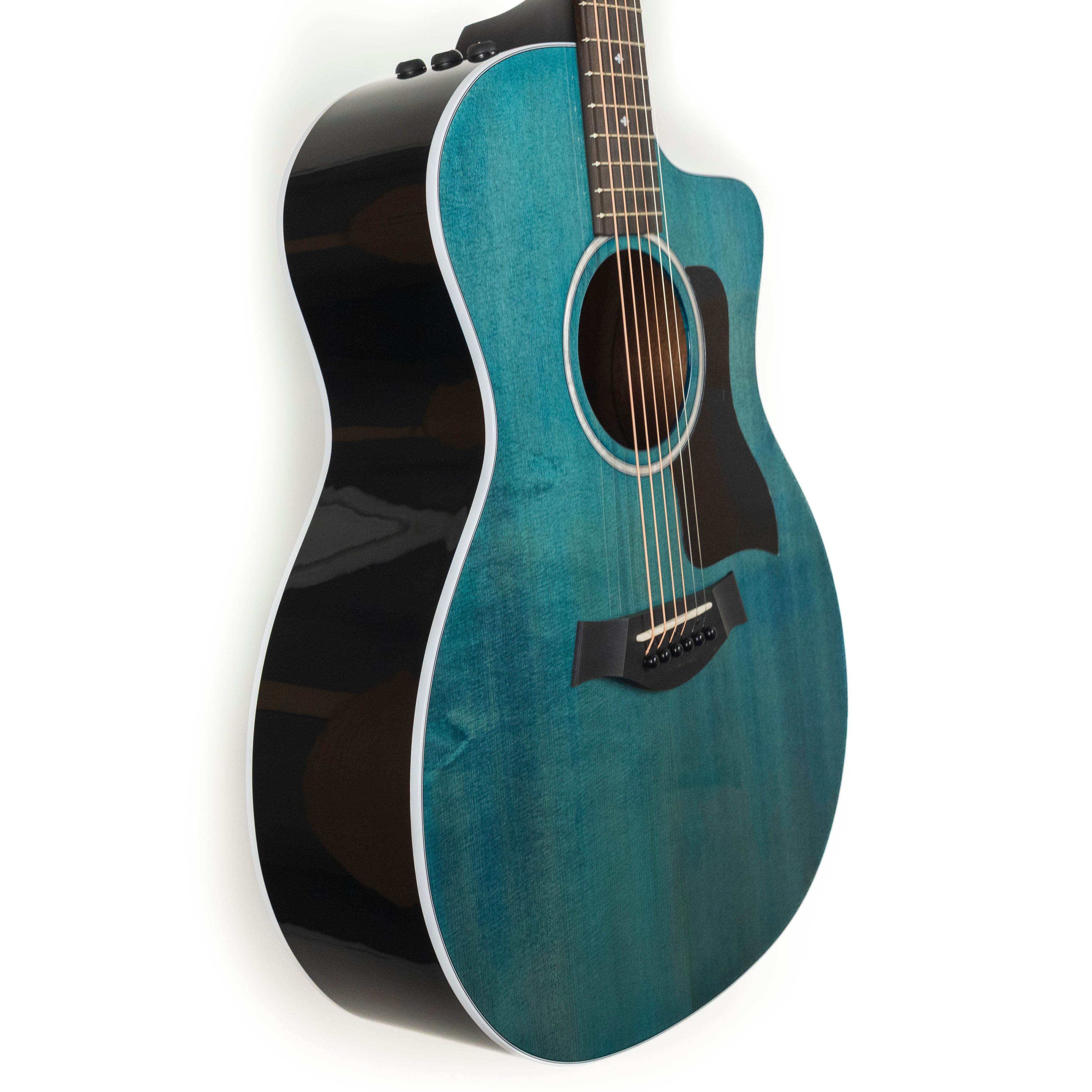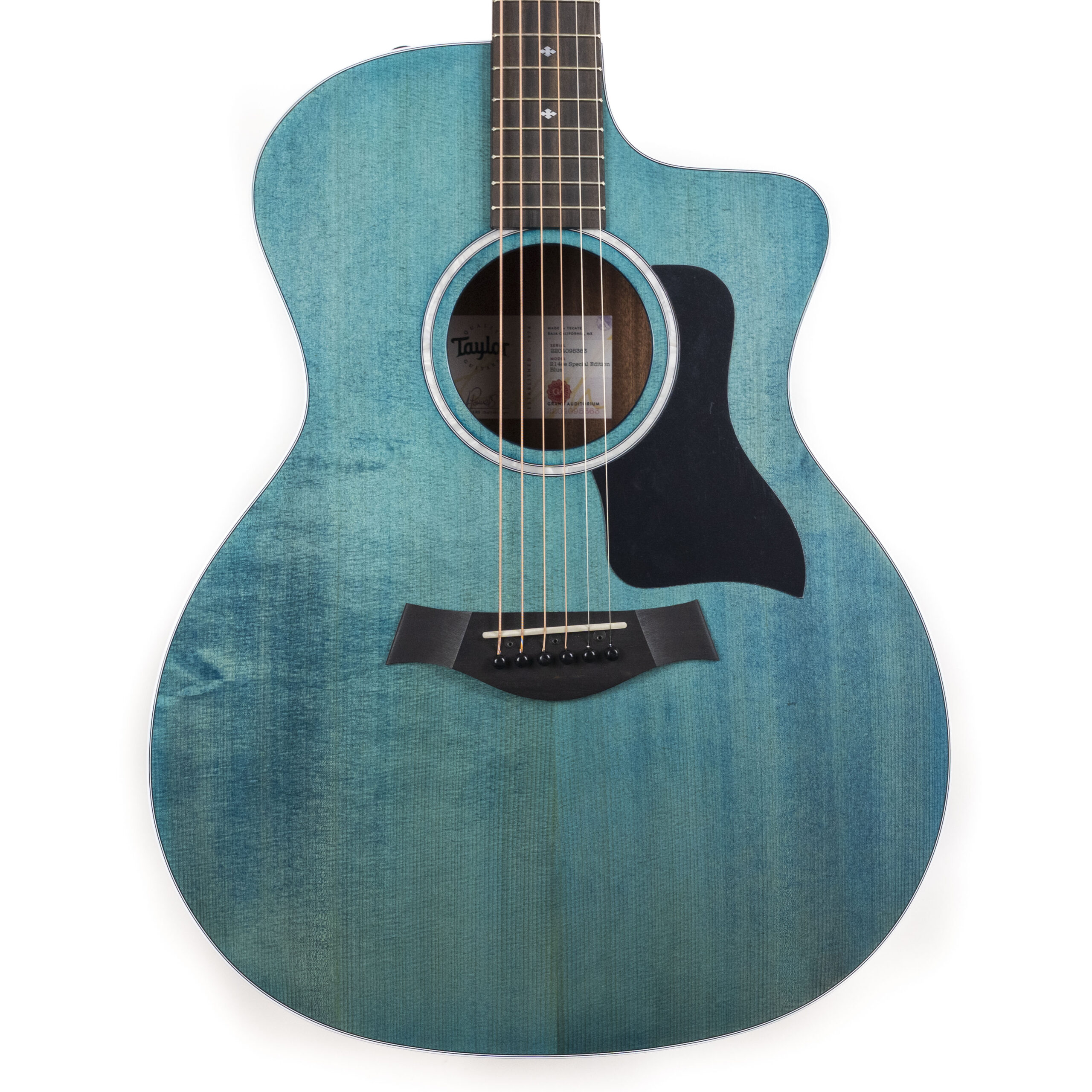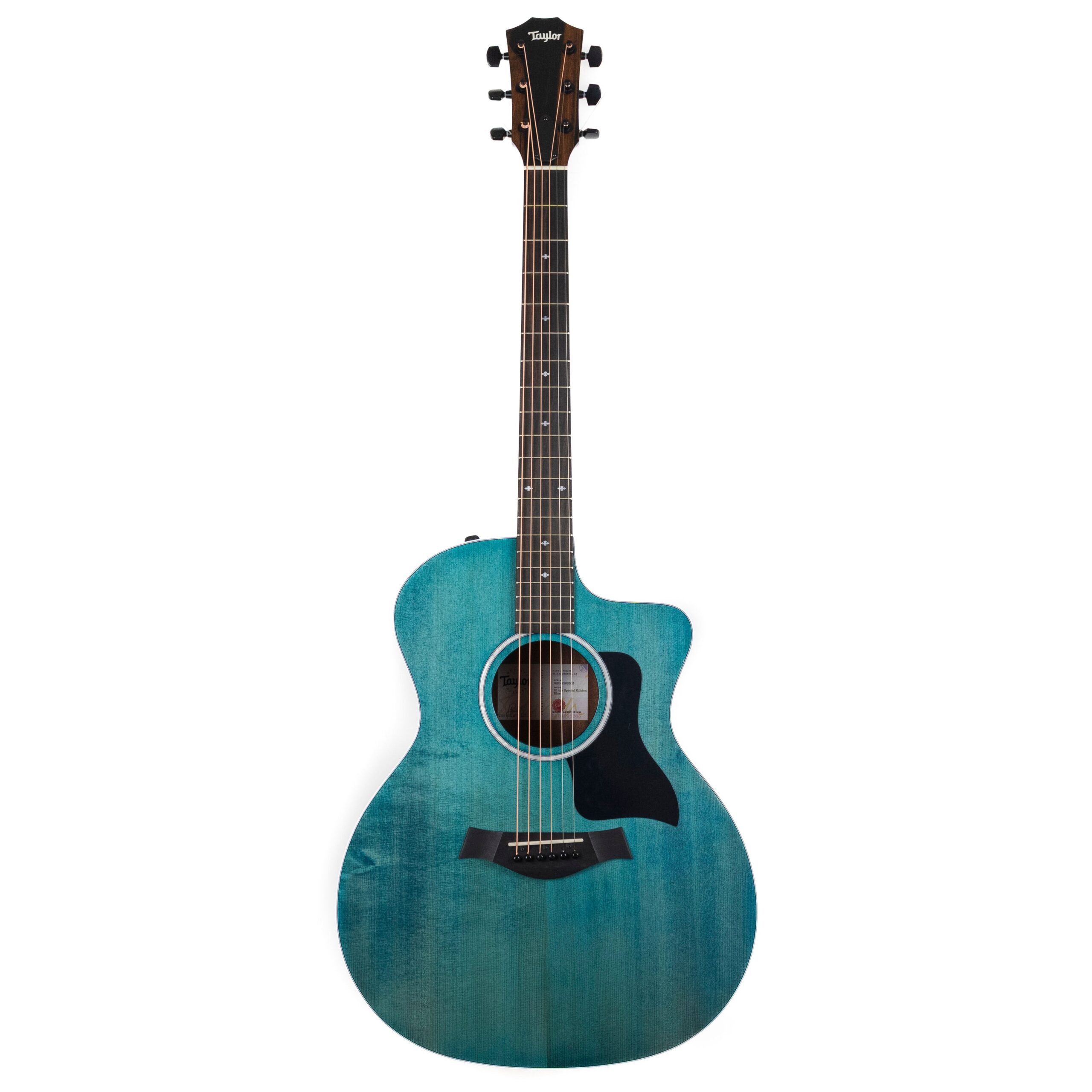A great limited edition color on the popular 214ce model, this new Taylor ‘Trans Blue’ looks great and comes with a solid Engelmann spruce top and laminated sapele back and sides.