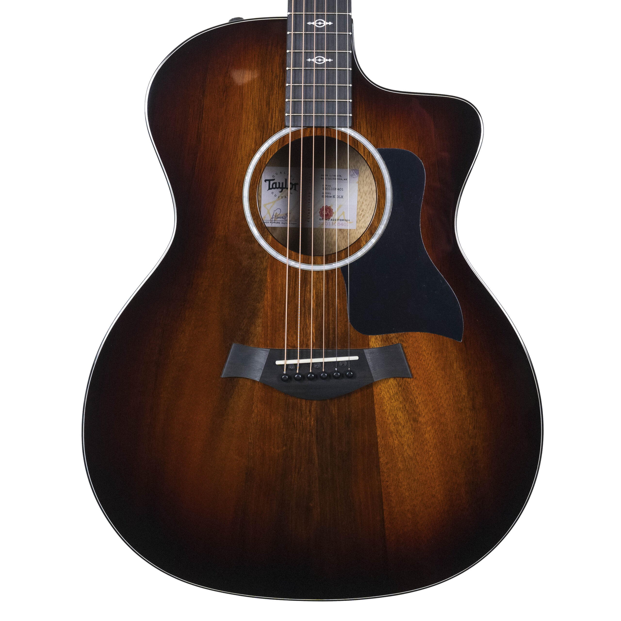 From Taylor Guitar’s Website: “Koa has long been a desirable wood for guitar players, and the 224ce-K DLX allows guitarists to capture more of Koa’s incredible tone in a high-quality, more budget friendly model. Capped with a solid Koa tip, the 224ce-K DLX also features layered Koa sides and back, and is finished in a Shaded Edgeburst. With the inclusion of ebony fingerboard and bridge as well as ES2 electronics, our slick Taylor Neck, and a deluxe hardshell case, the 224-K DLX should be in the mix for anyone looking for their first – or next – guitar.”