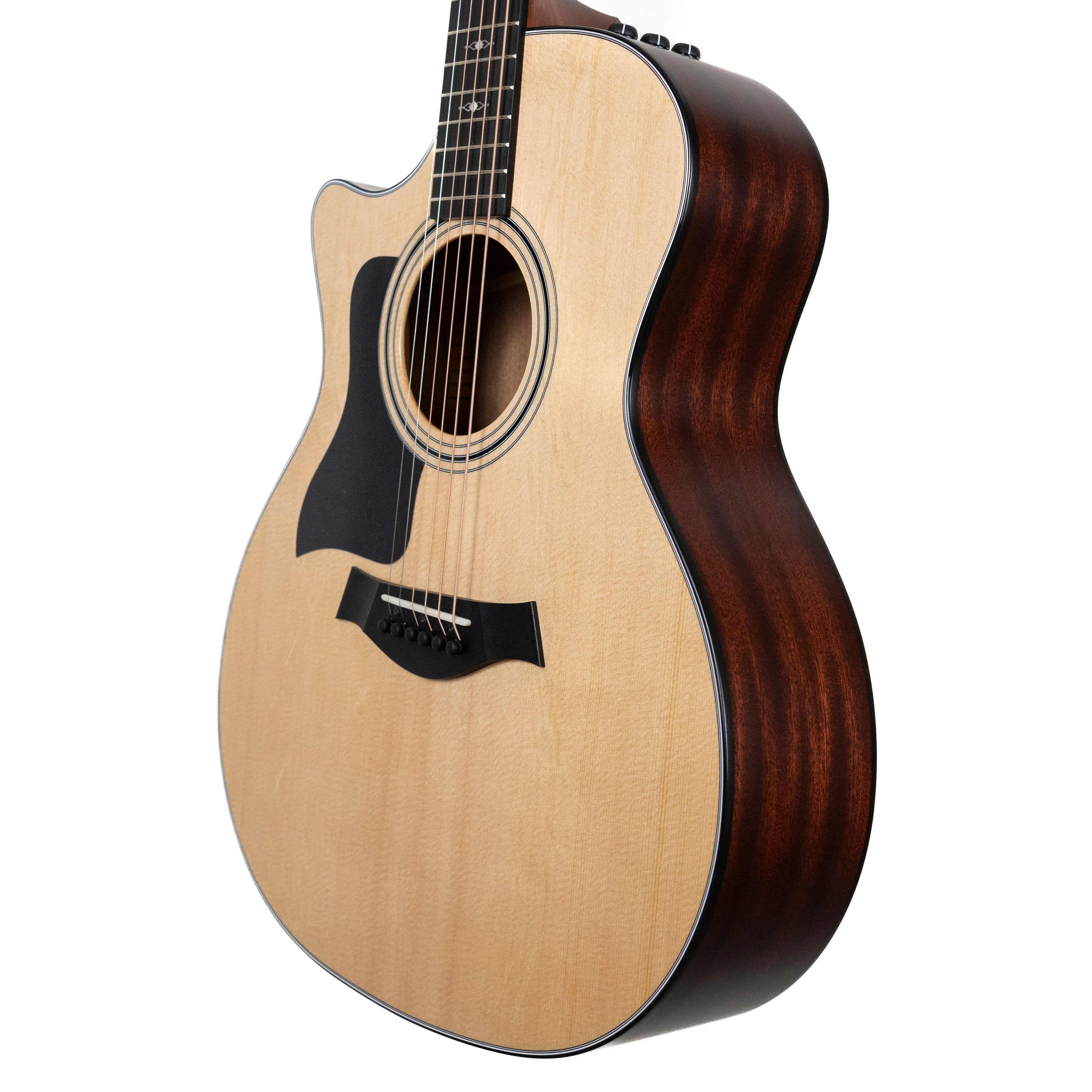 “A great mid sized guitar for pickers and strummers, the 314ce is a well rounded instrument on all fronts. Depending on your right hand, solid sapele back and sides can sound percussive or sweet”– Ian, Taylor Guitars Expert at Rudy’s Music
