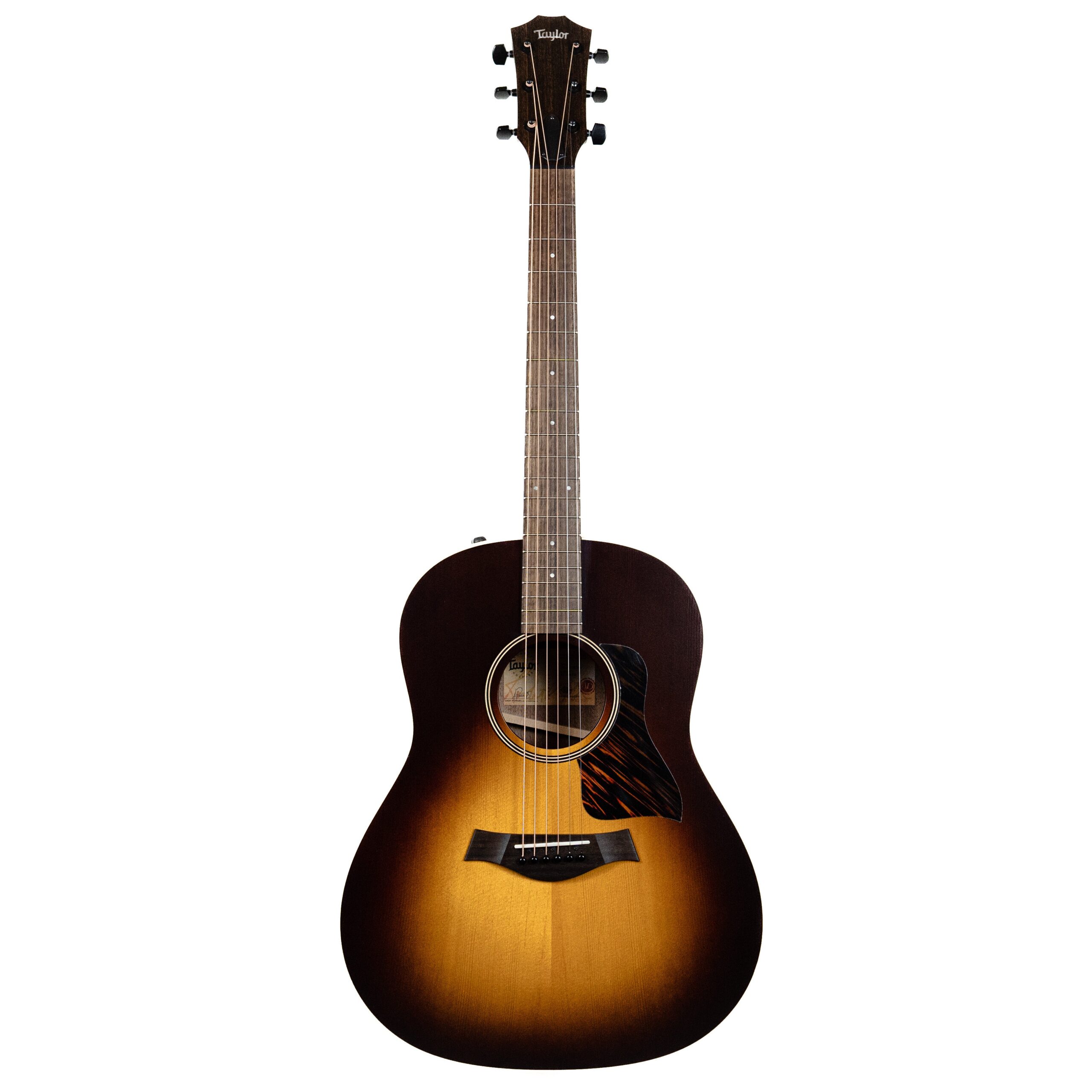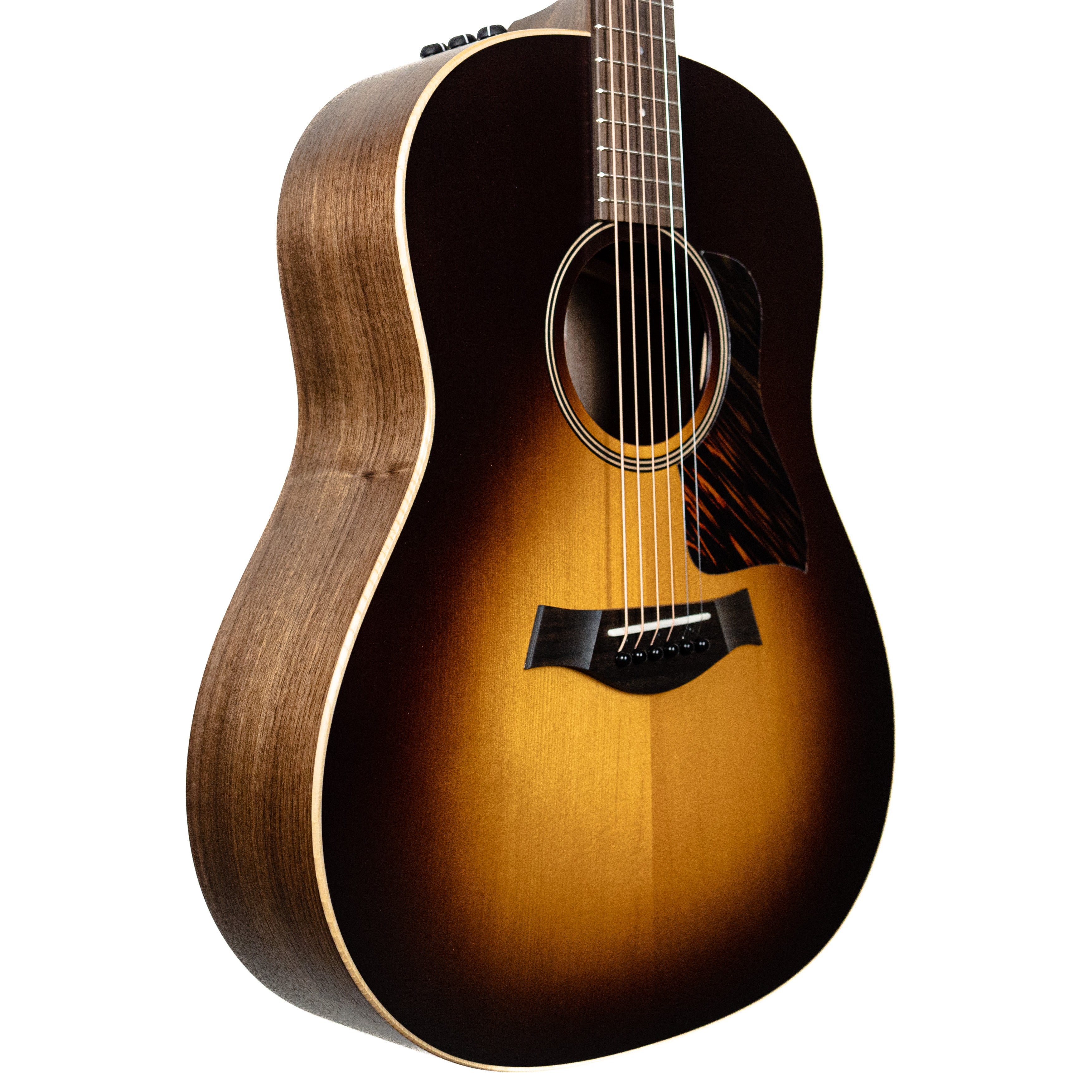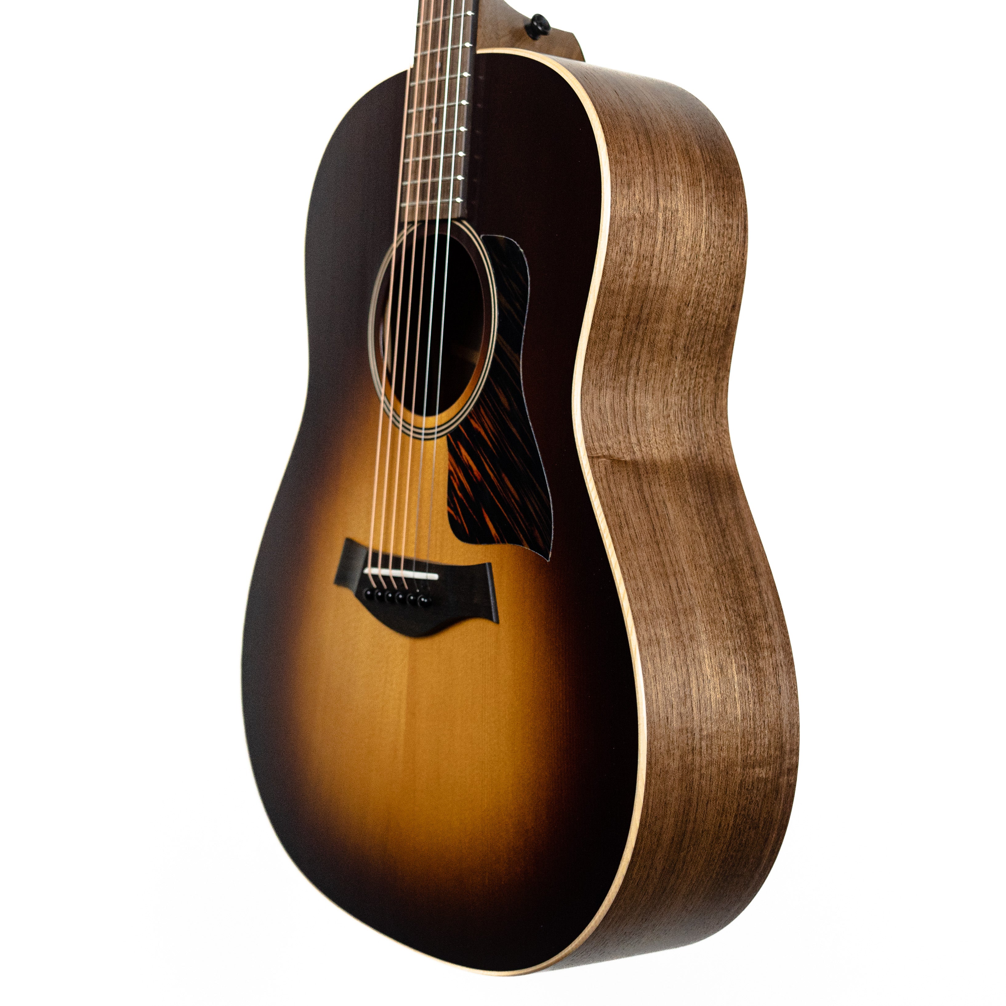 Serving up warm, seasoned tone in a package that’s not too precious for everything from on-stage performance to jam sessions with friends, the AD17e-SB is a Grand Pacific dreadnought crafted with back and sides of solid walnut and a solid spruce top. This acoustic-electric model is designed at the intersection of playability, performance and affordability, blending a woody, punchy midrange character with a low-end response that will grow more pronounced as the wood ages. Our innovative V-Class bracing dials up remarkable volume and sustain, while chamfered body edges and the Taylor Neck make for a relaxed, accommodating feel for all types of players. Aesthetic details include a firestripe faux tortoiseshell pickguard, black top purfling, satin black tuners and a thin matte finish, along with an eye-catching Tobacco Sunburst top. The AD17e-SB ships with ES2 electronics and a lightweight, sturdy AeroCase for storage and transportation.