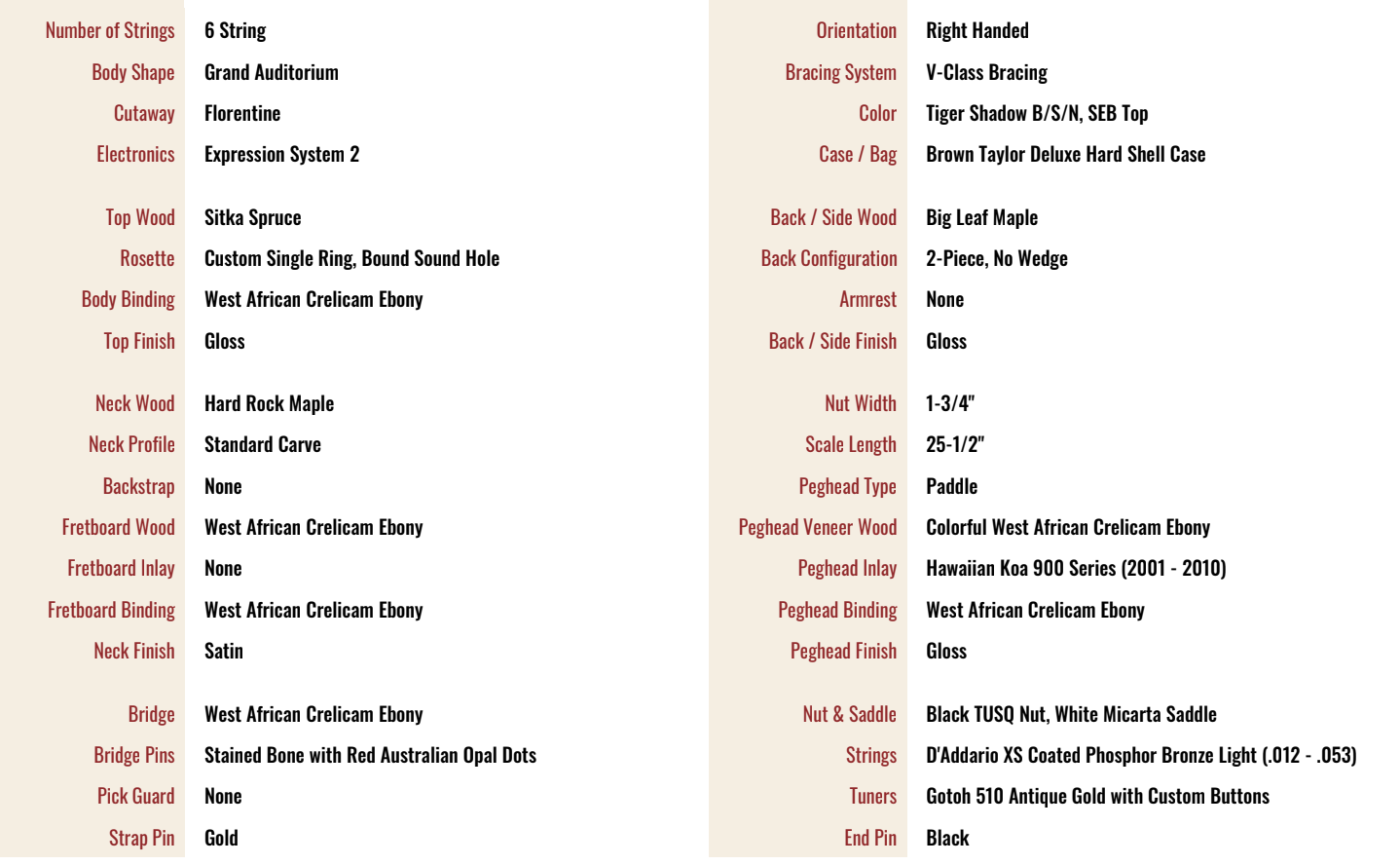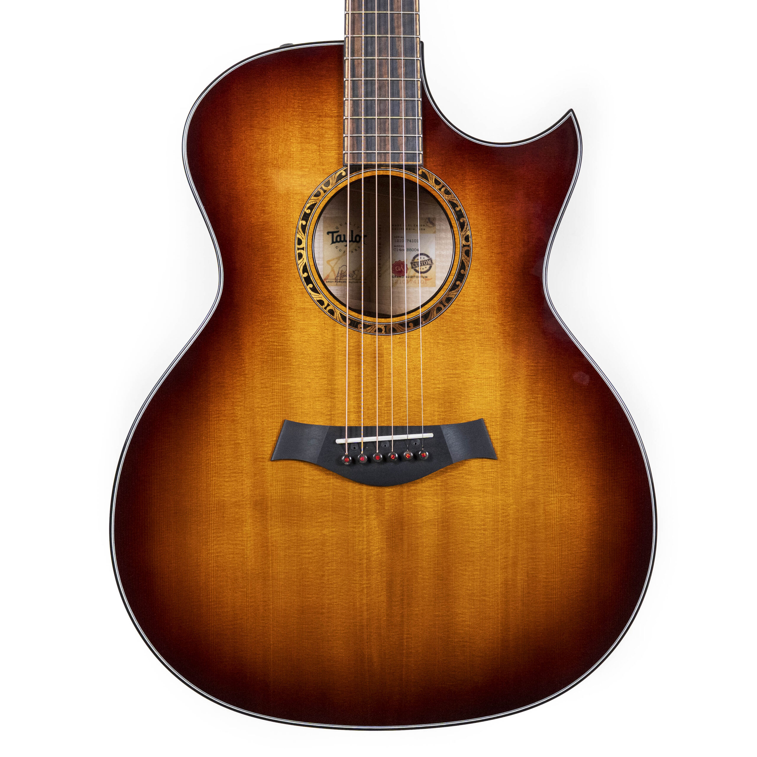 Here we have a fine specimen from the Catch series of the Taylor Custom Shop. Available in limited runs per model these one off designs feature premium tonewood and specs not seen on standard run Taylor guitars.