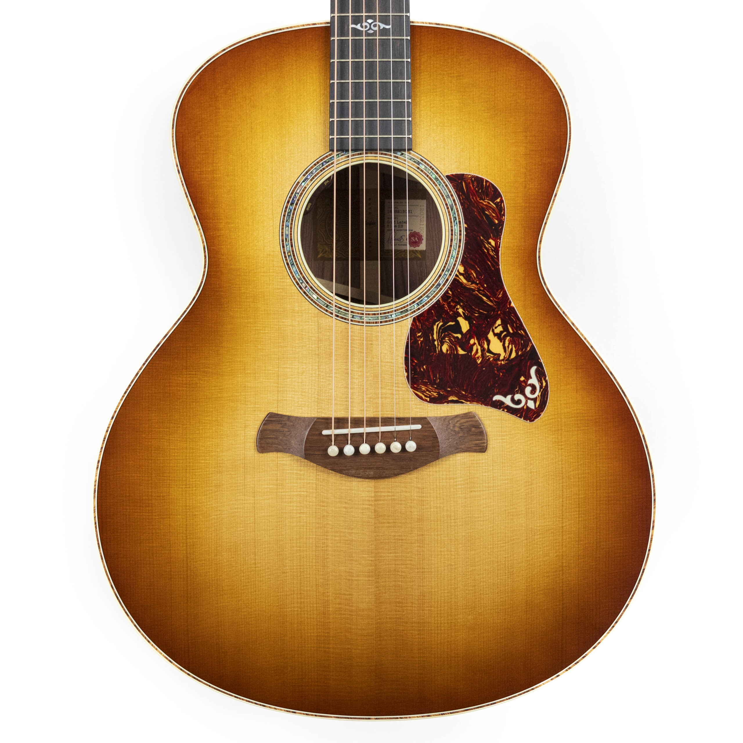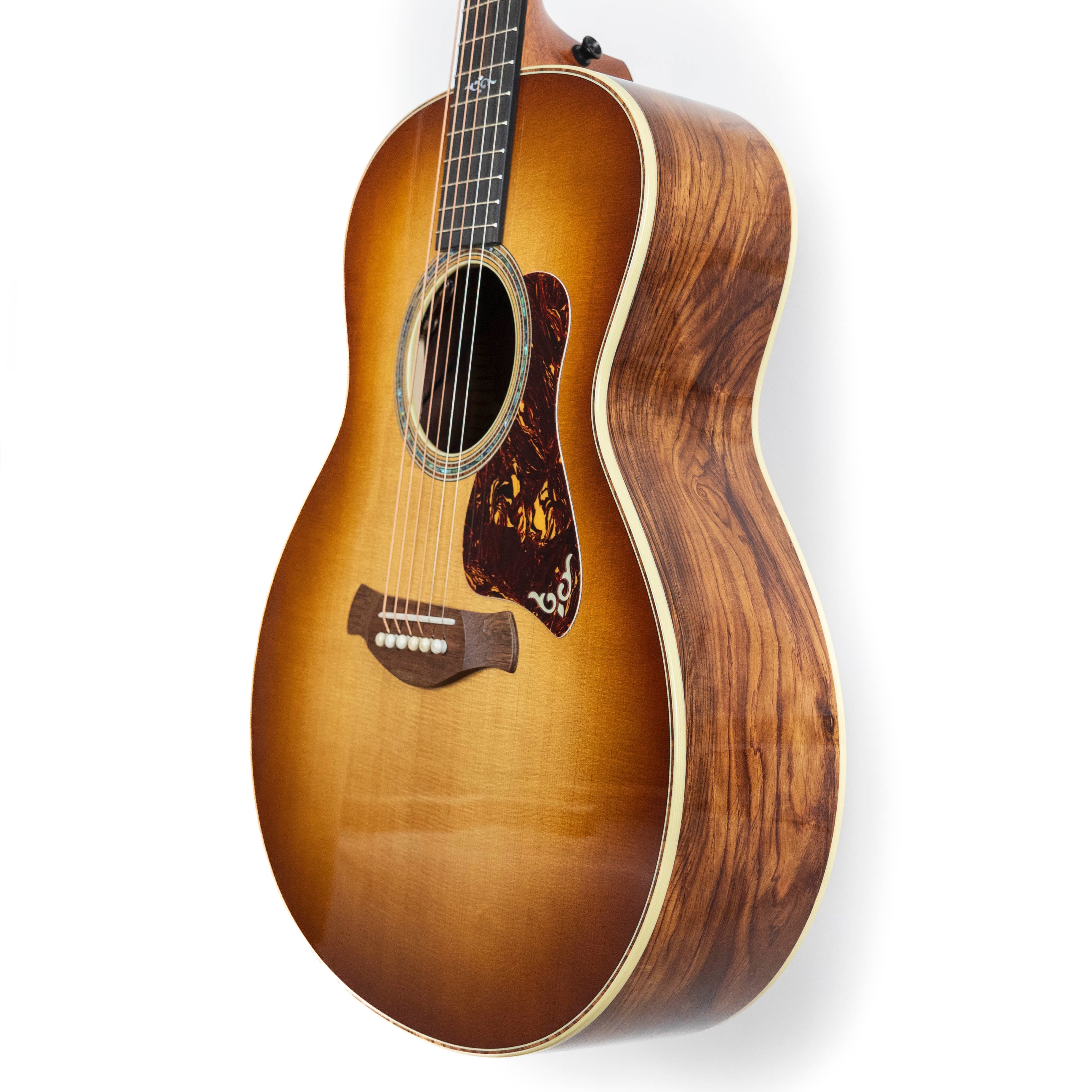 From Taylor Guitar’s Website: “This edition of our all-new Gold Label 814e adds a lustrous sunburst finish to match its seasoned, heritage-style sound and lush overtones. Featuring the new Super Auditorium body shape, this model boasts back and sides of Honduran rosewood, a torrefied Sitka spruce top and a fanned variant of our tone-boosting V-Class bracing architecture. The result is a sound with stunning warmth and richness, complemented with remarkable power and clarity even with the most aggressive attack. A new long-tenon neck joint improves sonic transfer for greater resonance while also offering even easier and more precise adjustability, letting you dial in the feel you need to sound your best. A suite of Continental inlays, grained ivoroid trim, a new pickguard, antique chrome Gotoh 510 tuners with ebony buttons, and a full-body gloss round out the package. This model includes LR Baggs Element VTC electronics with discrete soundhole-mounted controls, ensuring warm, rich sound when you need to plug in. The Gold Label 814e SB ships with a deluxe hardshell case featuring a stylish British Cocoa exterior.”