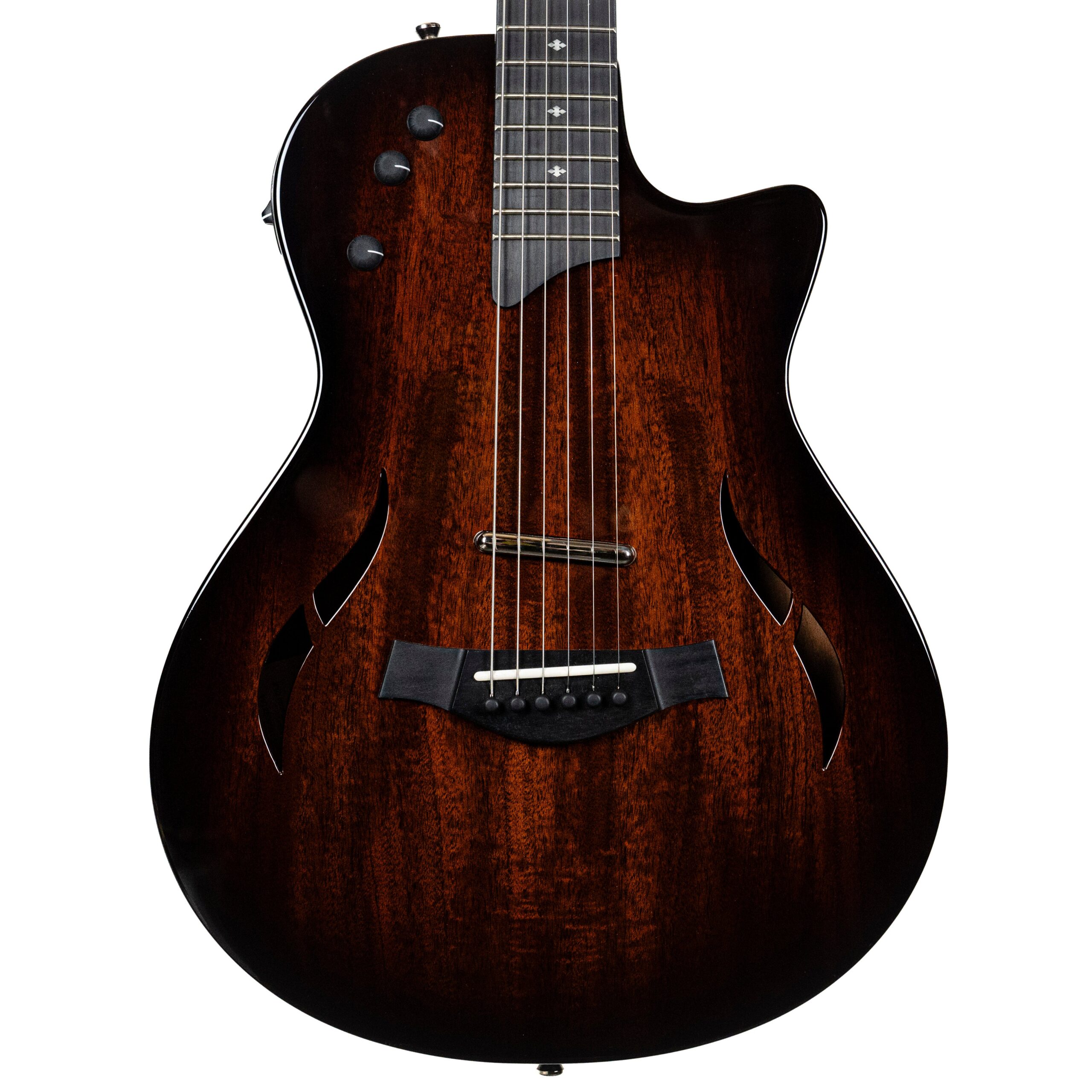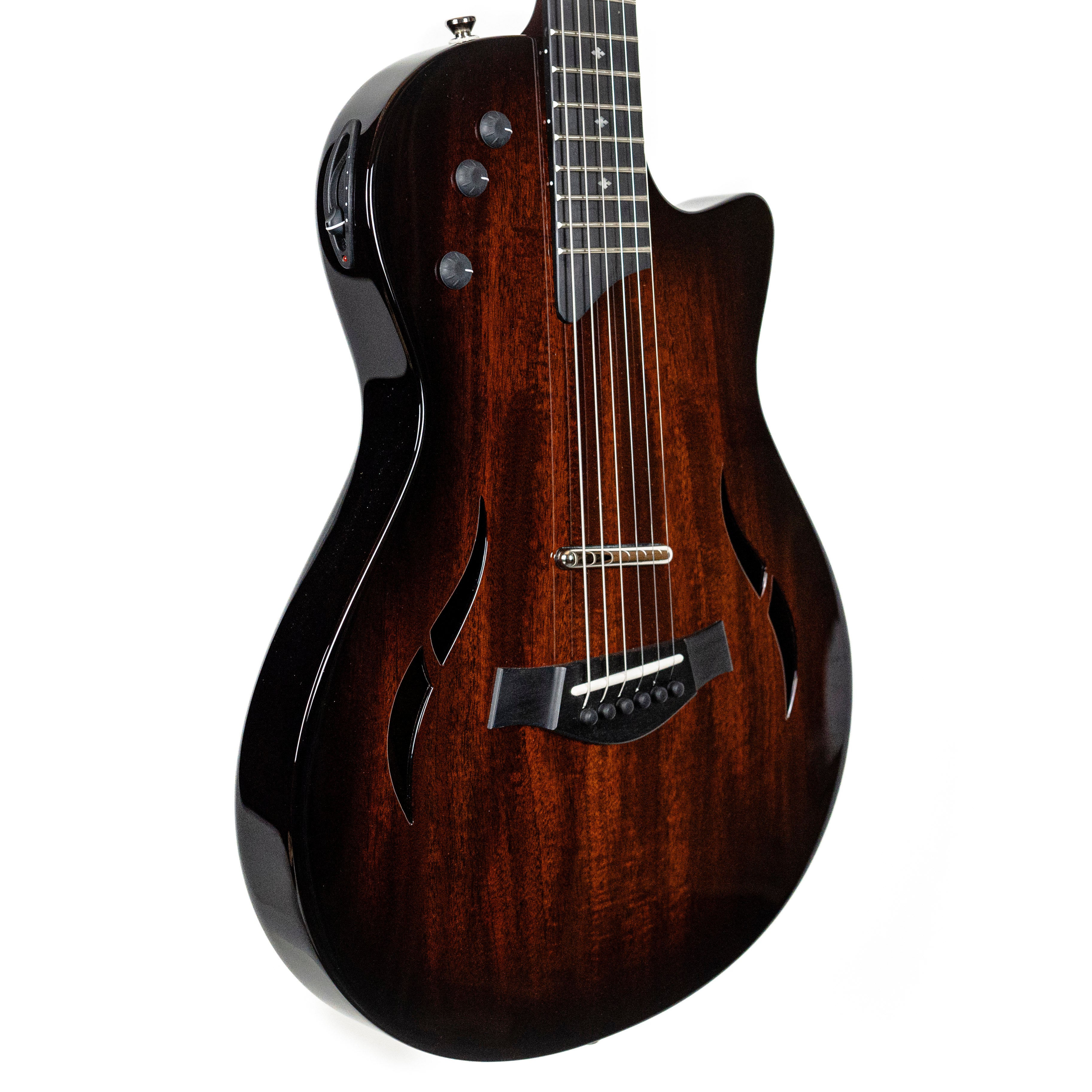 From Taylor Guitar’s Website: “This deluxe edition of our hybrid hollowbody electric T5z Classic features aesthetic upgrades that elevate its visual profile, such as a full-body gloss finish and a subtle edgeburst color treatment. Sonically, the T5z Classic packs a full tonal range into a compact body, making use of two humbuckers, an acoustic body sensor and a five-way switch to produce richly textured sounds that span the spectrum from electric to acoustic. The fast-playing neck features jumbo frets and a smooth 12″ radius that will feel especially welcoming to players accustomed to an acoustic fretboard. This model ships with a lightweight, sturdy AeroCase.”
